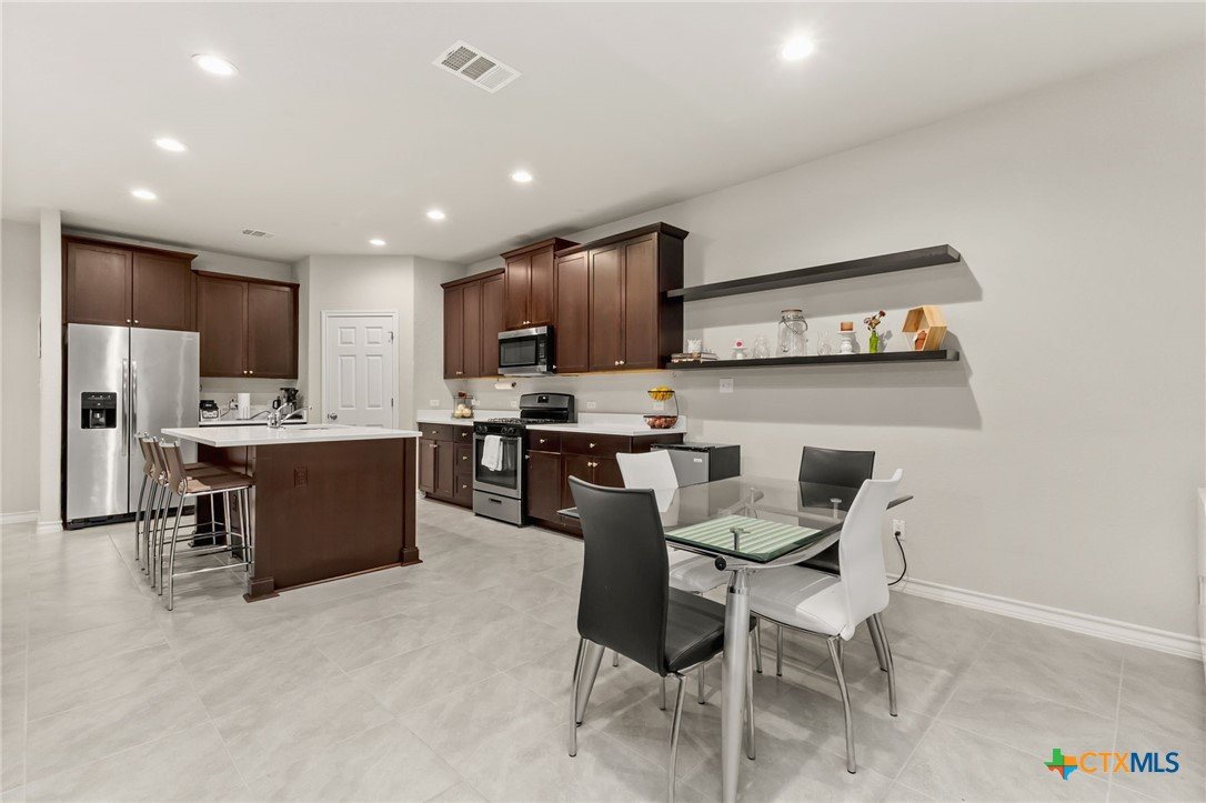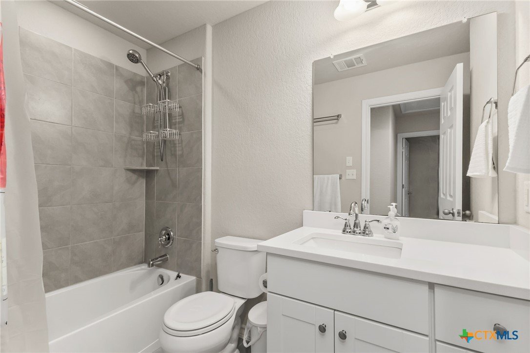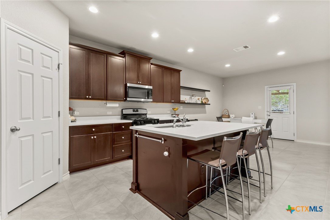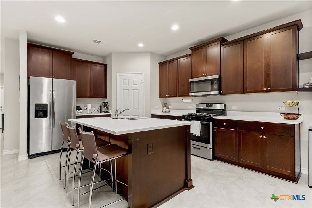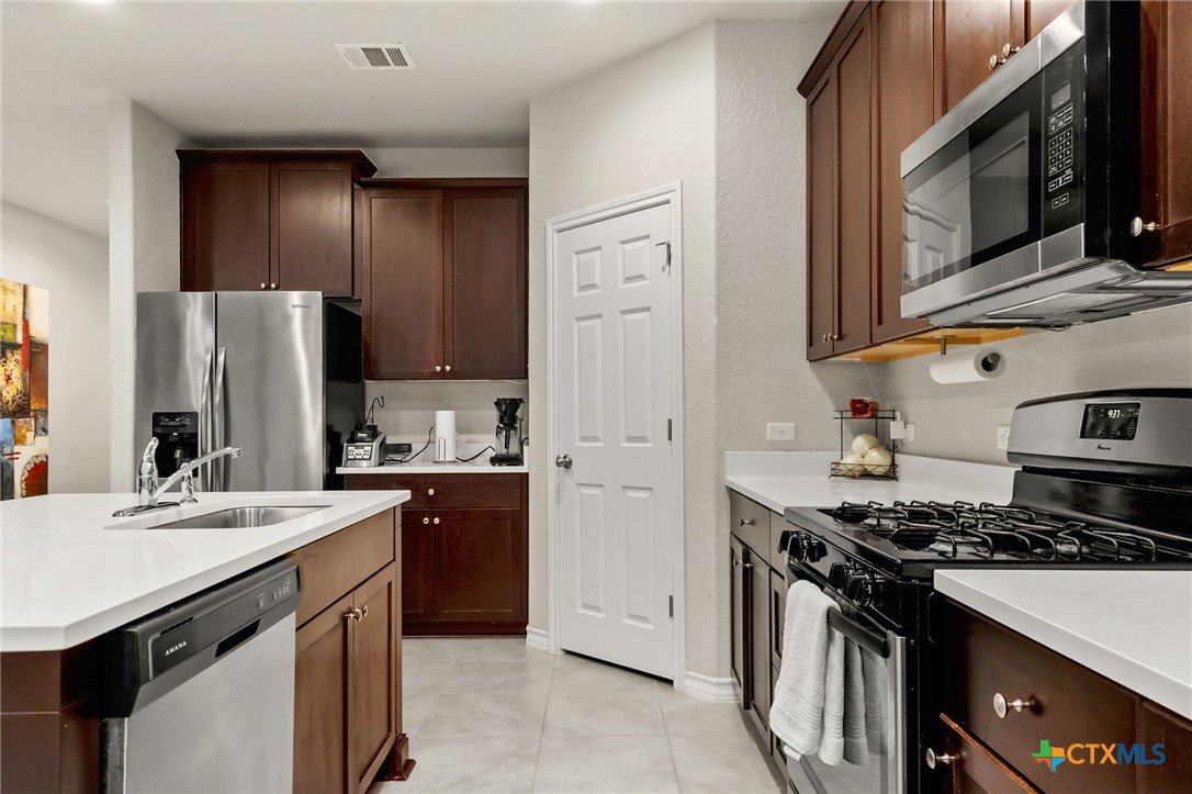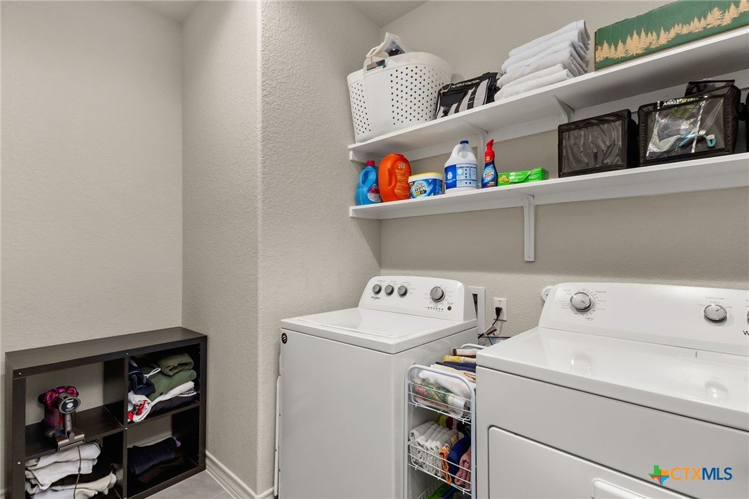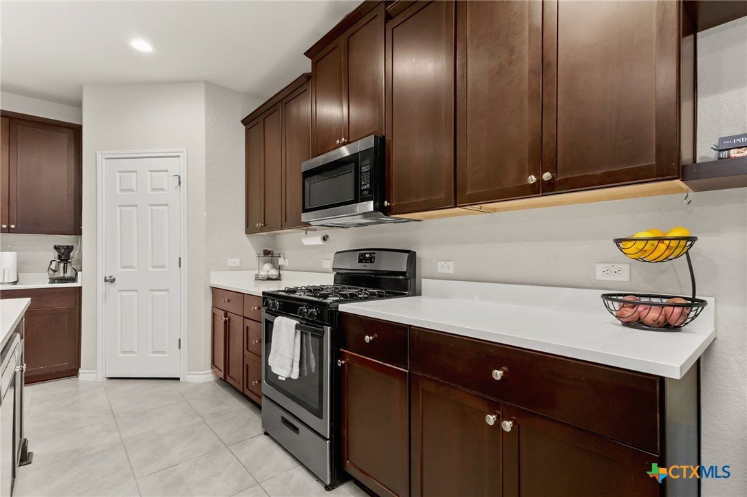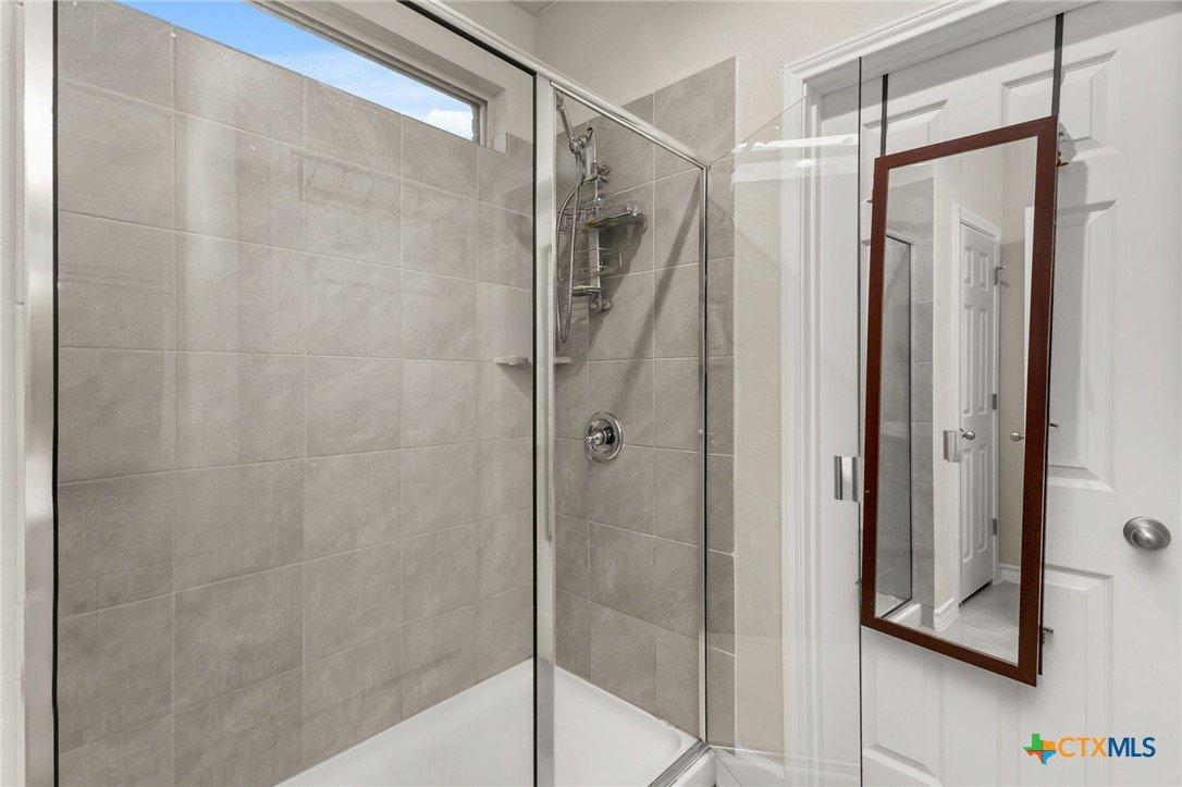 $5,000 offered for Buyer Closing Costs! Beautiful and well-maintained 3 bedroom, 2.5 bathroom home built in 2017, featuring a spacious 2,286 sq ft layout with the primary suite and a dedicated office on the main floor. The open-concept kitchen and living area includes rich brown cabinetry, white quartz countertops, and white cabinetry in the bathrooms for a clean, modern aesthetic. Light gray tile and carpet throughout provide a serene, neutral palette. Constructed with all masonry—brick on three sides and stucco on the front—this home offers curb appeal and durability. The private backyard is fully fenced and includes a covered back deck and mature live oak trees in the front yard. The property backs up to wooded San Marcos ISD land and is adjacent to the Doris Miller Middle School greenspace for added privacy and natural beauty. Enjoy two living areas—one upstairs and one down—offering flexible space for entertaining or relaxing. Conveniently located with quick access to Hunter Road which connects New Braunfels, Gruene, and San Marcos, TX and just 5 minutes from I-35. Location is just minutes from Texas State University, the San Marcos River, San Marcos Outlet Malls, and many outdoor adventures and attractions.