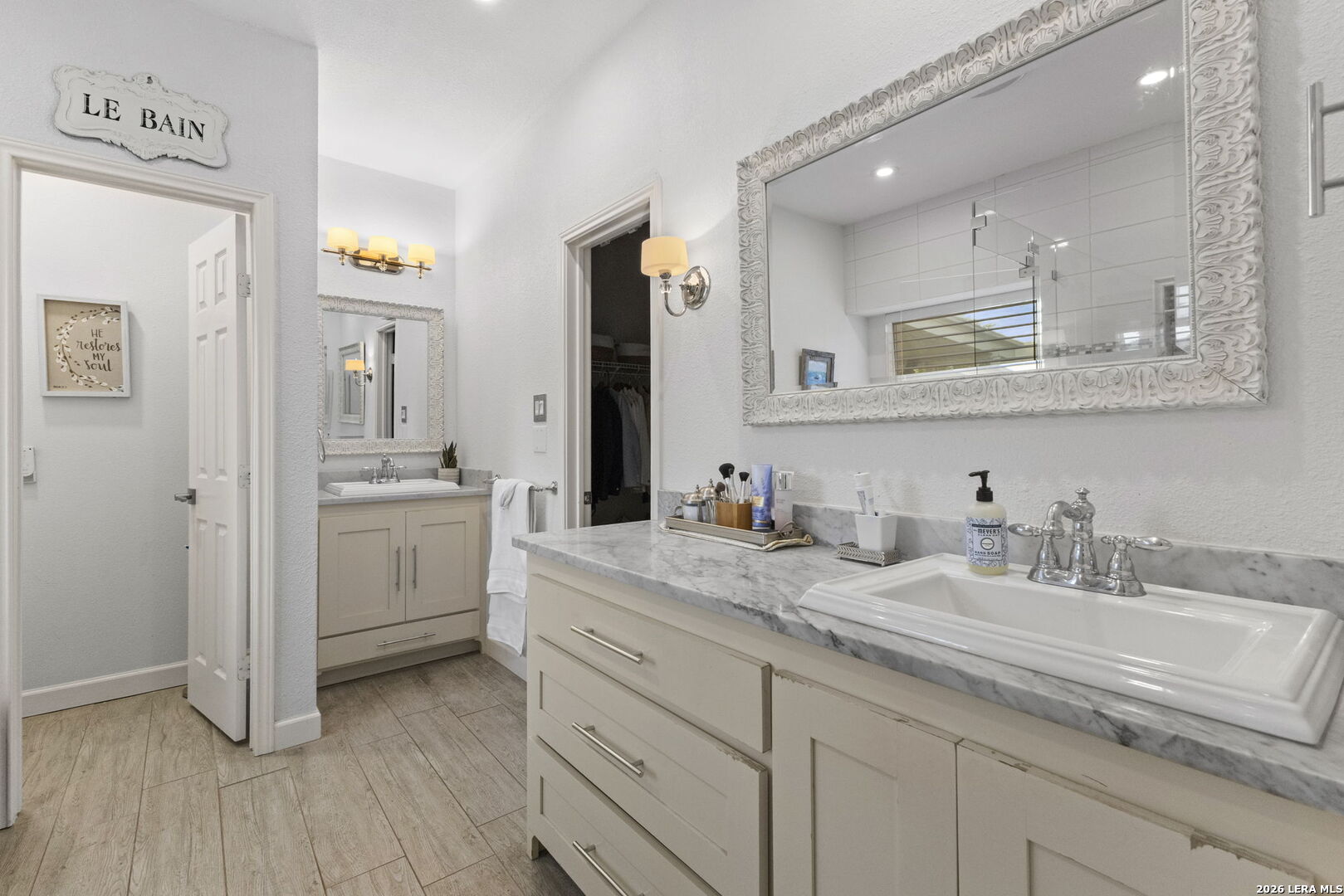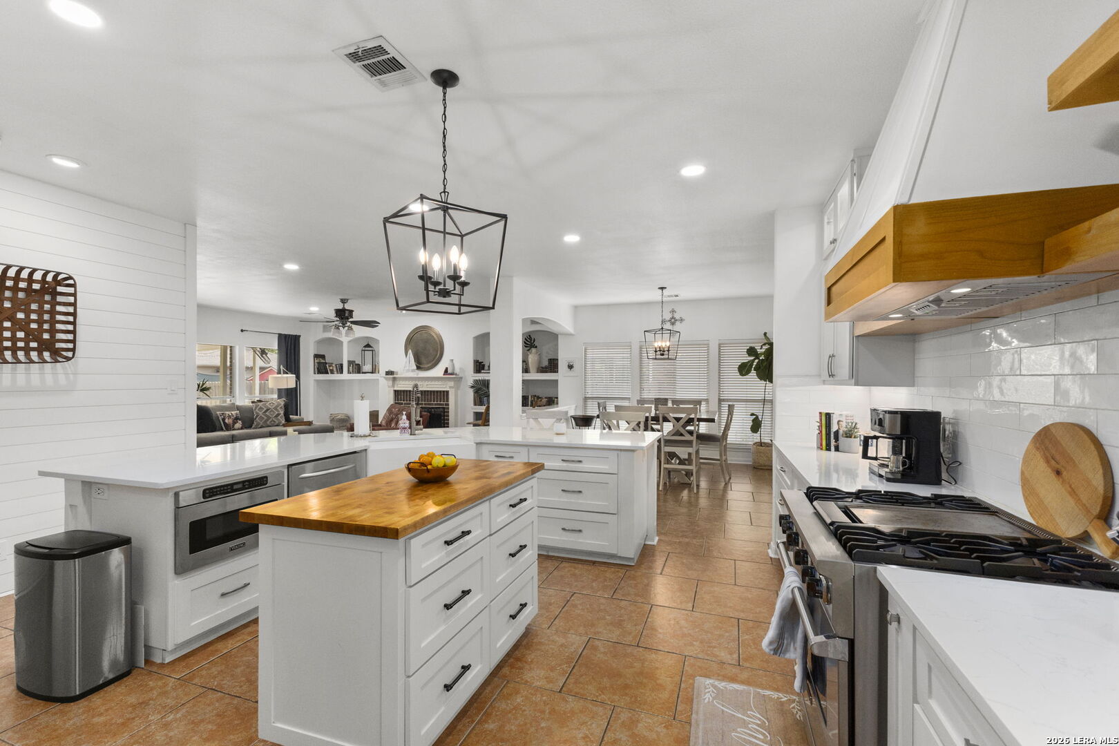 Nestled inside the gated and guarded community of Summerfield, this beautifully maintained one-story traditional home offers timeless appeal, thoughtful design, and exceptional comfort. Featuring 4 bedrooms, 2.5 bathrooms, and 2,723 square feet, this four-sides masonry residence offers a flexible layout with the fourth bedroom currently presenting beautifully as an office. The heart of the home is a stunning gourmet kitchen complete with stainless steel appliances, abundant workspace, and a layout designed for both everyday living and entertaining. The primary suite offers a true retreat, highlighted by a beautifully appointed French provincial-inspired bathroom that adds warmth, charm, and elegance. Generous living spaces, classic traditional architecture, and meticulous upkeep make this home especially inviting. Located within the sought-after NEISD, this property combines security, location, and enduring quality in one of north central San Antonio's most established guarded communities.