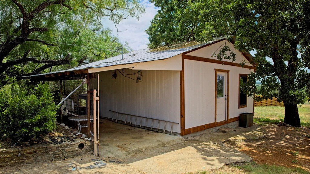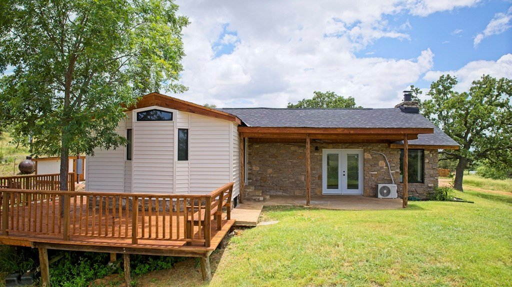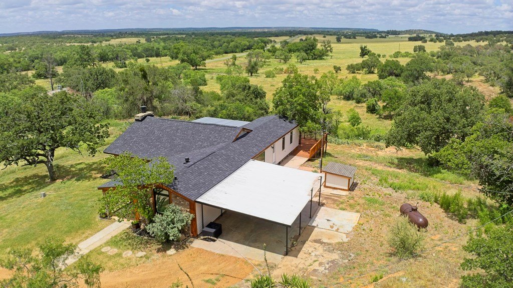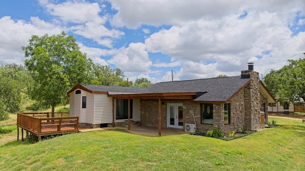 Just outside the Mason city limits, this updated 3-bedroom, 2-bath home offers the space and privacy of acreage living with the convenience of city services, including trash pickup. Situated on 1.75 acres and bordered by open land, the property provides a peaceful setting only minutes from downtown. The remodeled interior features a rock wood-burning fireplace, custom bar, and abundant natural light from large windows that showcase Hill Country views. An expansive deck with built-in seating extends the living space outdoors and is ideal for entertaining or quiet evenings under the stars. A separate bonus structure offers flexible use as guest quarters, a home office, or studio. Move-in ready with room for gardening, animals, recreation, or future improvements, this property presents a rare opportunity to enjoy country living with close proximity to town.