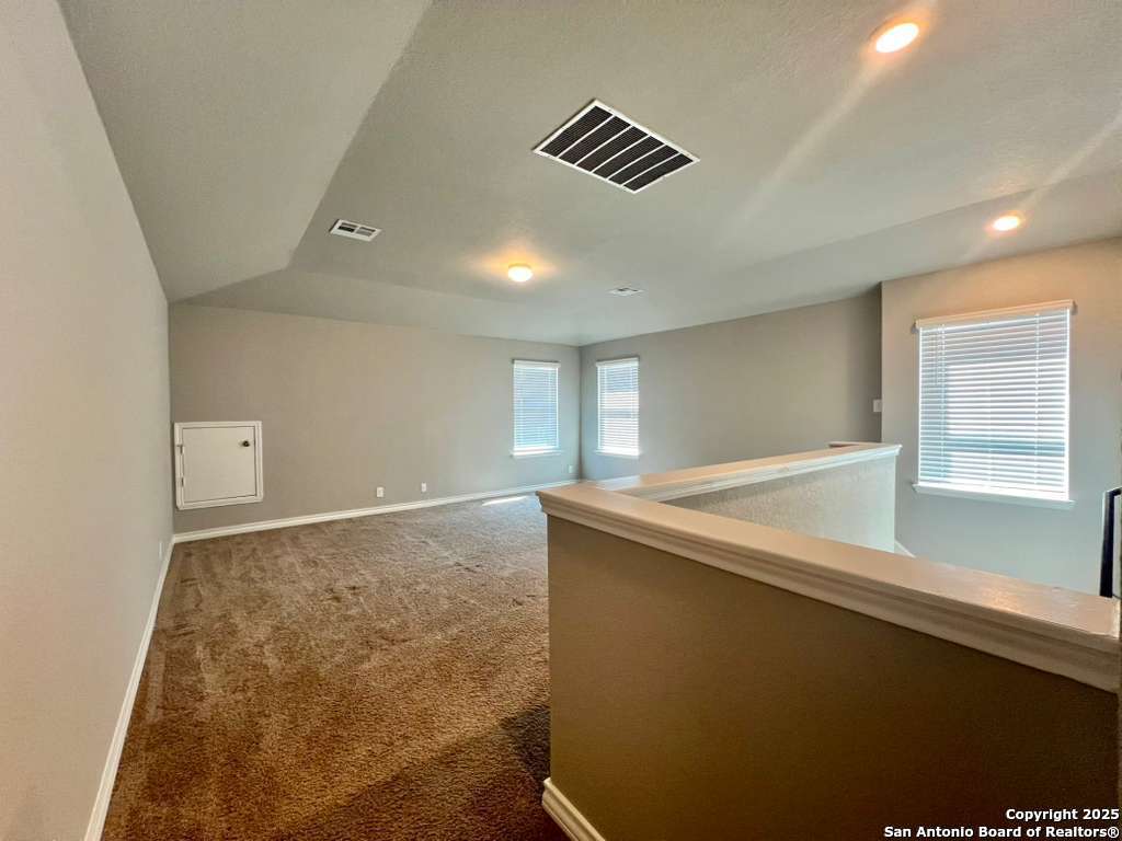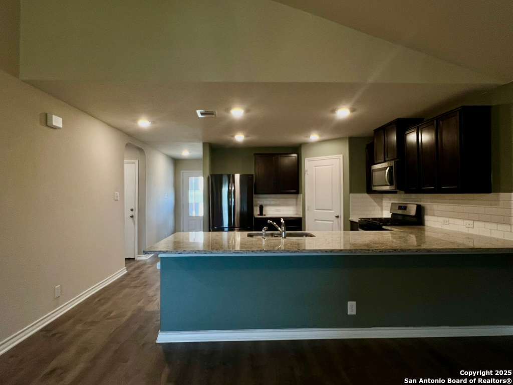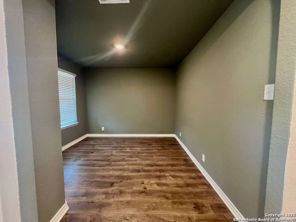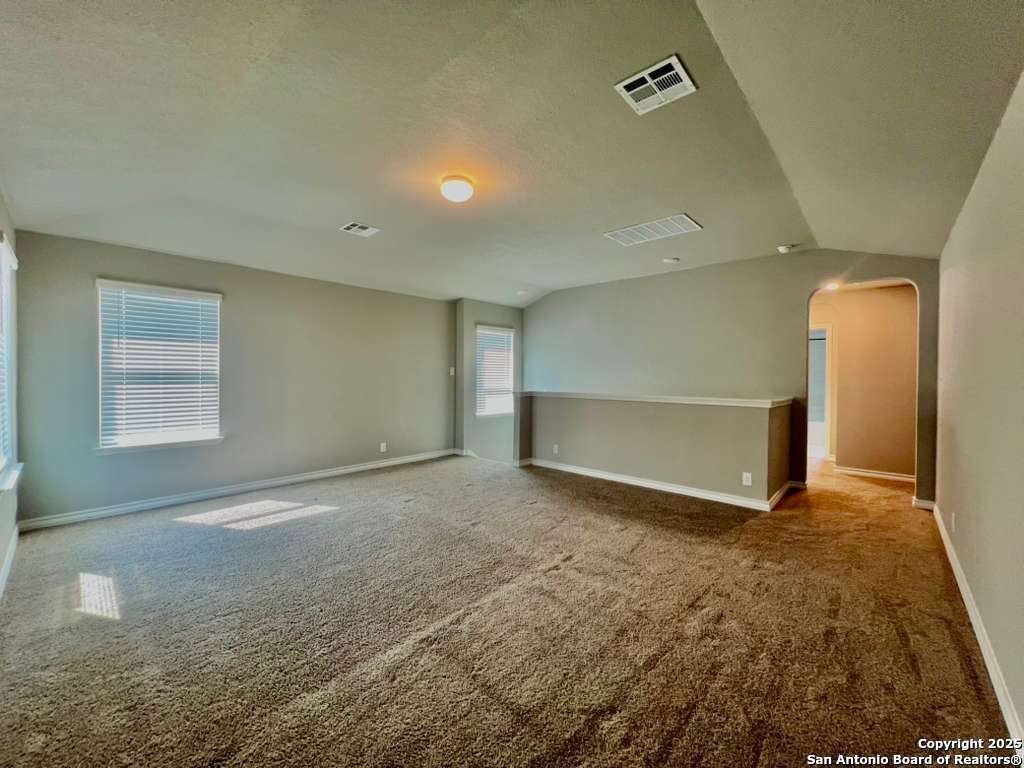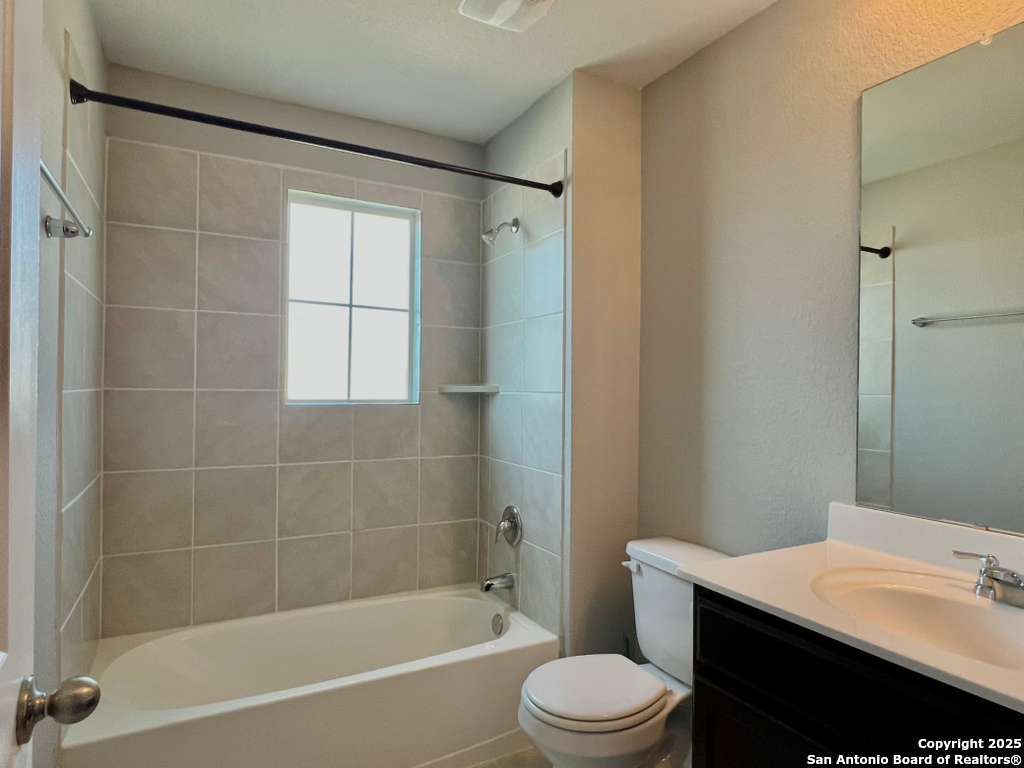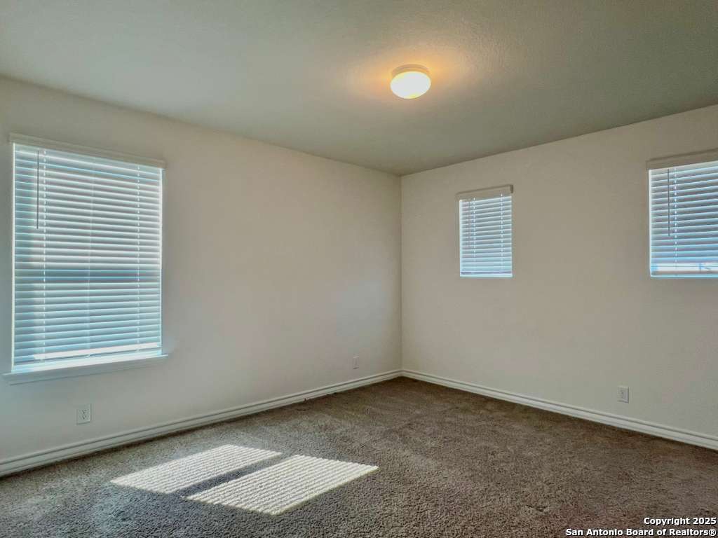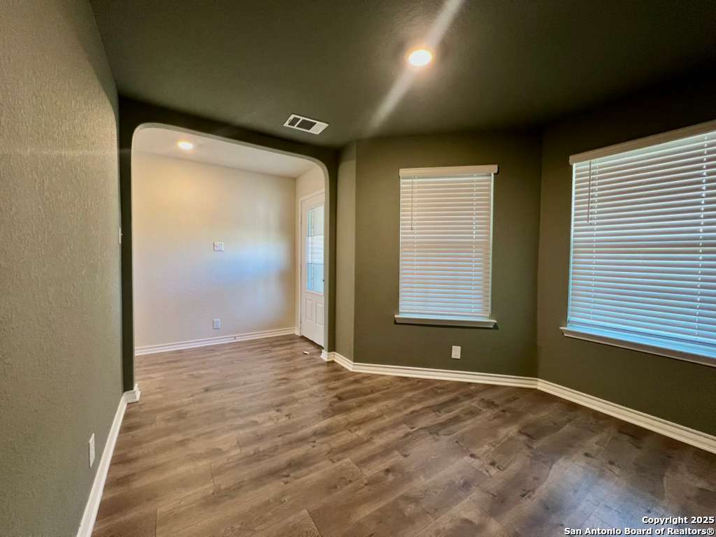 Welcome to Whisper Falls! This warm and inviting 4-bedroom, 2.5-bathroom two-story home could be your next rental! This home is move-in ready, featuring a formal dining room upon entry for coffee breaks, entertaining or the perfect study/office space. The kitchen is the heart of the home, with granite countertops, rich dark wood cabinetry, stainless steel appliances, gas cooking, and an over-sized breakfast bar perfect for casual meals or extra prep space. The kitchen flows seamlessly into the living space, making it feel extra grand with super high ceilings and lots of natural light flowing in from the exterior windows. Vinyl wood-like plank flooring throughout the first-floor living and dining areas ensures low-maintenance living. The primary bedroom, located on the main floor, features a large vanity, separate garden tub, tile shower, and an oversized walk-in closet, a true retreat. Upstairs, you'll find generously sized secondary bedrooms, plus a large loft/flex space for additional living and entertainment. The garage is equipped with hanging rack storage and epoxy floors for durability and organization. Step outside to enjoy summer nights under the covered patio, enjoy the peace and tranquility of having NO backyard neighbors! These Texas Sunsets and country views are calling your name! Neighborhood amenities include a splash pad, lap and recreational swimming, a park, a sport court, and a clubhouse. Conveniently located near Hwy 90, offering a quick commute into downtown San Antonio. What's not to love? Hurry, this one won't last long!