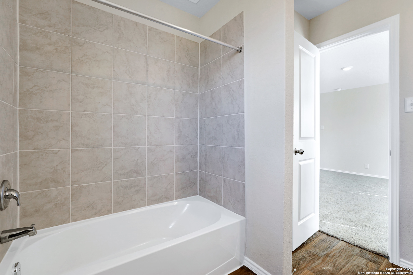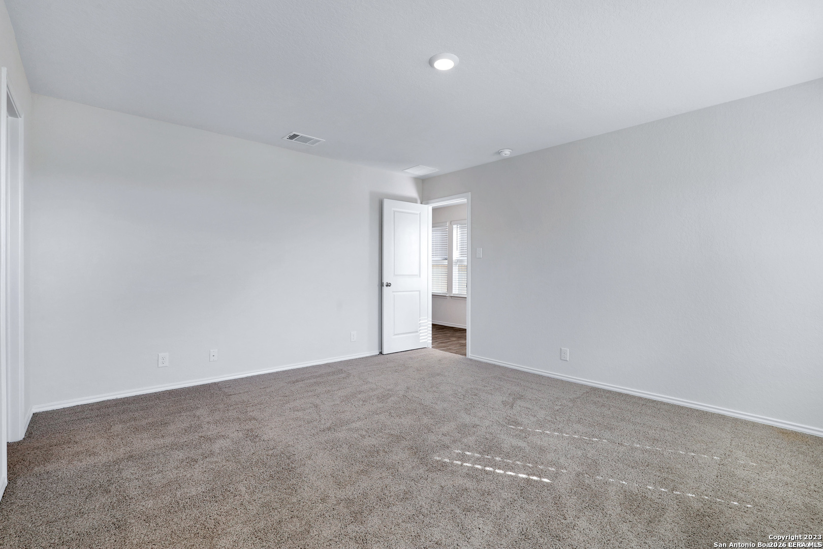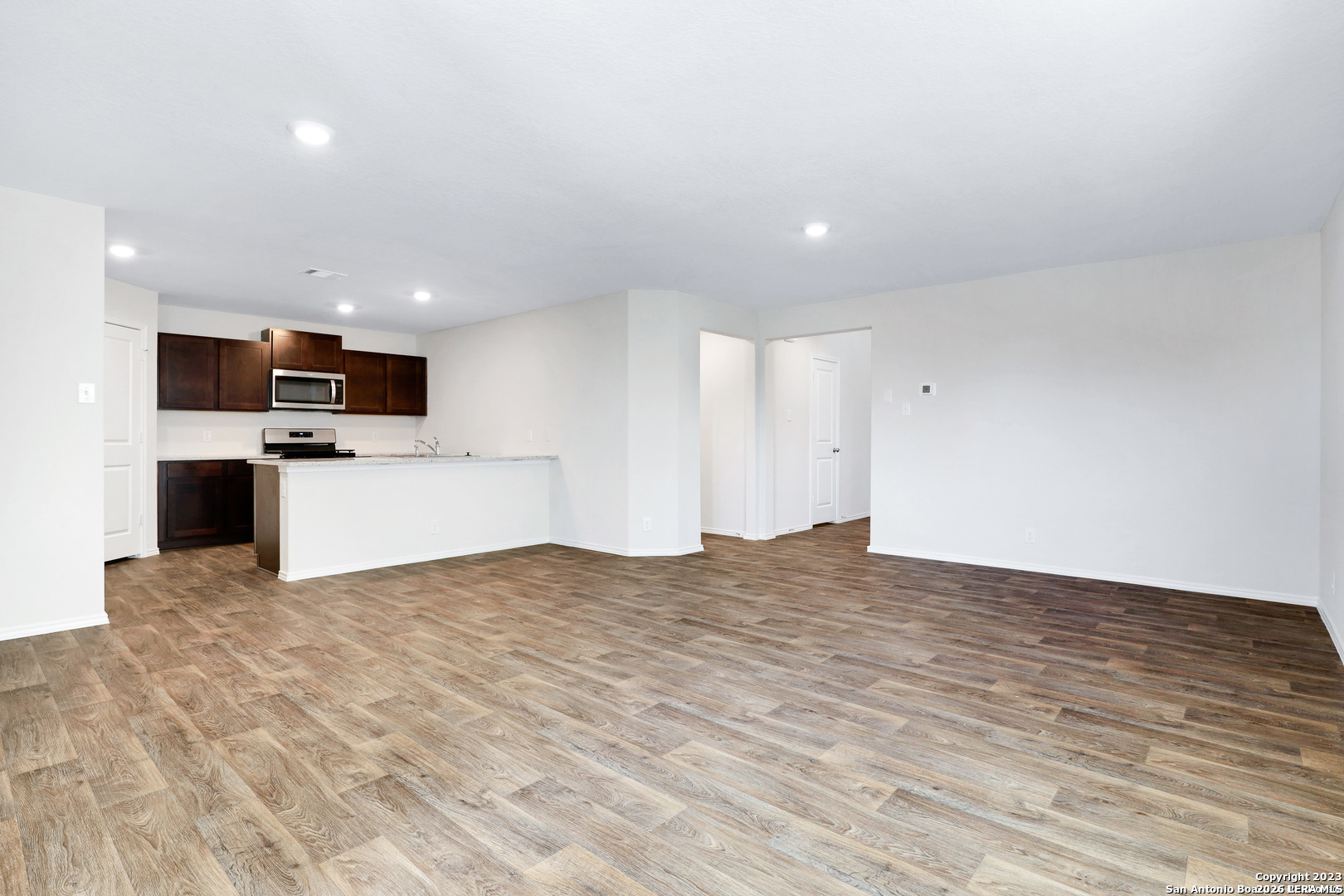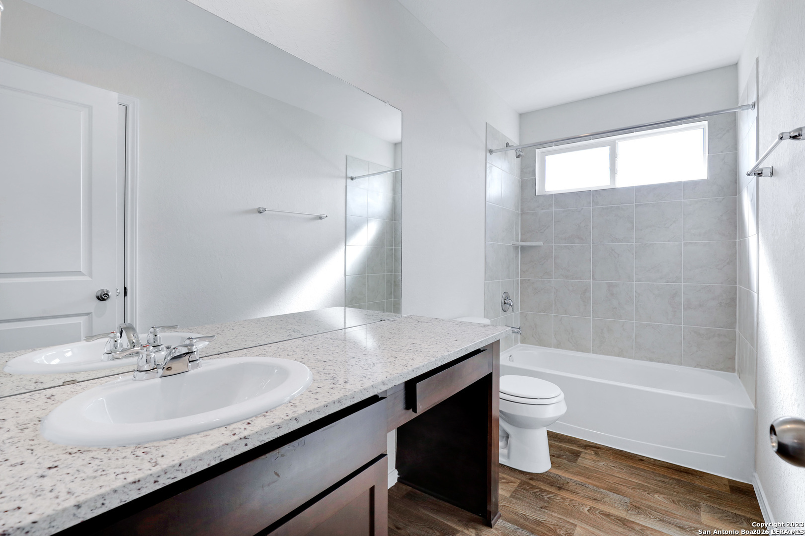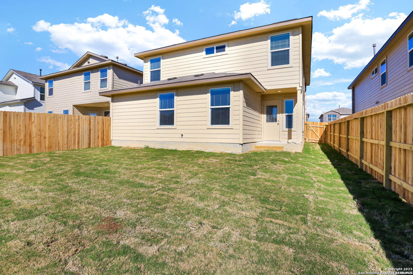 This inviting, move-in-ready home offers a functional open floor plan with a spacious living area downstairs and an additional large living space upstairs, providing flexibility for entertaining, relaxing, or working from home. The well-designed kitchen features granite countertops, stainless steel appliances, gas cooking, and ample storage. The private primary suite is conveniently located on the first floor, while three additional bedrooms and the laundry room are upstairs. The laundry room includes a generous bonus area that can serve as a quiet office or extra storage. Enjoy one of the largest backyards in the community, complete with a sprinkler system for low-maintenance outdoor living. Energy-efficient appliances and HVAC system enhance comfort and savings, while 2-inch faux wood blinds throughout add privacy and style. Conveniently located near JBSA Lackland AFB, major highways, shopping, dining, and community amenities. Listed below county assessed value-an excellent opportunity for homeowners and investors alike.