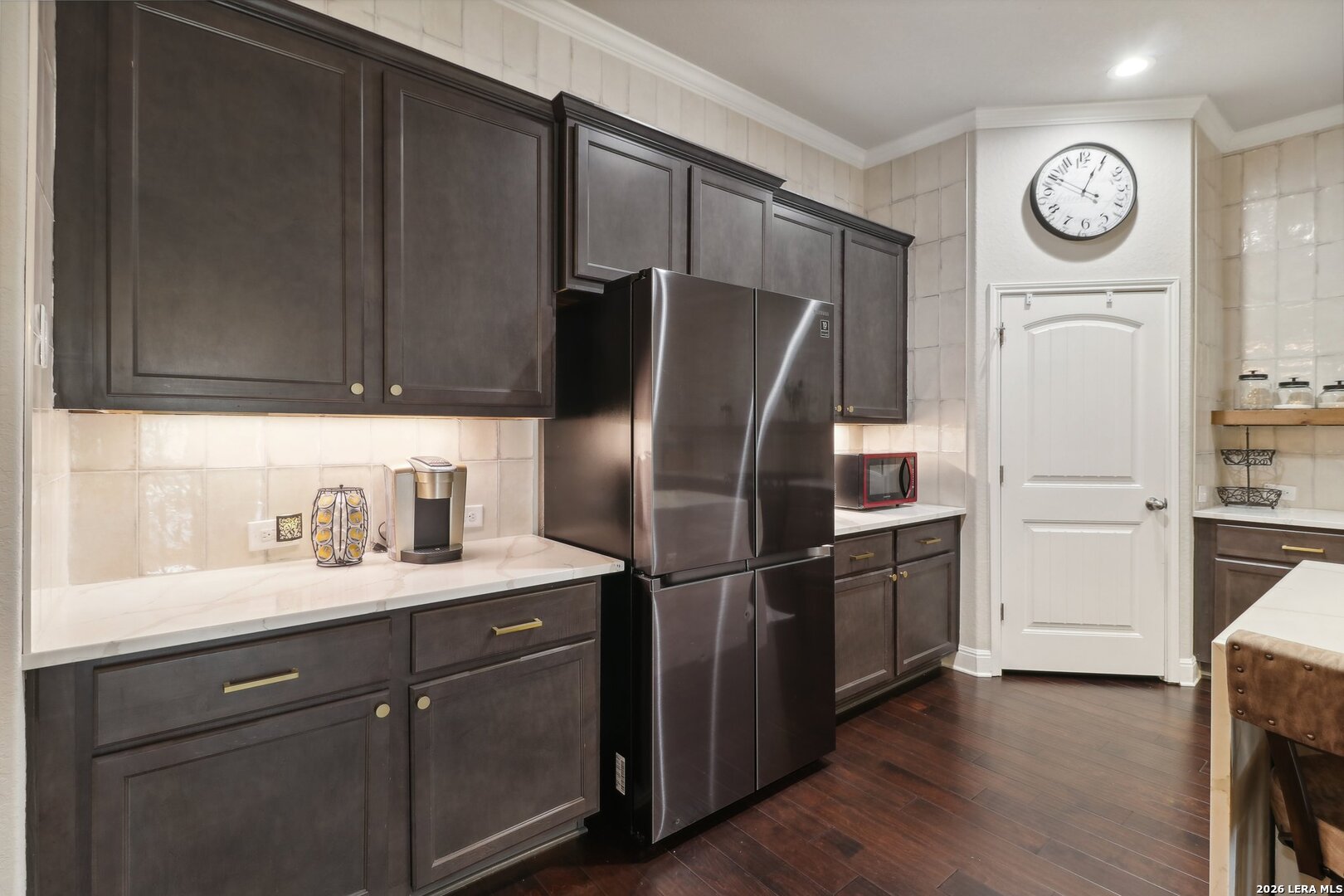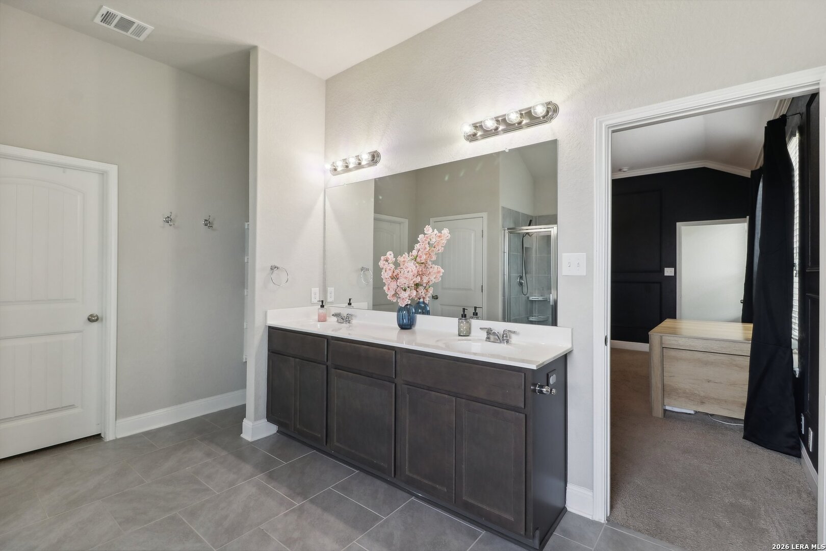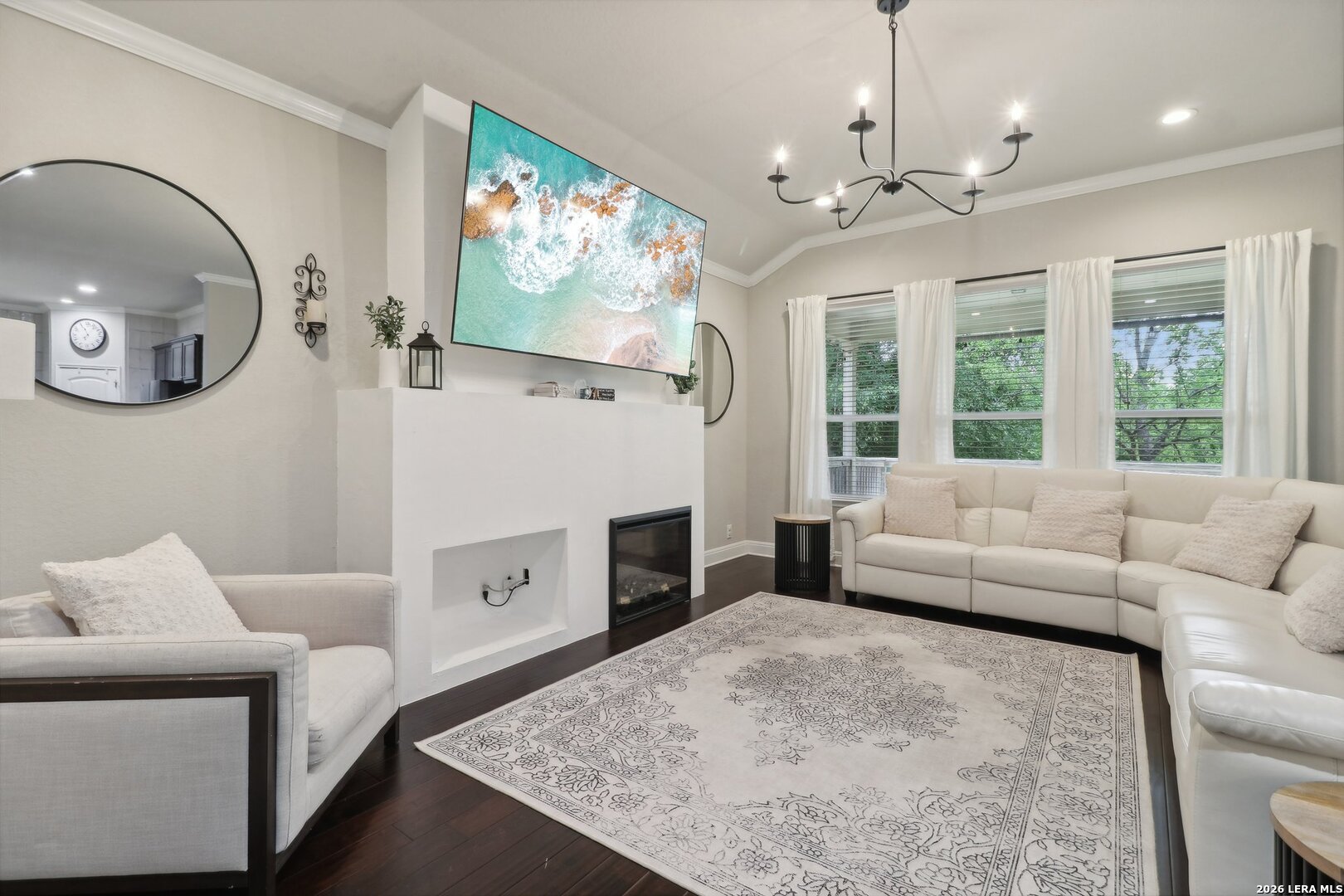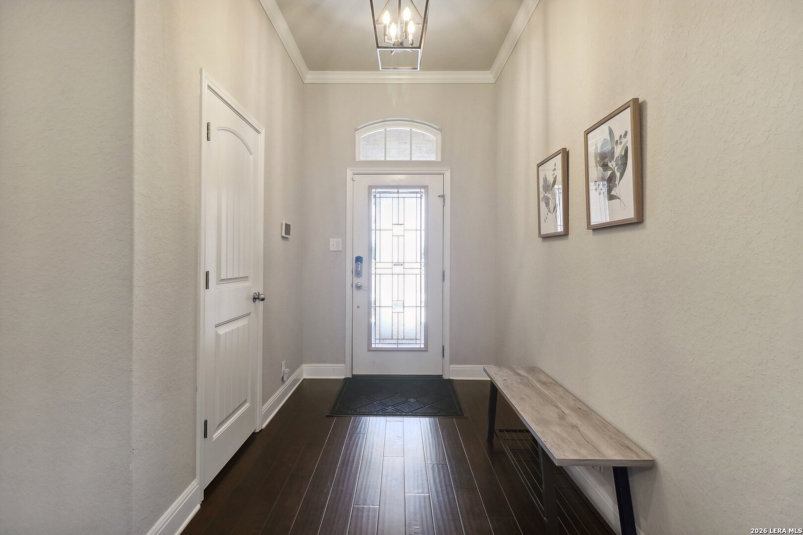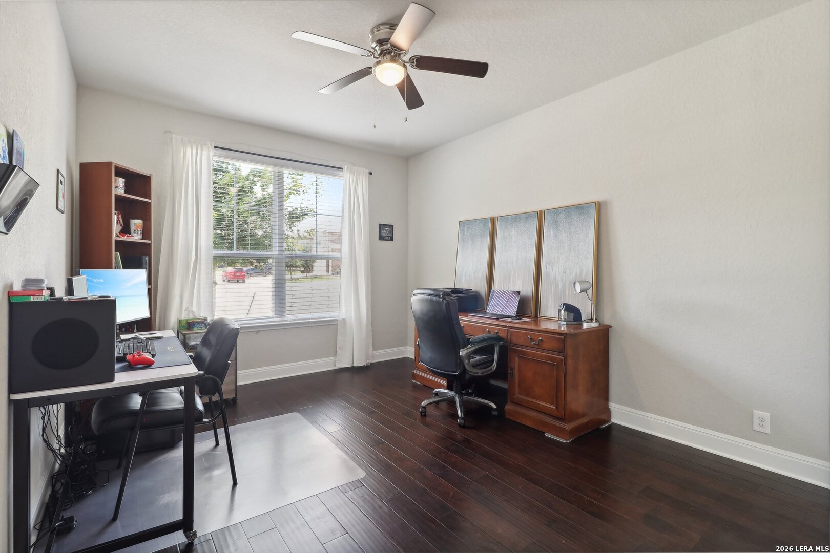 Set within the sought after Valley Ranch community and part of the Northside ISD school district, this one story home in San Antonio features a striking all brick and stone exterior paired with a thoughtfully designed open concept floorplan. Inside, high ceilings and recessed lighting enhance the spacious feel, complemented by durable luxury vinyl plank flooring throughout. The modern kitchen serves as a true focal point, showcasing granite countertops, a dramatic floor to ceiling backsplash, and a large waterfall island with seating for up to six, ideal for gatherings and everyday use. The layout flows seamlessly into the main living areas, creating a functional and inviting space. Offering 5 bedrooms, the property provides flexibility for a variety of needs. The primary suite includes a walk in closet with custom shelving, adding both convenience and organization. Step outside to a large backyard with a covered patio, perfectly positioned to back up to a greenbelt, providing added privacy and a natural backdrop. Additional features include solar panels, contributing to energy efficiency and long term savings.