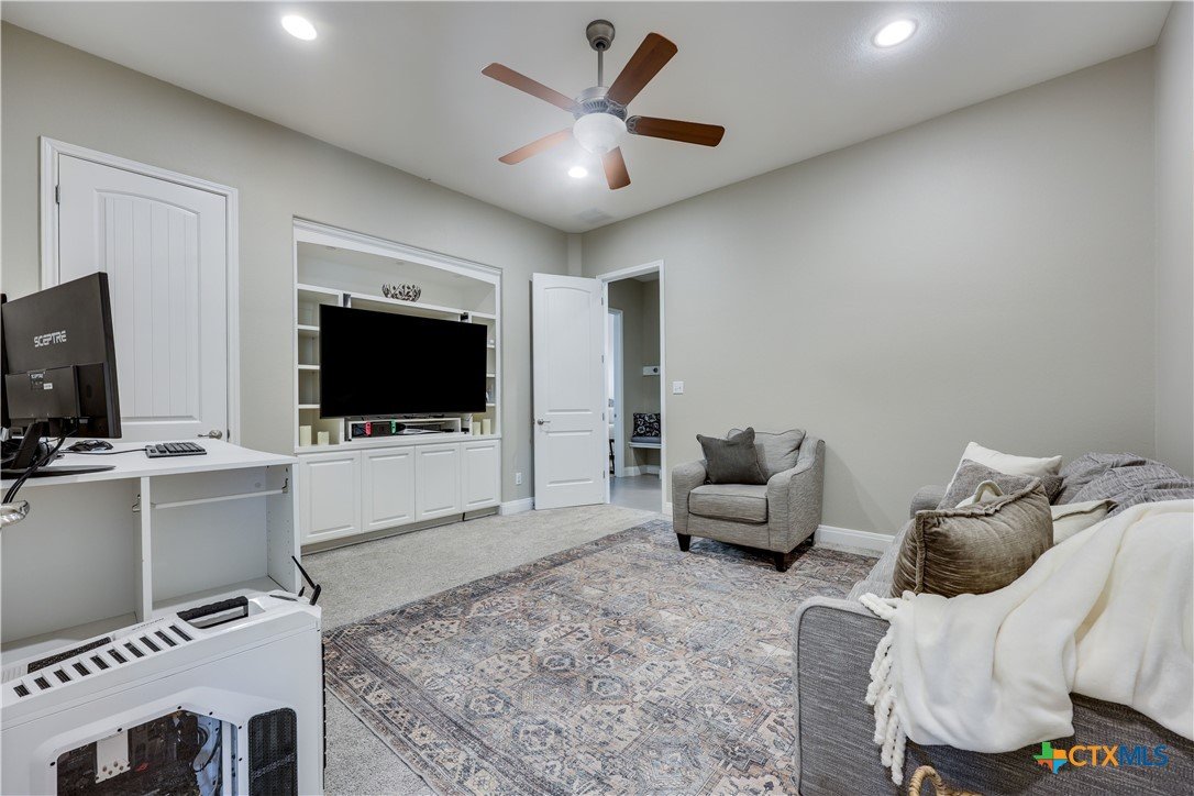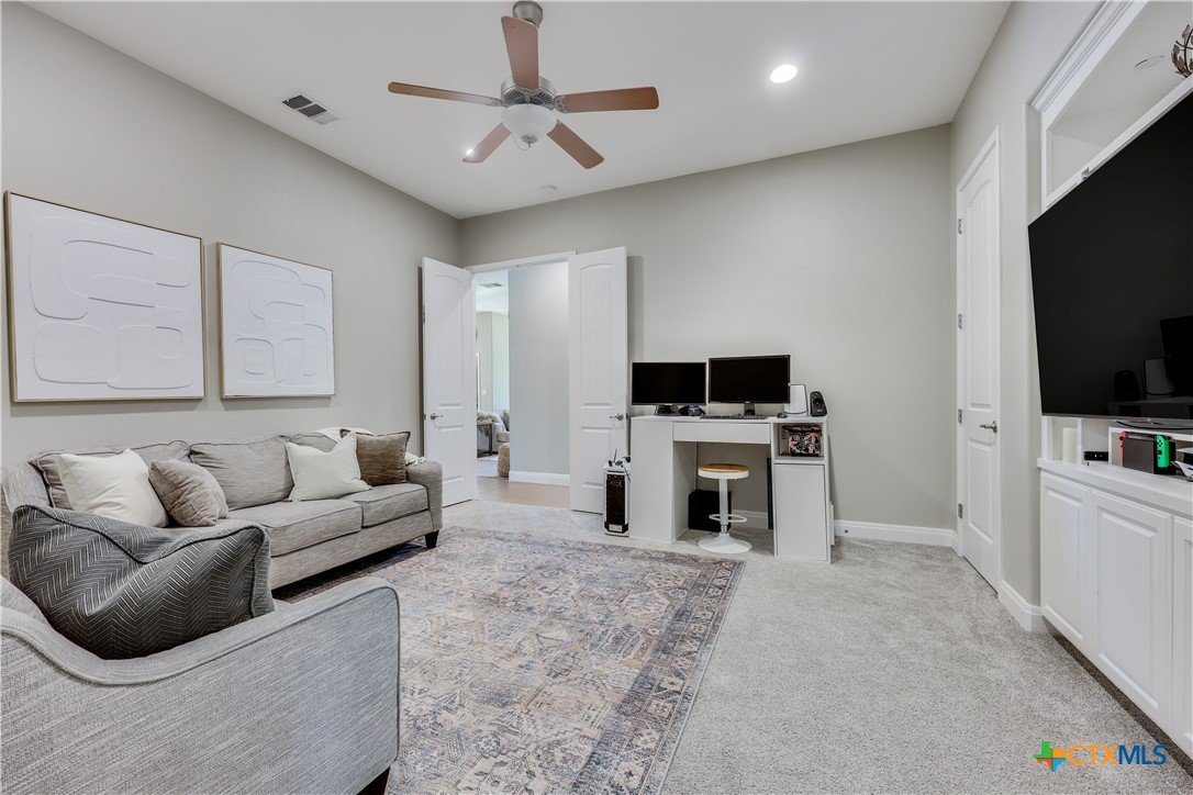 Located at 13530 Mesa Verde Dr in Austin, Texas, this beautifully maintained single-story home in the highly sought-after Belterra community offers comfort, functionality, and Hill Country living. Situated toward the back of the neighborhood for added privacy and minimal traffic, the home features a flexible layout ideal for families, guests, or working from home. A front bedroom with an adjacent full bath provides an excellent guest suite or office option. Down a separate hallway, you’ll find two additional bedrooms, another full bathroom, and a versatile bonus or media room, creating a private secondary living space. The spacious primary suite is tucked away and features a recently remodeled, spa-like bathroom designed for relaxation. The open-concept living room, kitchen, and dining areas are filled with natural light and flow seamlessly together, making the home ideal for everyday living and entertaining. Step outside to a covered patio with additional outdoor space below, perfect for outdoor dining, gatherings, or quiet evenings. The home is equipped with a Puronics water softener and a reverse osmosis system under the sink, both professionally installed in 2024—offering enhanced water quality and added everyday convenience. Belterra is one of Southwest Austin’s premier master-planned communities, offering miles of scenic trails, multiple parks and playgrounds, a resort-style pool complex with splash pad, sports courts, and a recreation center with a modern fitness facility. The neighborhood provides convenient access to shopping, dining, top-rated schools, and major routes into Austin. Discover the space, privacy, and lifestyle offered at 13530 Mesa Verde Dr.