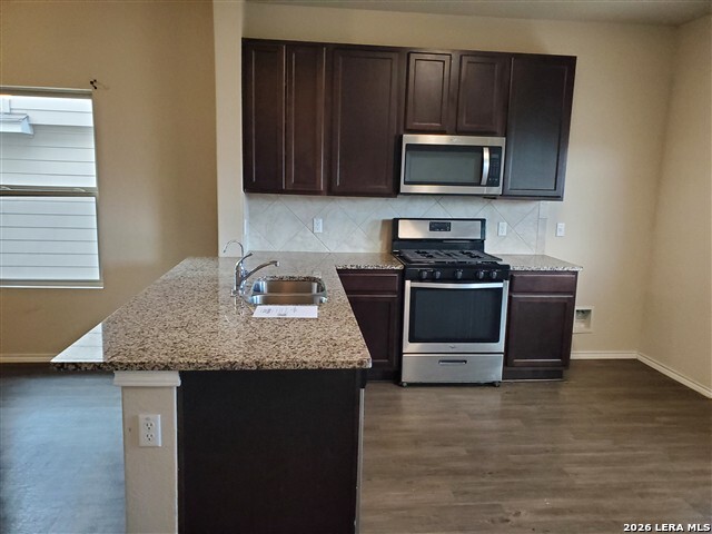 Beautiful 4 bedroom 2.5 baths located in Abbot Place. Open concept; primary bedroom and bathroom on the main floor. Family room upstairs with remaining 3 bedrooms and full bath. Kitchen has gas cooking, microwave, dishwasher, an eating area and granite countertops. Abbott Place offers amenities including a community pool, park and playground. Located close to major roads and is close to Randolph Air Force Base, Fort Sam Houston and Lackland Air Force Base. Close to shopping, dining and entertainment. This property may qualify for Seller Financing (Vendee).