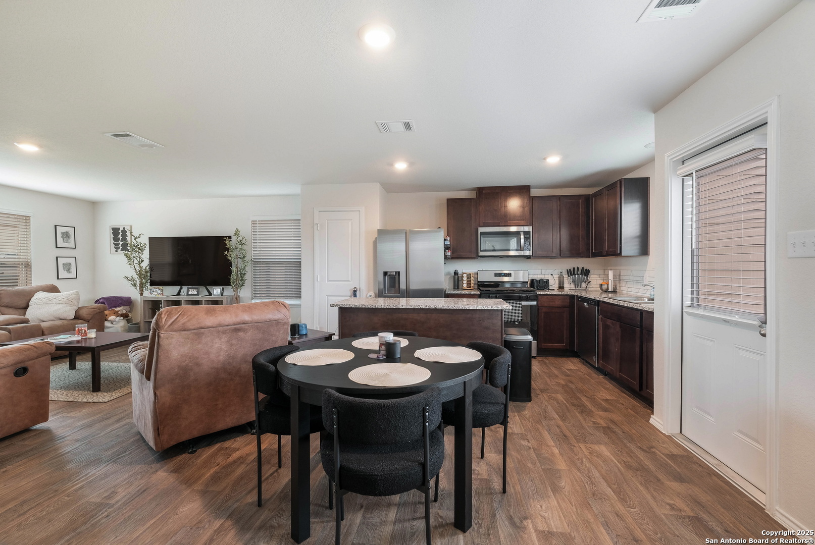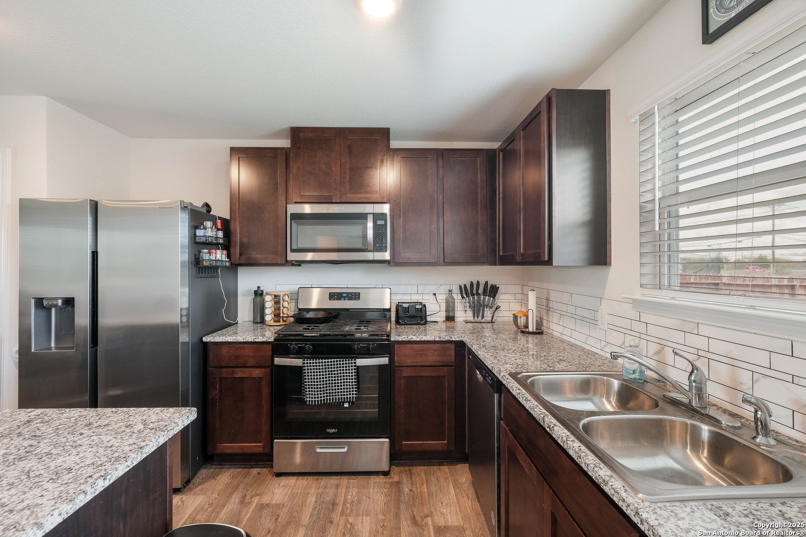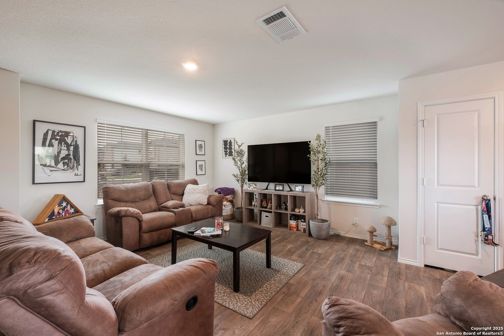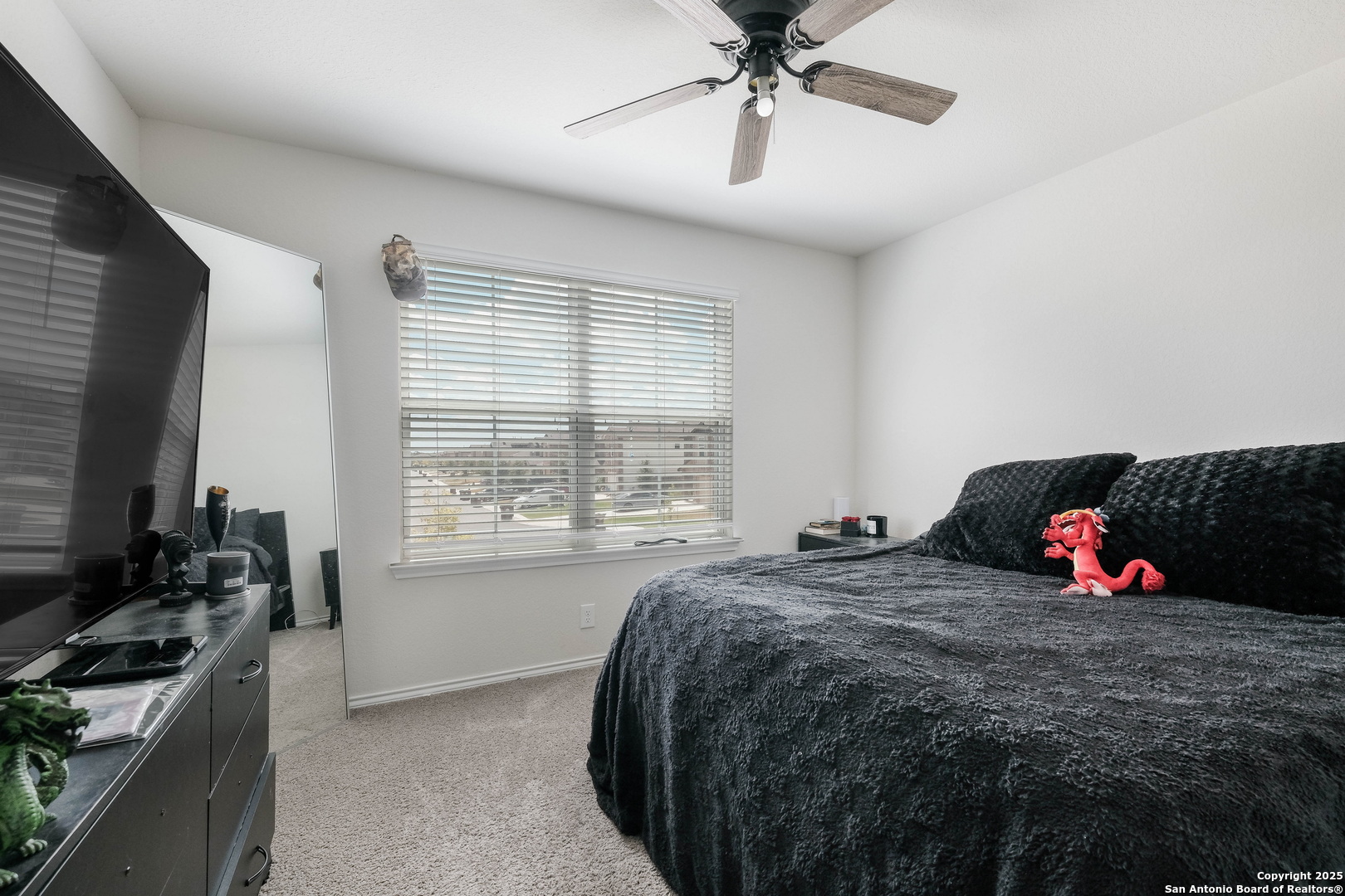 ***4.9 VA ASSUMABLE LOAN*** Welcome to The Ellington in Whisper Falls. The main floor features an open layout with a spacious living area connected to the dining room and kitchen. The kitchen includes a large island, granite countertops, and black appliances. A half bathroom and utility room with extra storage are also located on the first floor. Upstairs, the primary suite includes a full bathroom and walk-in closet. Two additional bedrooms, each with walk-in closets. Sheet-vinyl flooring is included in high-traffic and wet areas, and smart-home features allow control of lights, thermostat, and locks from a compatible device. Whisper Falls offers a variety of community amenities including a pool, splash pad, clubhouse, fitness center, basketball court, and walking trails. The home is served by Medina Valley ISD schools: Lacoste Elementary, Medina Valley Middle, and Medina Valley High. Shopping, dining, parks, and daily conveniences are available within five miles. Lackland Air Force Base is within a 30-minute drive.