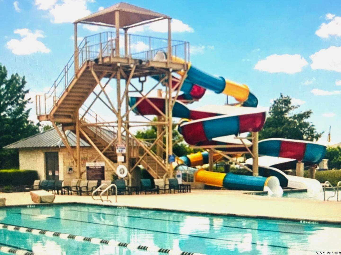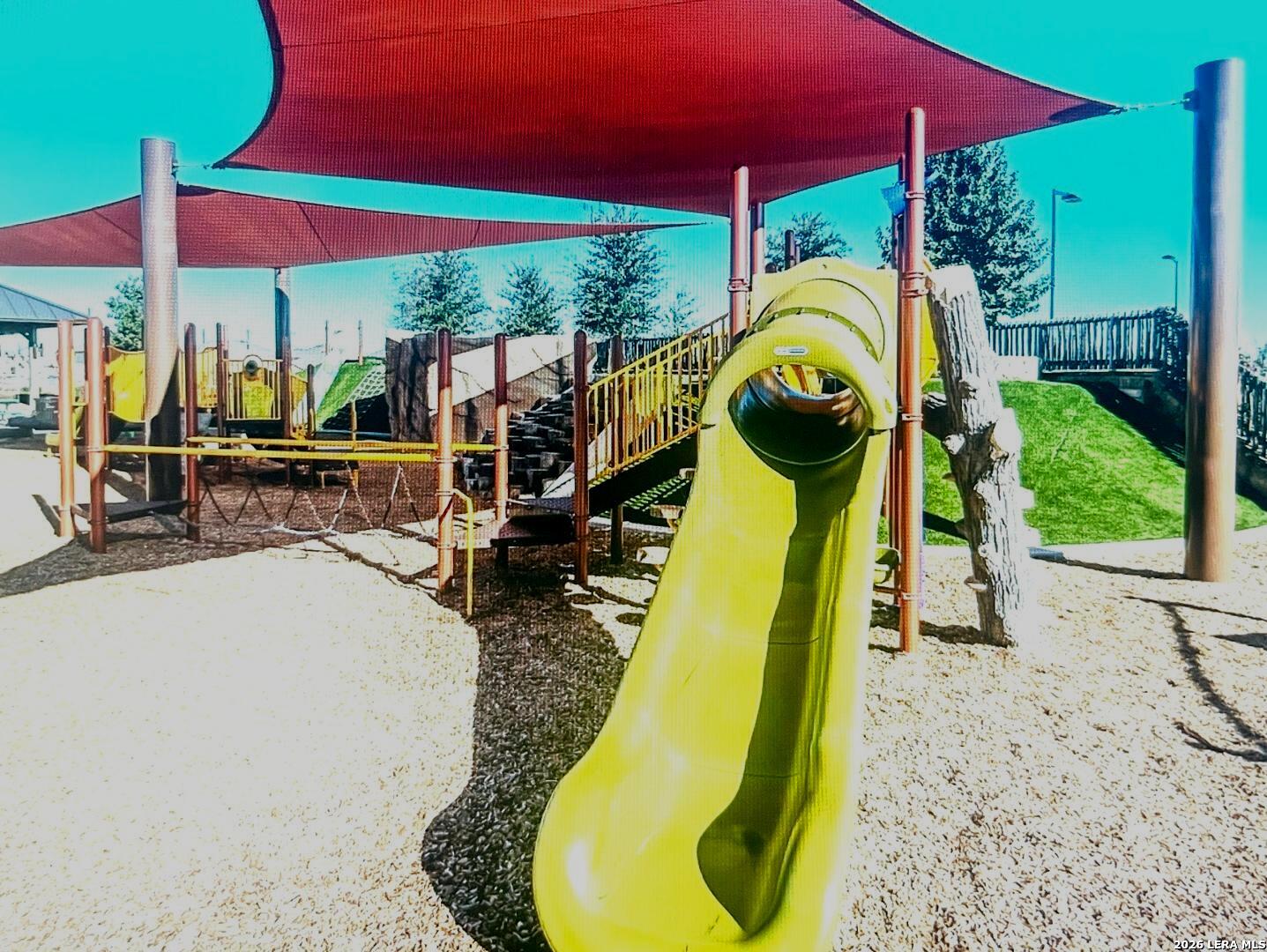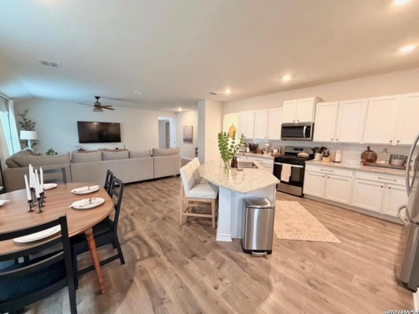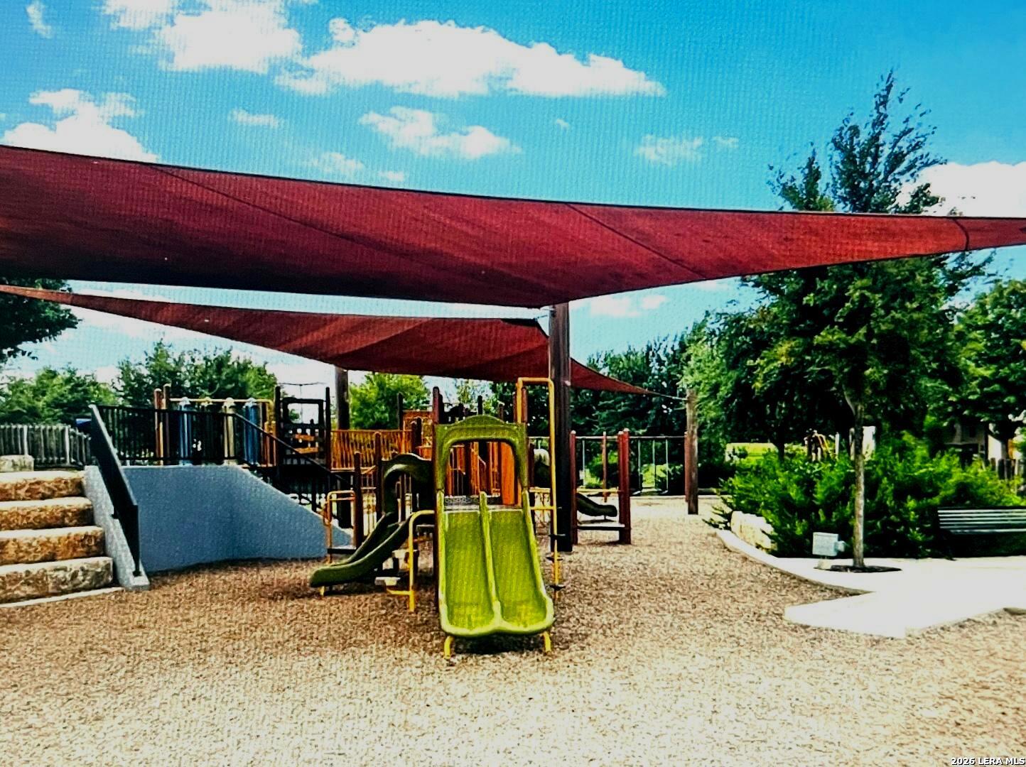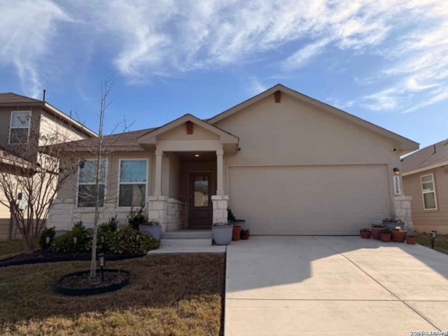 Popular Knight single story floor plan upgraded with 8.5 X 8 covered patio plus extended 12 X 20 patio for entertaining outdoor activities with beautiful landscaping. Home features 4-bedrooms, 2-bathroom open floor plan layout designed to provide spacious atmosphere or comfortable living for the entertaining family. Inviting entry opens to a large Decorative Art niche, spacious open concept family room upgraded ceiling fan & lights with eat-in kitchen breakfast bar and dining area is perfect for entertaining friends & family quality time to build precious memories. Big beautiful kitchen with abundance of oversized cabinets with upgraded with hardware & upgraded sink faucet & under sink drinking water filtration system, granite countertops, stainless steel appliances, classic subway tile backsplash, huge island for family gatherings, pantry. Two spacious secondary bedrooms with upgraded ceiling fans & lights, with hall bath between, a 4th bedroom with big walk in closet, adjacent big laundry room. Oversized Master Bedroom with upgraded ceiling fan & lights with adjacent spacious full bath, double vanity, separate tiled shower with upgraded shower heads and tiled surround garden tub for relaxing, includes closet with wood shelving. Installed window blinds throughout. Home has 2 car garage attached, includes water softener & garage door opener, beautiful upgraded landscaping with sprinkler system front & back makes this property very appealing with curb appeal. Perfect location for school access, new HEB for grocery shopping. Neighborhood amenities galore for family parties & entertaining, Desirable HOA event participation is unbelievable with activities for all ages. THE "EXTRA" SECURITY (VIVINT) SYSTEM WILL NOT CONVEY & WILL BE REMOVED BY SELLER. THE 2 TV'S & MOUNTS WILL NOT CONVEY AND WILL BE REMOVED BY SELLER.