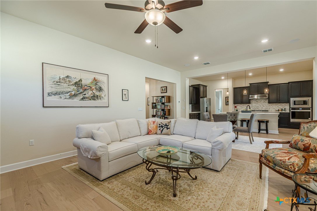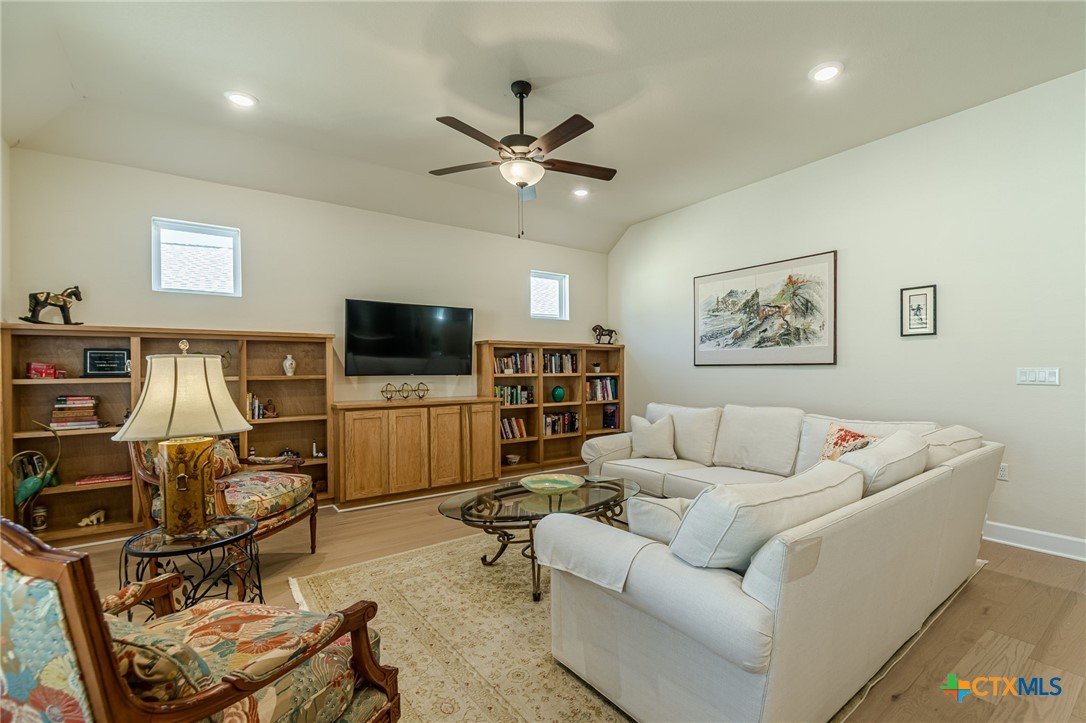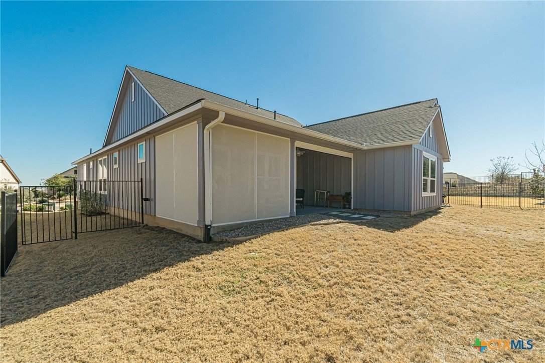 You’ve found the one! This stunning farmhouse-style home features a private backyard, screened-in porch, and thoughtful custom built-ins throughout. The popular Monroe floor plan offers a spacious, open-concept hub—perfect for entertaining—while placing bedrooms on opposite ends of the home for maximum privacy. At the front of the home, a generously sized guest en suite functions beautifully as a second primary bedroom, with the bathroom tucked privately within the suite. A large study off the main hall showcases custom built-in shelving, making it ideal for a home office, den, or flex space. The island kitchen is a true showstopper, featuring expansive granite countertops with plenty of room to gather—perfect for hosting friends and family or creating your dream chef’s kitchen. The primary suite is located at the rear of the home and includes a spa-like bathroom so spacious you can dance in it! An oversized garage comfortably fits two SUVs plus two golf carts, adding both convenience and storage. Designer selections throughout elevate the home’s style and make this one an absolute must-see. Schedule your private showing today—this beauty won’t last long!