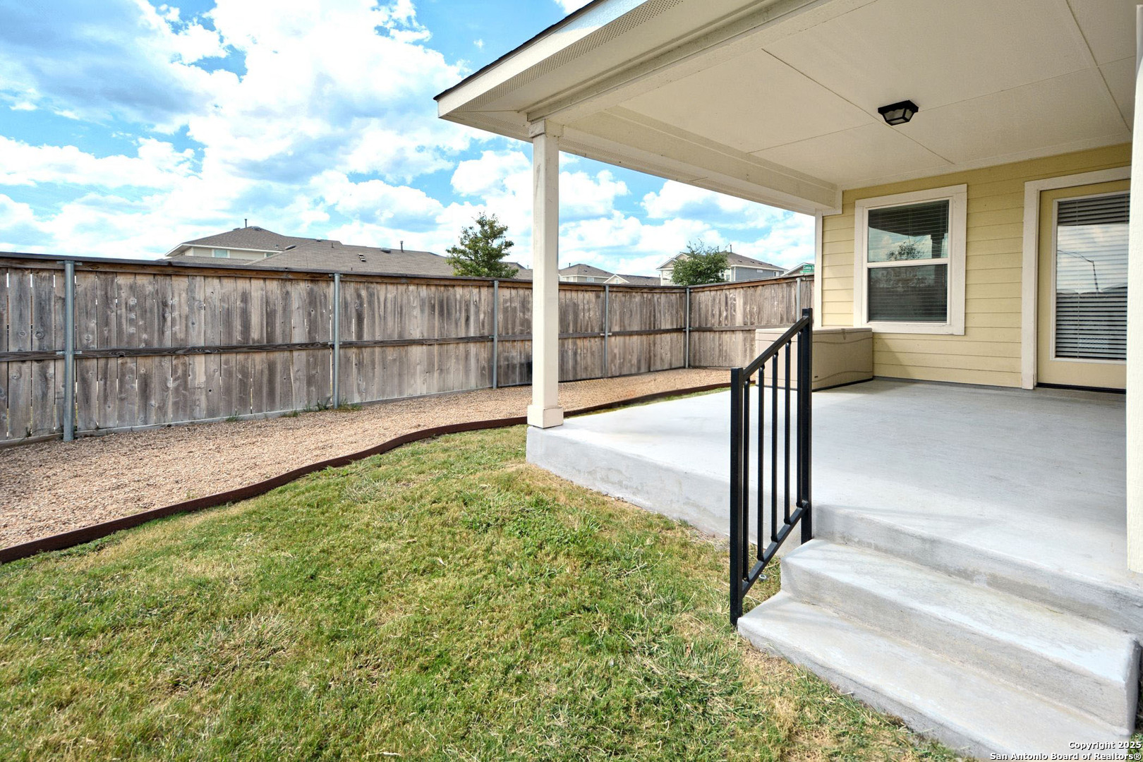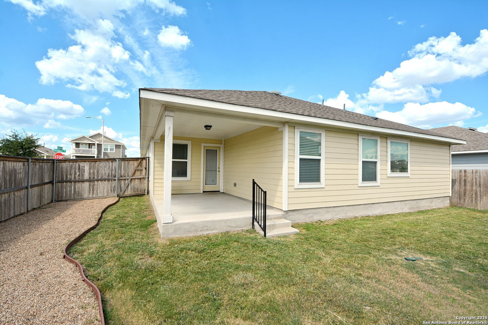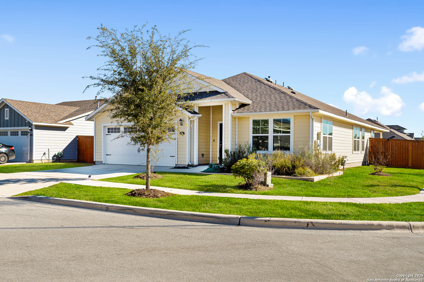 PRICED TO SELL! Feel right at home with this stylish and adorable 3 bed/2 bath home in the TRACE community situated on a corner lot with sidewalks and street lights. Let the front living area welcome you as it guides you to the open floor plan with tile flooring, island kitchen, granite counter tops, white shaker cabinets, tile backsplash, and spacious living room. Each of the three bedrooms features carpeting and vaulted ceiling. Enter into the primary bedroom suite comes with walk-in closet, private bath with garden tub, tiled walk-in shower, dual sinks. Overlook the spacious, private backyard with dedicated xeriscape area from the covered backyard porch. TRACE is a new home master-plan community in San Marcos that offers amenities such as resort style sparkling community pool, volleyball court, basketball court, covered pavilion with picnic area, Nacogdoches Park with playscape, and on-site Rodriguez Elementary School.