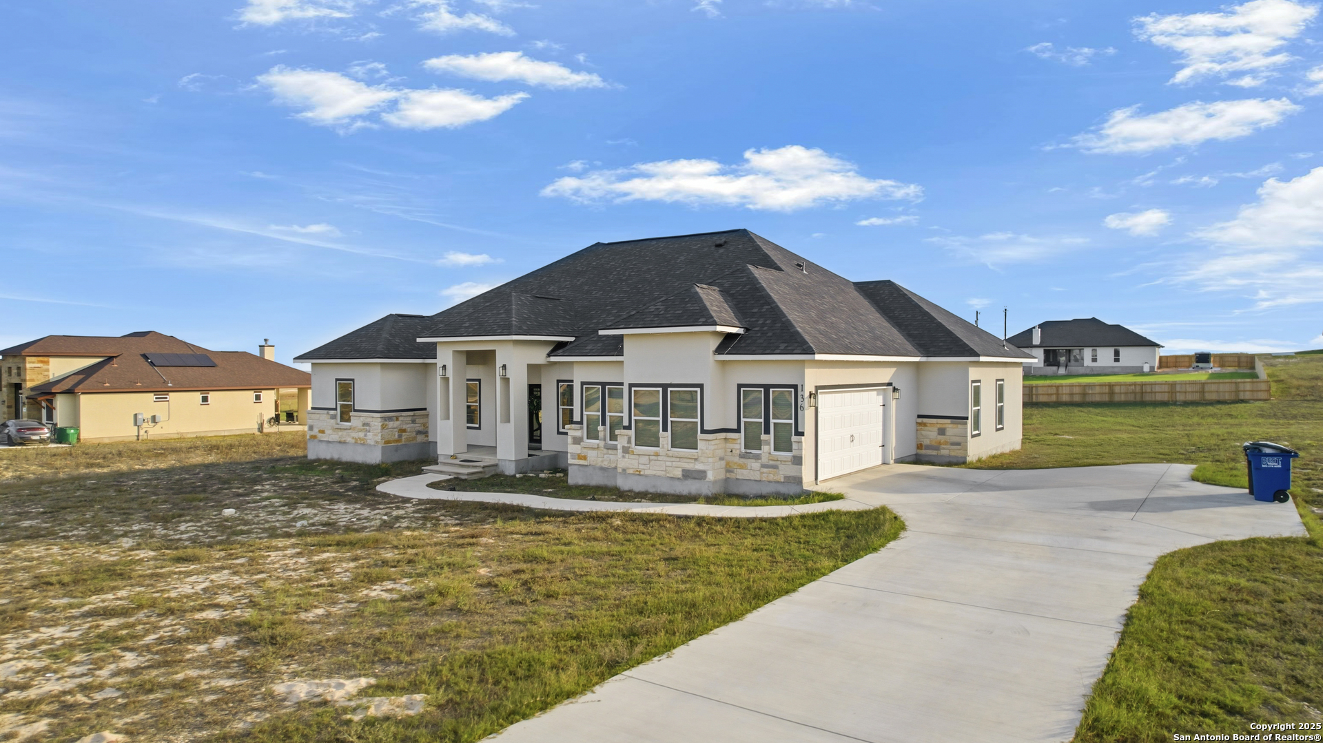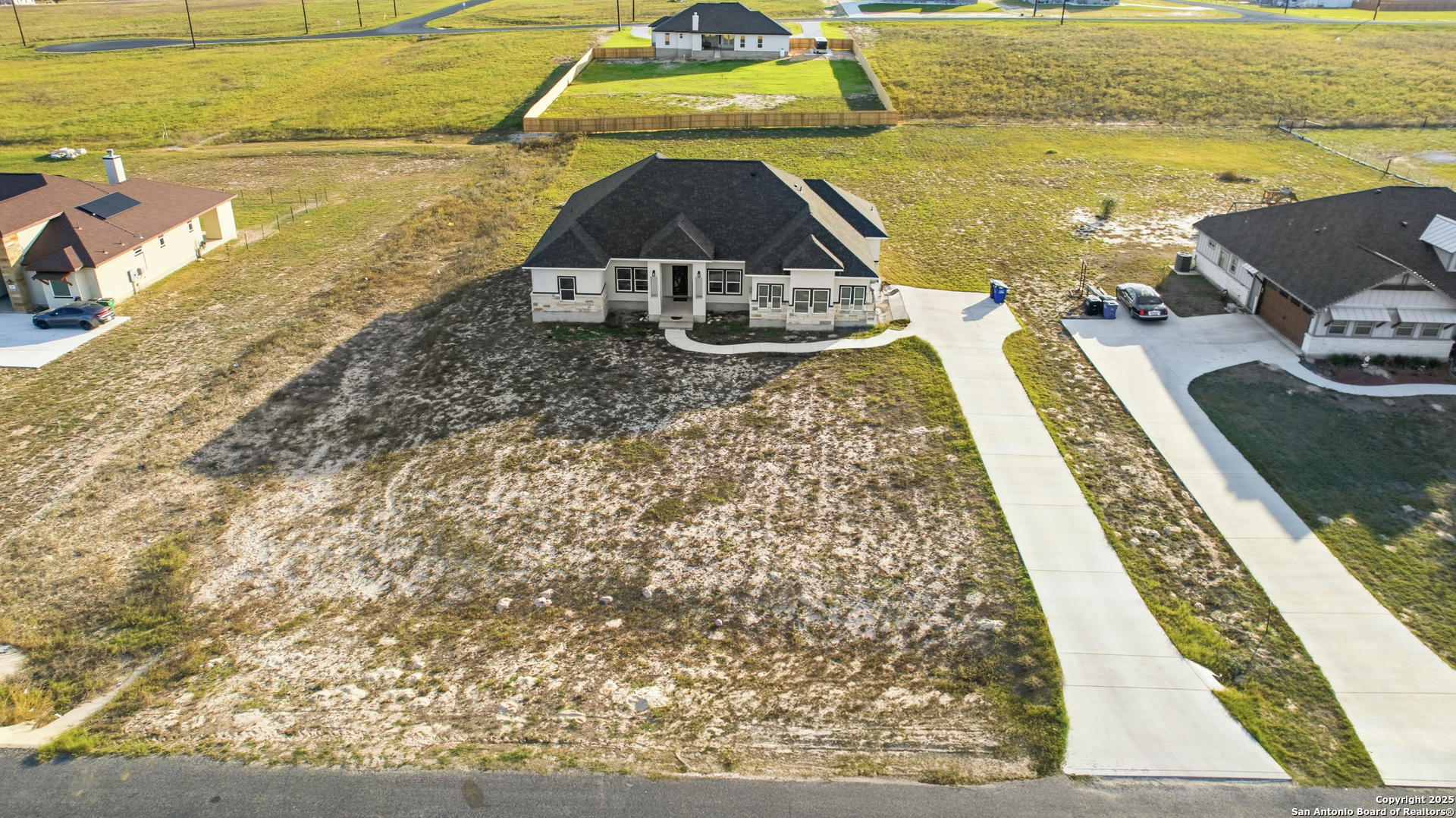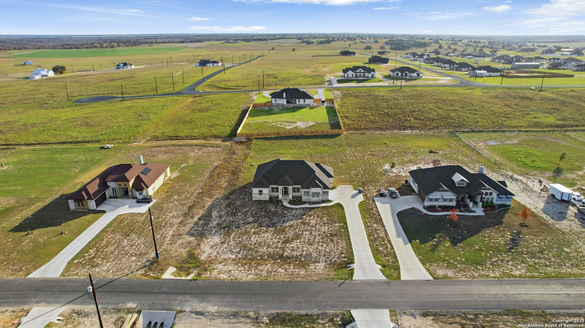 Welcome to modern Texas living in La Vernia! Built in 2023, this stunning custom home offers the perfect blend of contemporary design, comfort, and space, all set on a generous 1.03-acre lot. This thoughtfully designed 4-bedroom, 3-bathroom residence features clean architectural lines, an inviting facade, and expansive windows that fill the home with natural light. The open-concept layout creates a seamless flow between living, dining, and kitchen spaces-ideal for both everyday living and entertaining. Outside, enjoy the freedom and privacy that comes with over an acre of land-plenty of room for outdoor living, future additions, or simply enjoying wide-open Texas skies. The long driveway and surrounding open views enhance the home's sense of space and serenity. If you're looking for a nearly new, custom-built home with modern appeal and room to breathe, this home delivers both style and substance in one exceptional package.