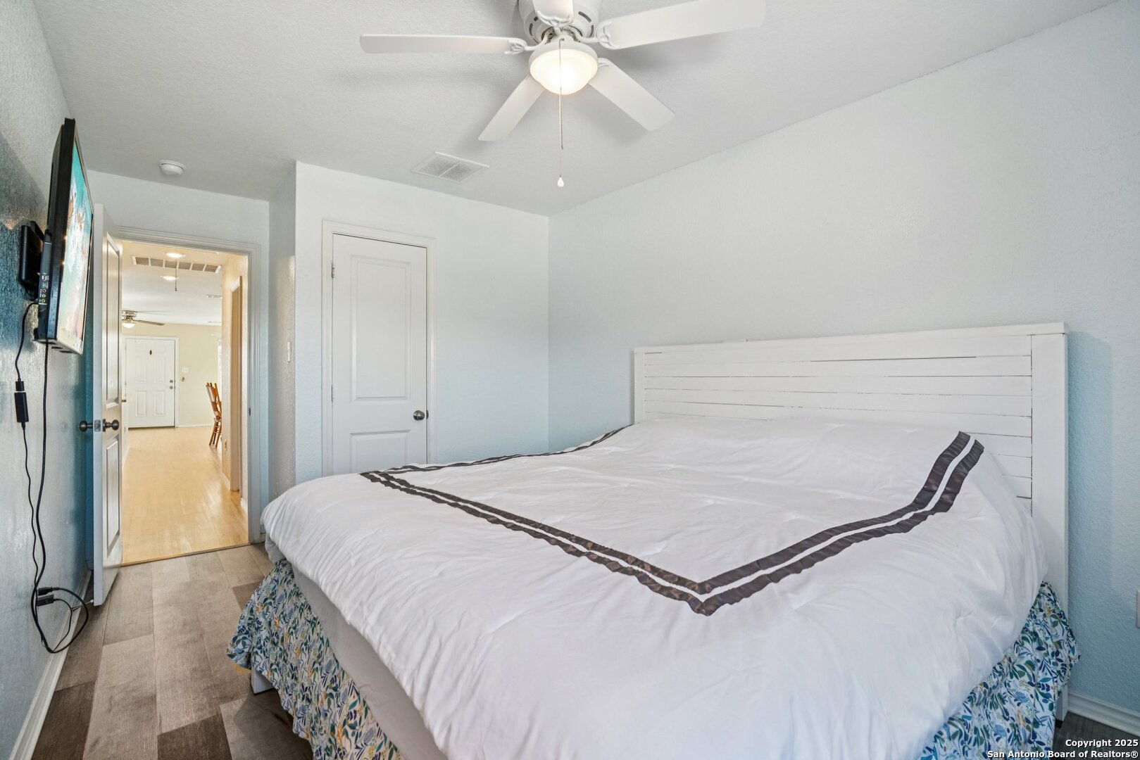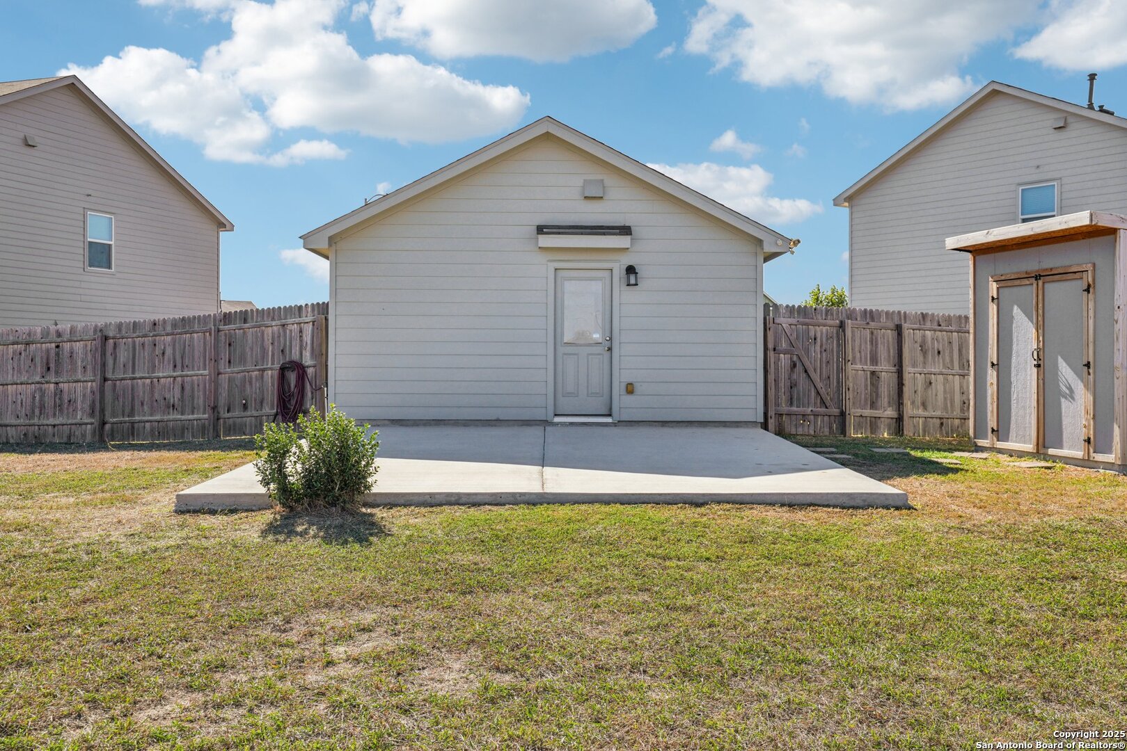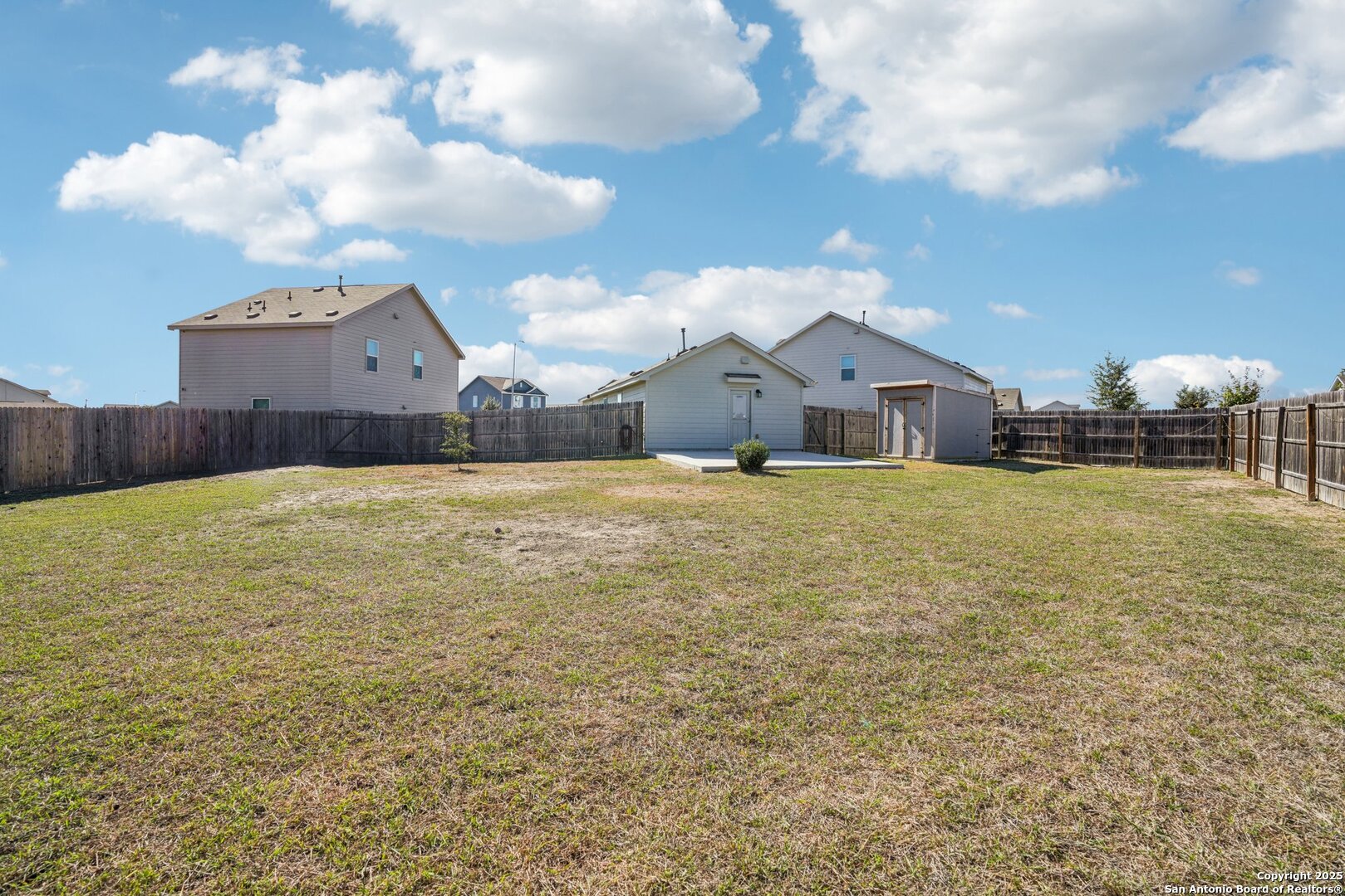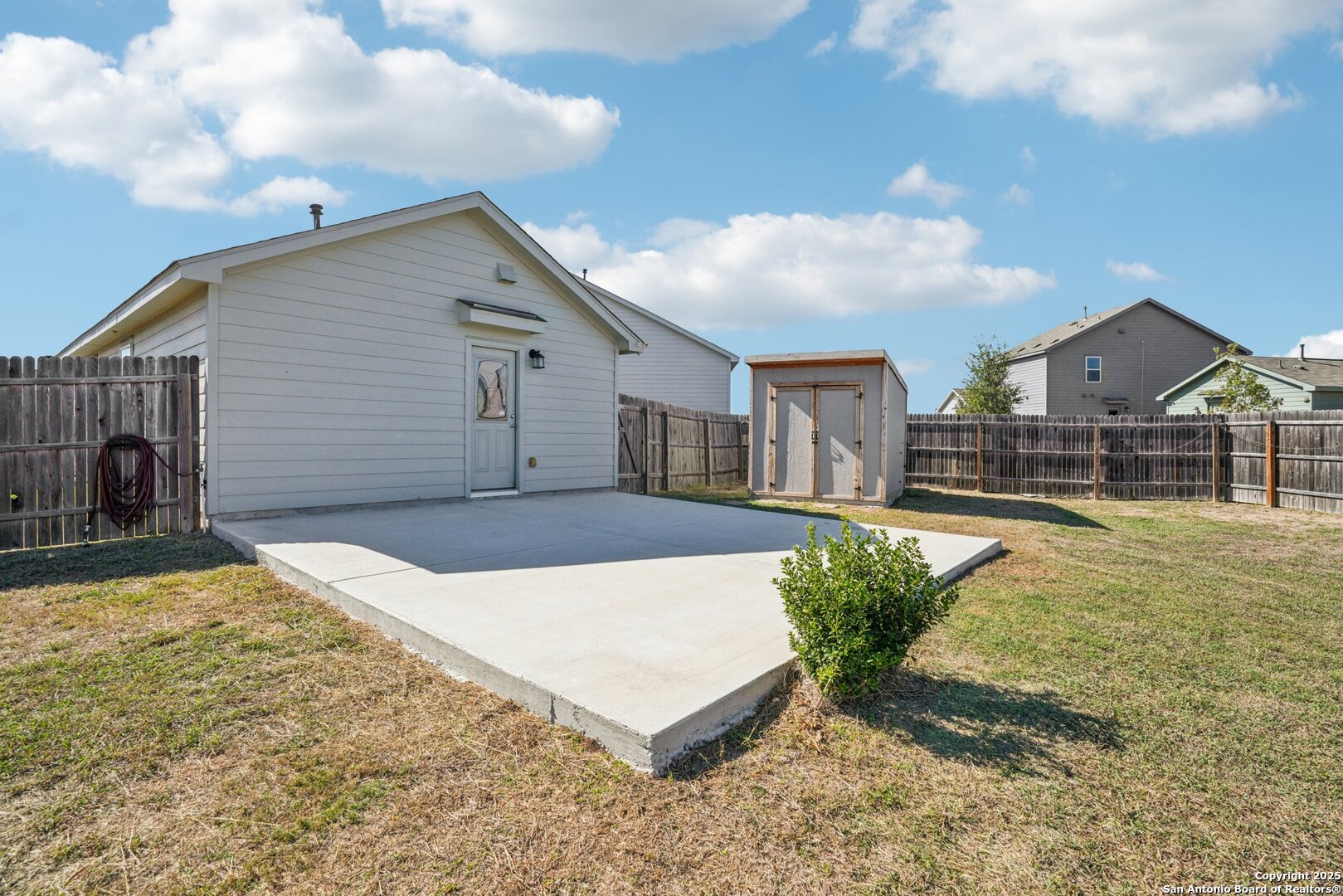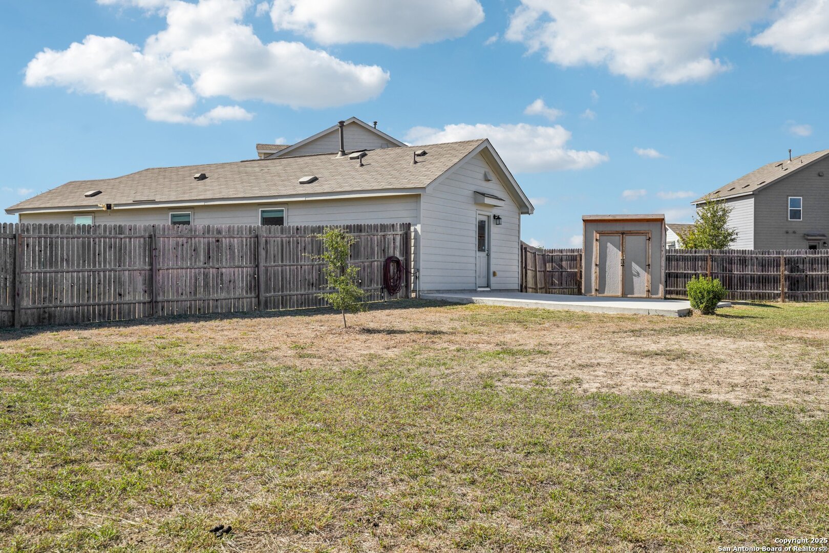 Welcome to 13607 Flock Place situated on nearly a quarter-acre, cul-de-sac lot! Step inside this beautifully maintained three-bedroom, two-bathroom home, and instantly fall in love! Built in 2020, this home feels like new and has been lovingly cared for, offering a fresh and inviting atmosphere from the moment you walk in. The open-concept layout creates a seamless flow between the main living and dining areas, making it the perfect space for entertaining or relaxing. The kitchen is a standout, featuring sleek granite countertops, stainless steel appliances, ample cabinet and counter space, and gas cooking-a dream for any home chef! Down the hall, you'll find two well-appointed secondary bedrooms and a full guest bathroom. The spacious primary suite is a private retreat, complete with an en suite bathroom featuring a single-sink vanity and a shower/tub combo for ultimate convenience. Step outside to enjoy a near quarter-acre backyard complete with a 20x20 patio, shed, and yard lighting - perfect for outdoor dining, weekend BBQs, or relaxing under the Texas sky. Beyond the home itself, Silo residents enjoy access to top-notch amenities, including a state-of-the-art fitness center, a sparkling community pool, and a playground-perfect for staying active and enjoying the outdoors. The new onsite elementary school located just a half mile away. Plus, the community's prime location just off Highway 90 makes commuting a breeze, with Lackland Air Force Base and other major employers a short drive away. If you're looking for a move-in-ready home in a vibrant community, this one is a must-see!