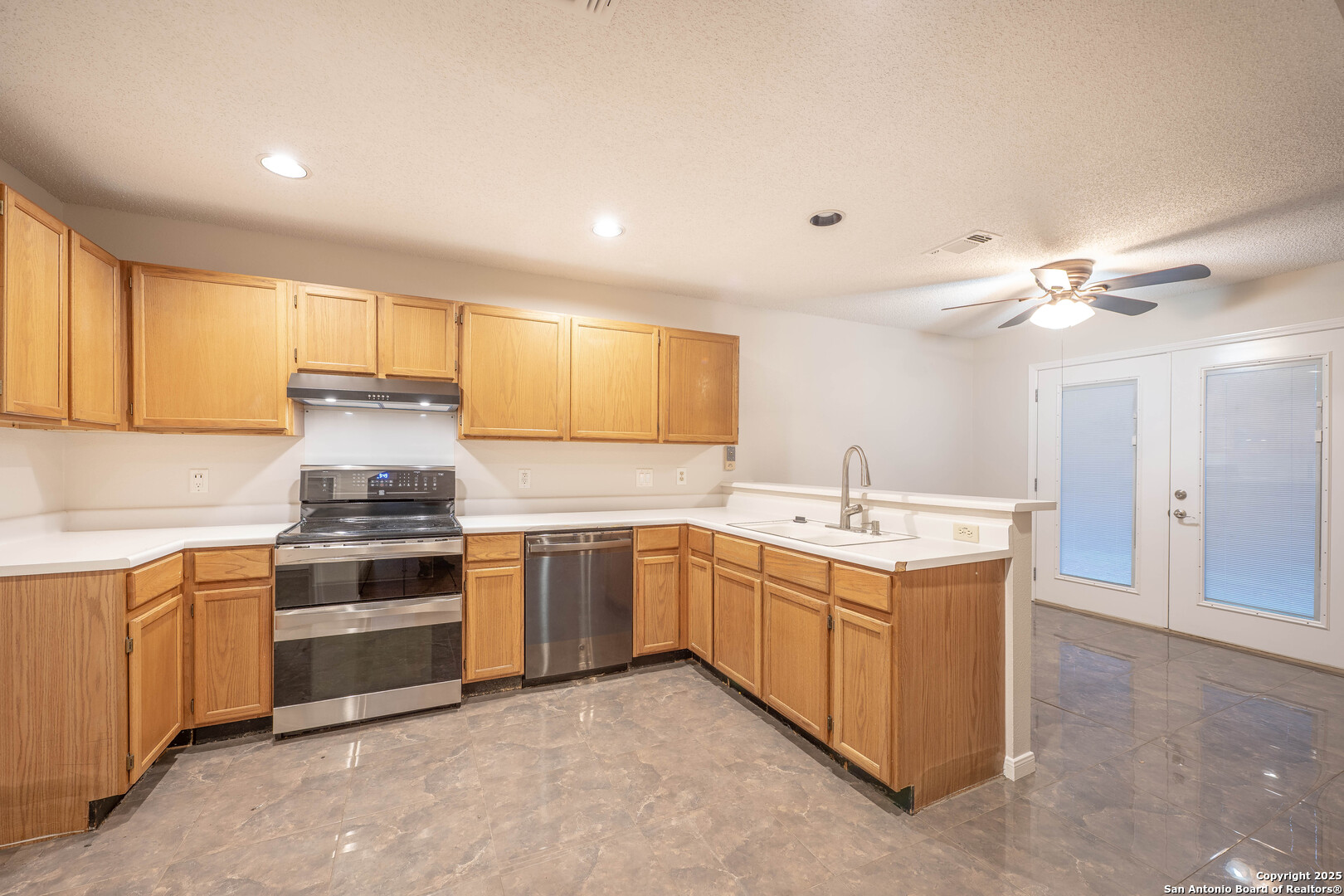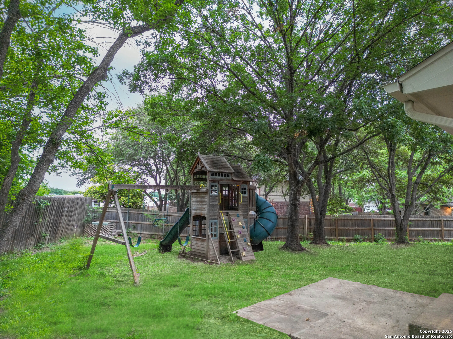 This lovely one-story, 3 bedroom/2 bath home is located in a quiet cul-de-sac in the peaceful Canyon Parke subdivision. The large living/dining area connects to the kitchen with an eat-in bar, and a second dining area. There is also a family room, complete with a tile-accented wood-burning fireplace and high ceilings. French doors lead to the oversized backyard, shaded by several mature trees, perfect for relaxing and entertaining. Updates to the home include a new AC in 2009, a new roof in 2010, triple pane windows, and freshly painted interior walls. The home is conveniently located minutes from 281/ IH-35/ Brookhollow/ Bitters and the airport. Schedule your tour today!