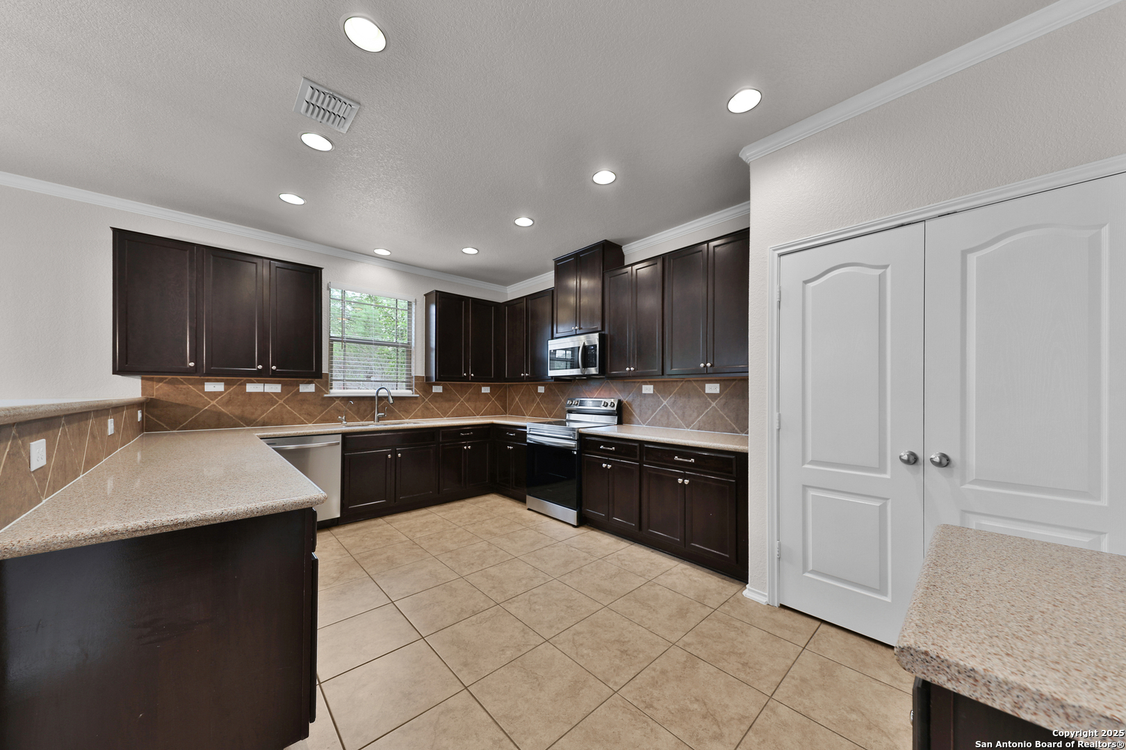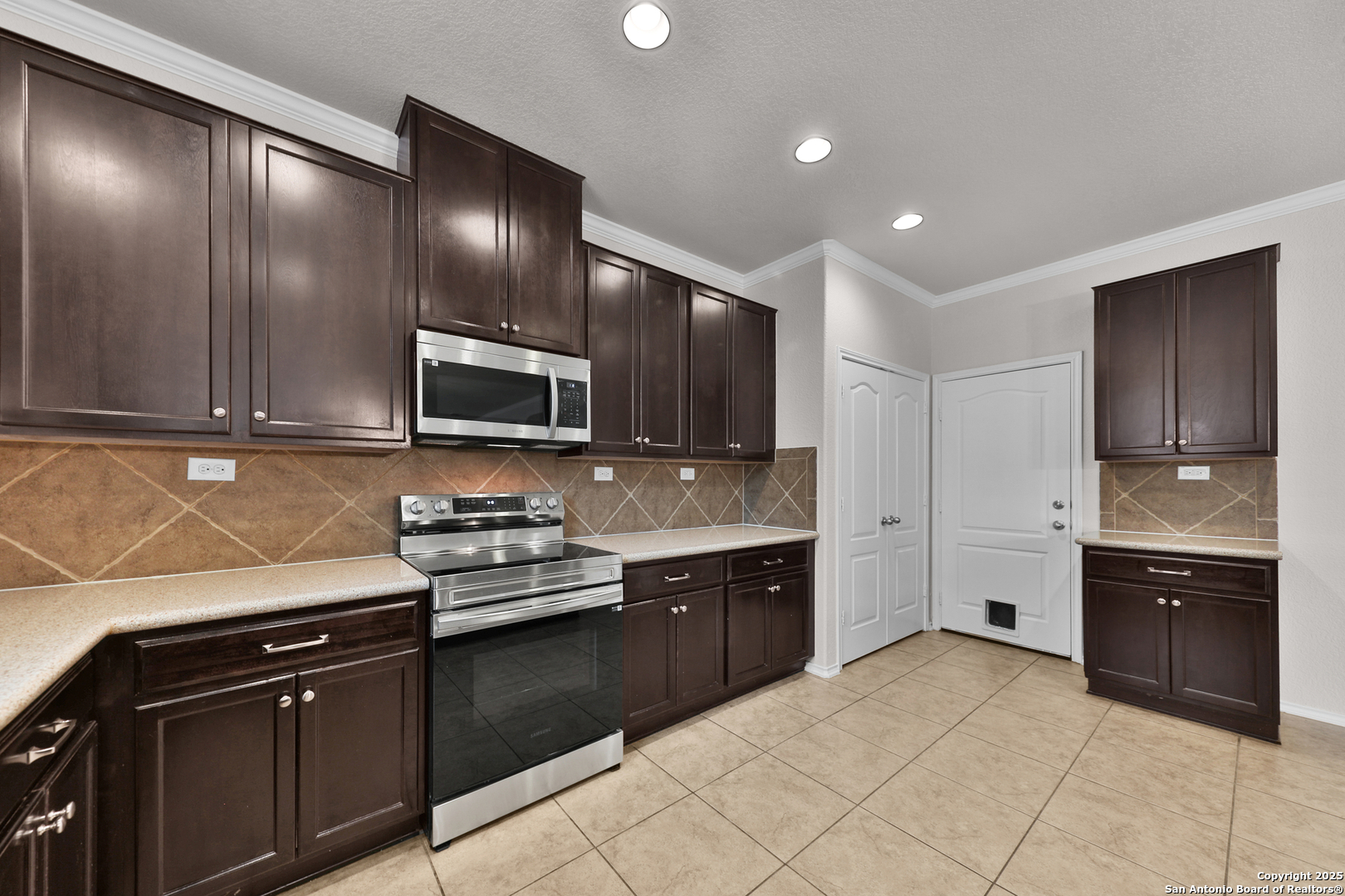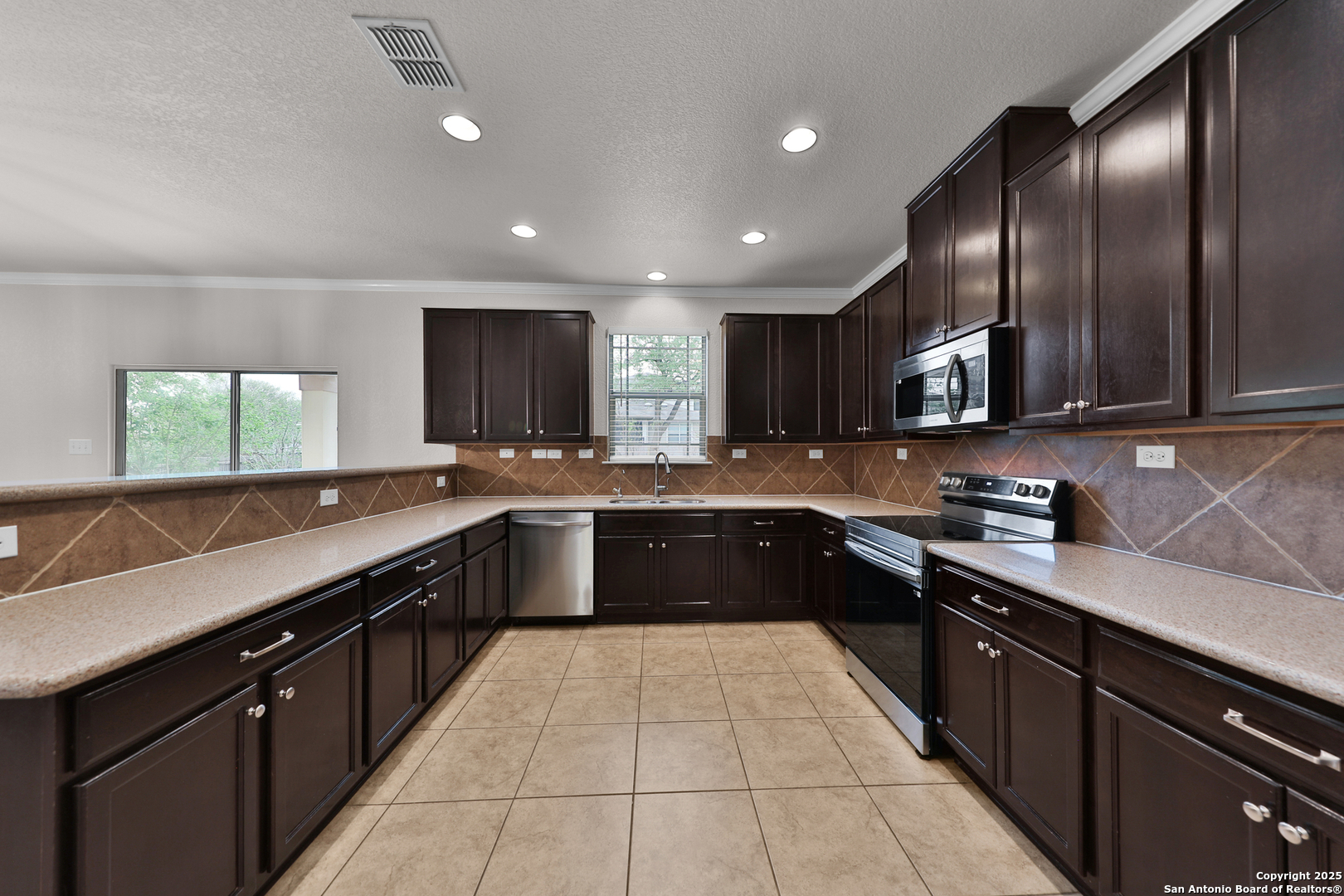 This beautifully updated two-story home is located in the established community of The Ridge at Sundance. Conveniently situated just minutes from Hwy 211, Texas Research Park, and the Microsoft Data Center, with easy access to NISD schools, shopping, and dining. Inside, you'll find fresh interior paint, new carpet upstairs, crown molding, and stainless steel appliances. The first floor features 9-foot ceilings and an open-concept layout, perfect for everyday living and entertaining. Enjoy the spacious backyard with a covered patio and mature fruit trees. Community amenities include a swimming pool, playground, basketball court, walking trails, and an indoor gathering center. Don't miss your chance to lease this gorgeous home!