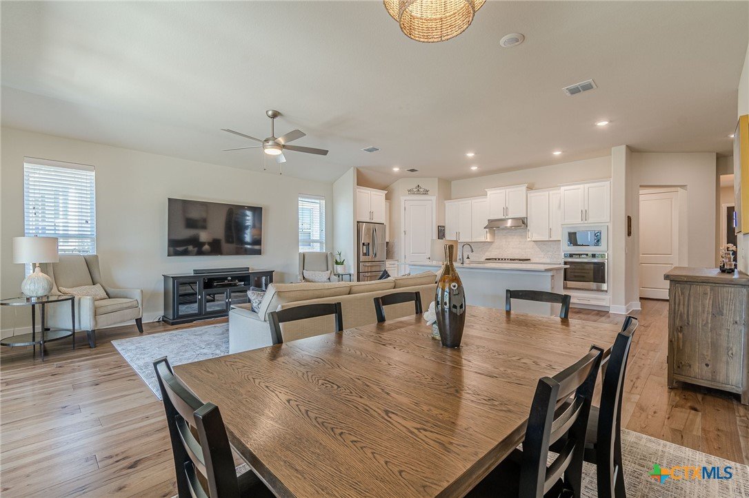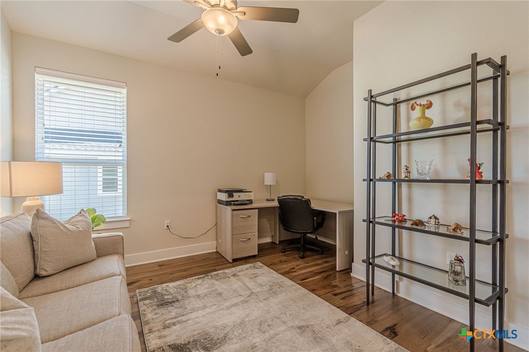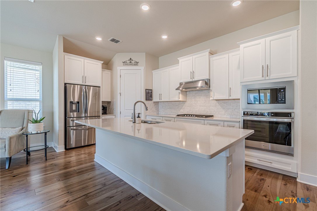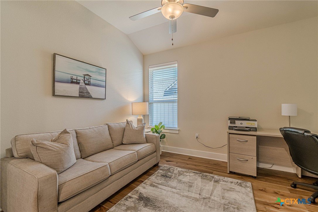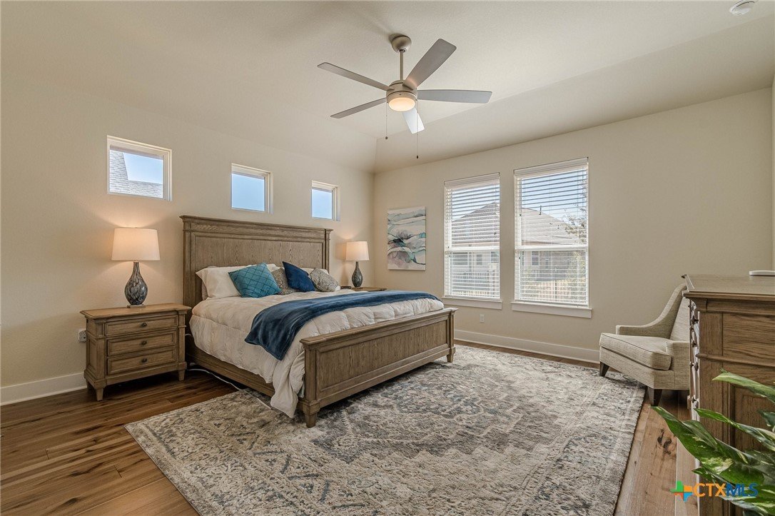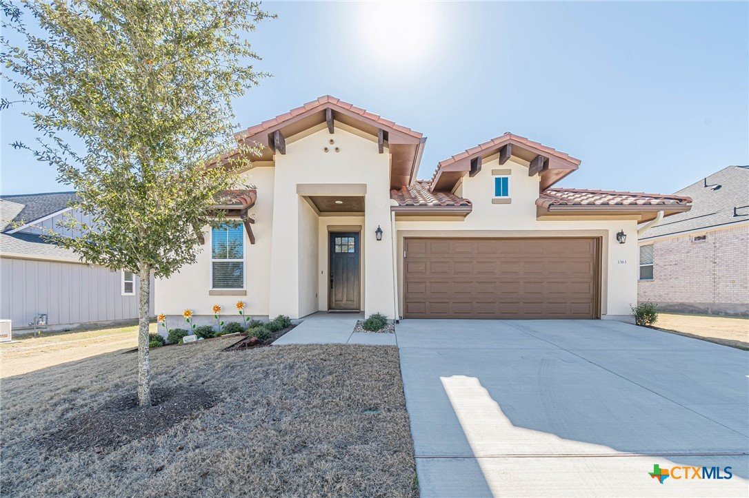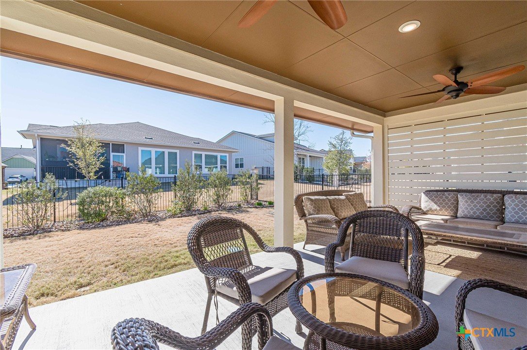 Excellent opportunity to own this spacious and open floorpan in the prestigious Kissing Tree community. Beautiful neutral designer colors throughout including the white cabinets, light granite counters and the beautiful light wood floors throughout - and tile flooring in the wet areas, and upgraded selections with tile to ceiling in bathroom tub/shower spaces. The large open kitchen/living/dining with the study off this main living area makes this home living expansive and impressive! Both the main and guest bedrooms offer generous space to fit a king bed! Live your best life with your extended outdoor living space that you can relax with a coffee, or entertain friends with plenty of room for all. This very active adult community offers scheduled events, clubs & groups, a golf course, fitness center, community restaurant, bocce ball, dart depot, art studio, library and SO much more! Call now to see this beautiful property.