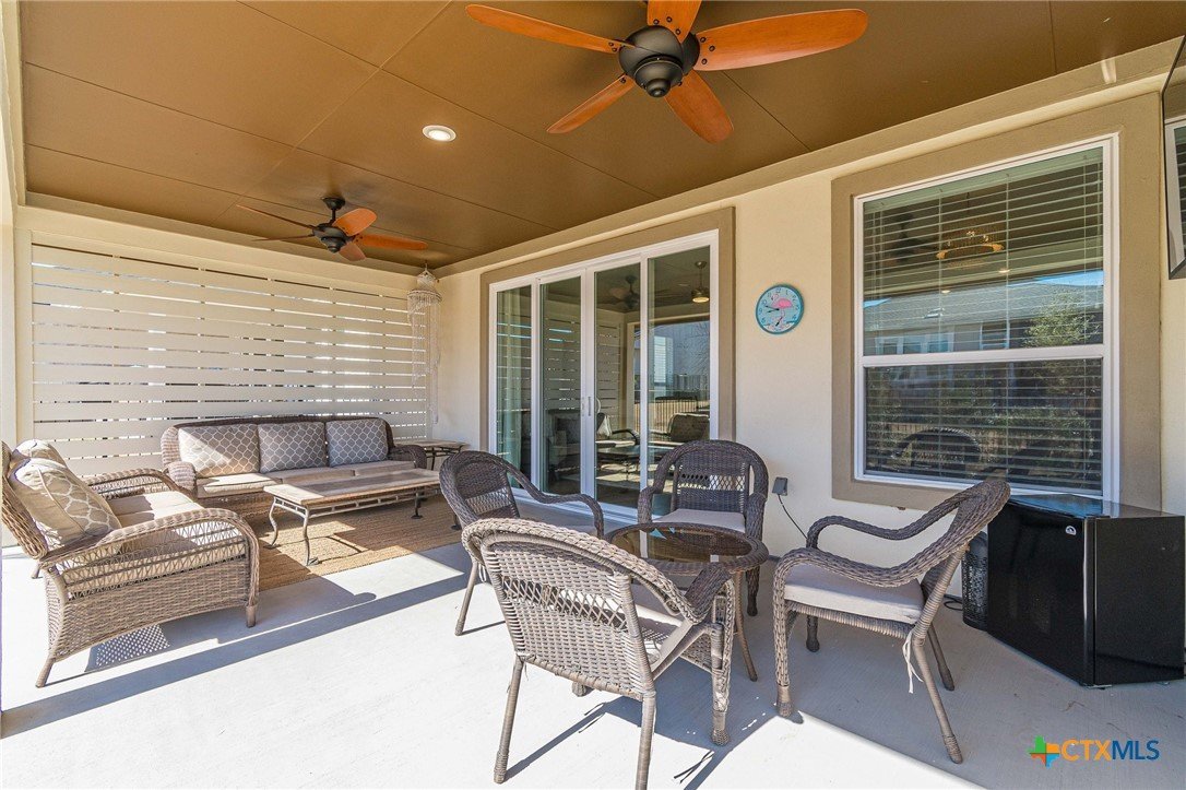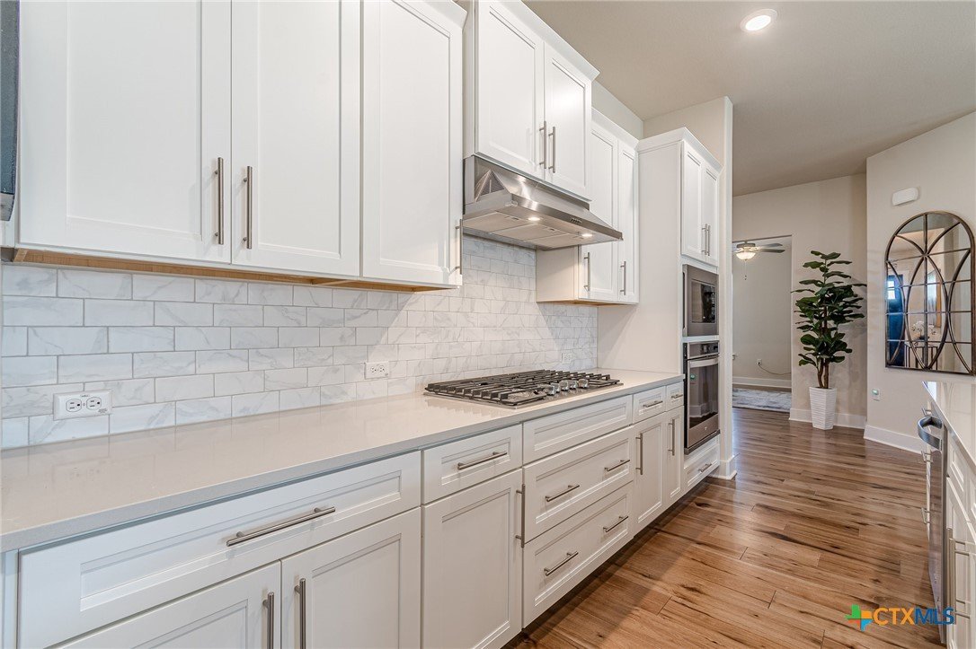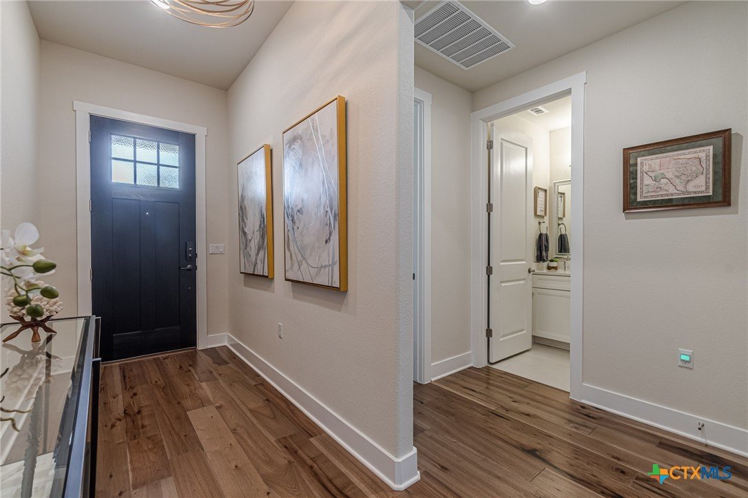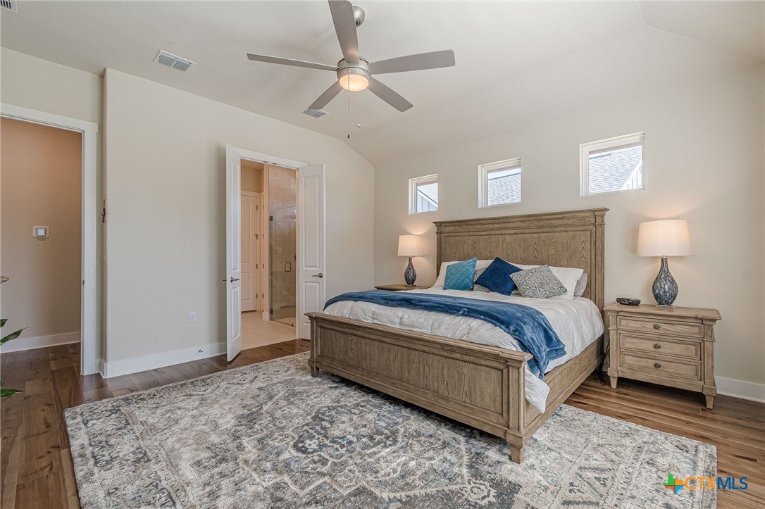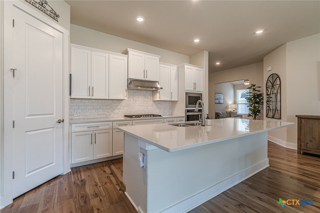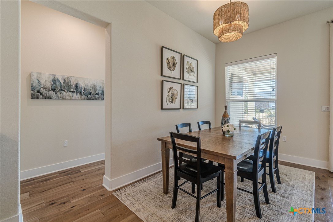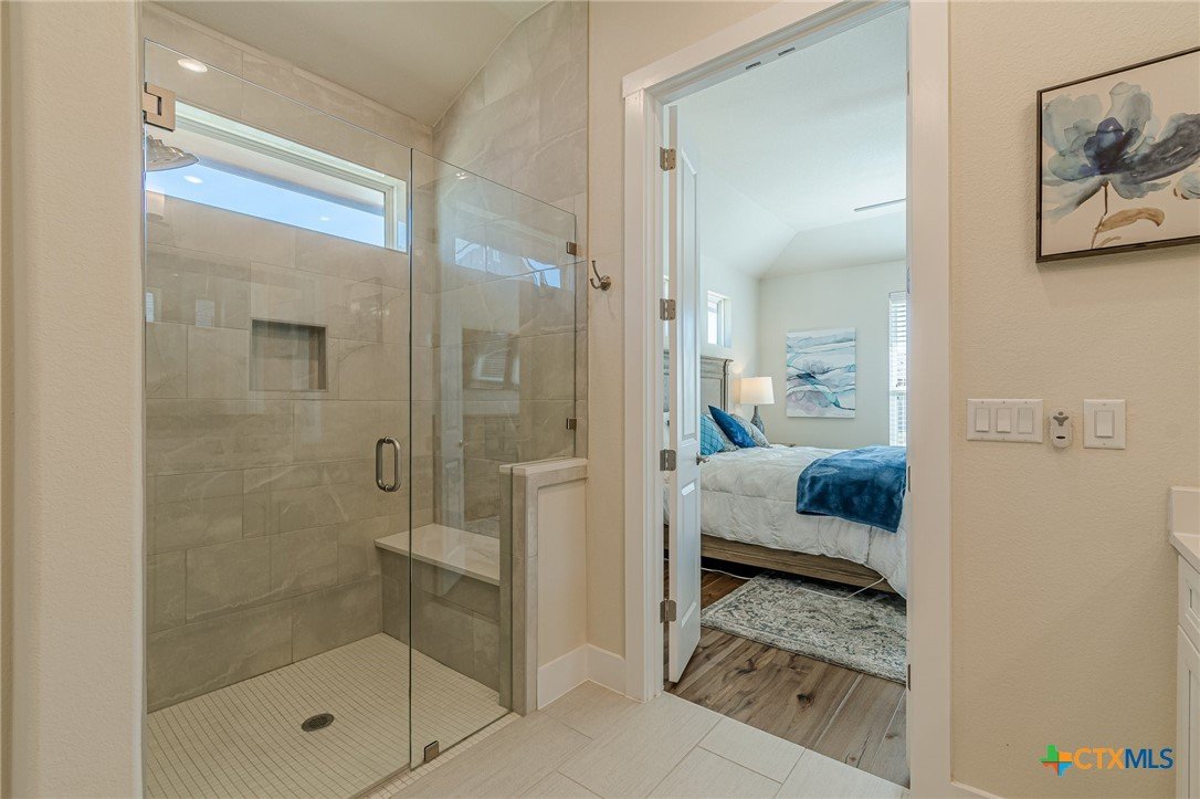 Excellent opportunity to own this spacious and open floorpan in the prestigious Kissing Tree community. Beautiful neutral designer colors throughout including the white cabinets, light granite counters and the beautiful light wood floors throughout - and tile flooring in the wet areas, and upgraded selections with tile to ceiling in bathroom tub/shower spaces. The large open kitchen/living/dining with the study off this main living area makes this home living expansive and impressive! Both the main and guest bedrooms offer generous space to fit a king bed! Live your best life with your extended outdoor living space that you can relax with a coffee, or entertain friends with plenty of room for all. This very active adult community offers scheduled events, clubs & groups, a golf course, fitness center, community restaurant, bocce ball, dart depot, art studio, library and SO much more! Call now to see this beautiful property.