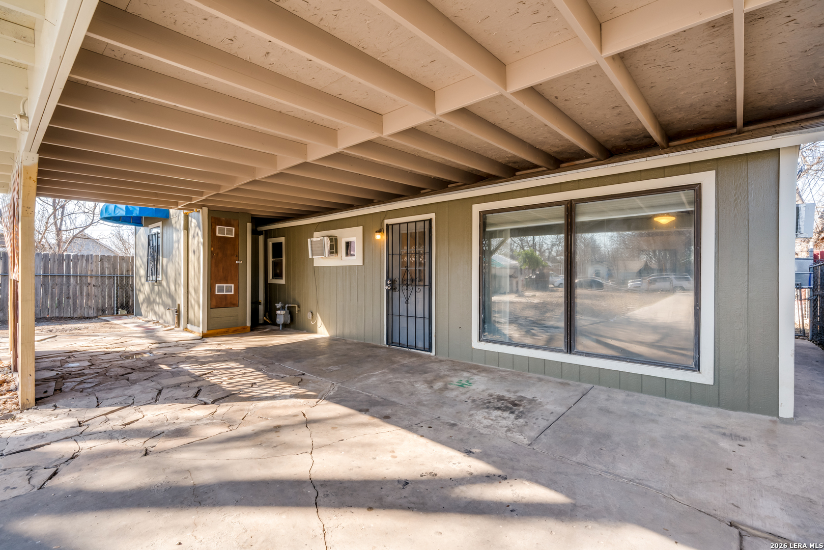 Charming one-story home featuring 2 bedrooms, 1 full bath, a comfortable living area, and a functional kitchen, located in a well-established neighborhood-making this home an easy choice. The open-concept floor plan creates a bright, airy atmosphere and is ideal for an allergy-friendly lifestyle. Ceramic tile flooring flows throughout the entire home for easy care and durability. Enjoy well-sized bedrooms and a welcoming kitchen with ample cabinet space and abundant natural light. Step outside to the oversized covered patio, perfect for relaxing or entertaining family and friends. Ideal for a first-time homebuyer or as an income-producing property, this meticulously maintained home offers a convenient location near St. Mary's University, just minutes from Culebra Road, with easy access to shopping and major highways, including I-10 and Loop 410. Property is being sold As-Is.