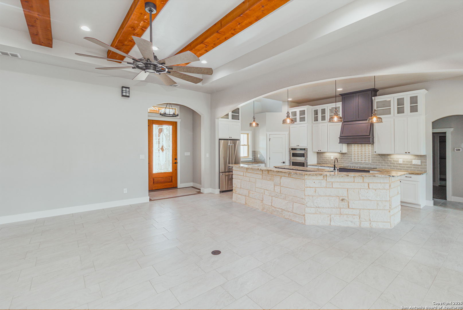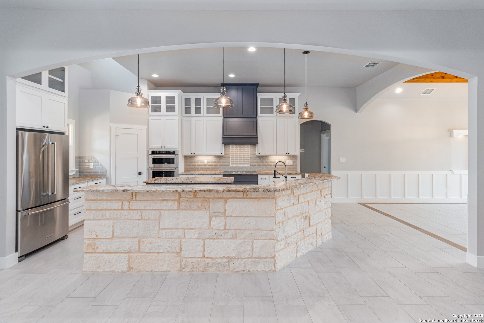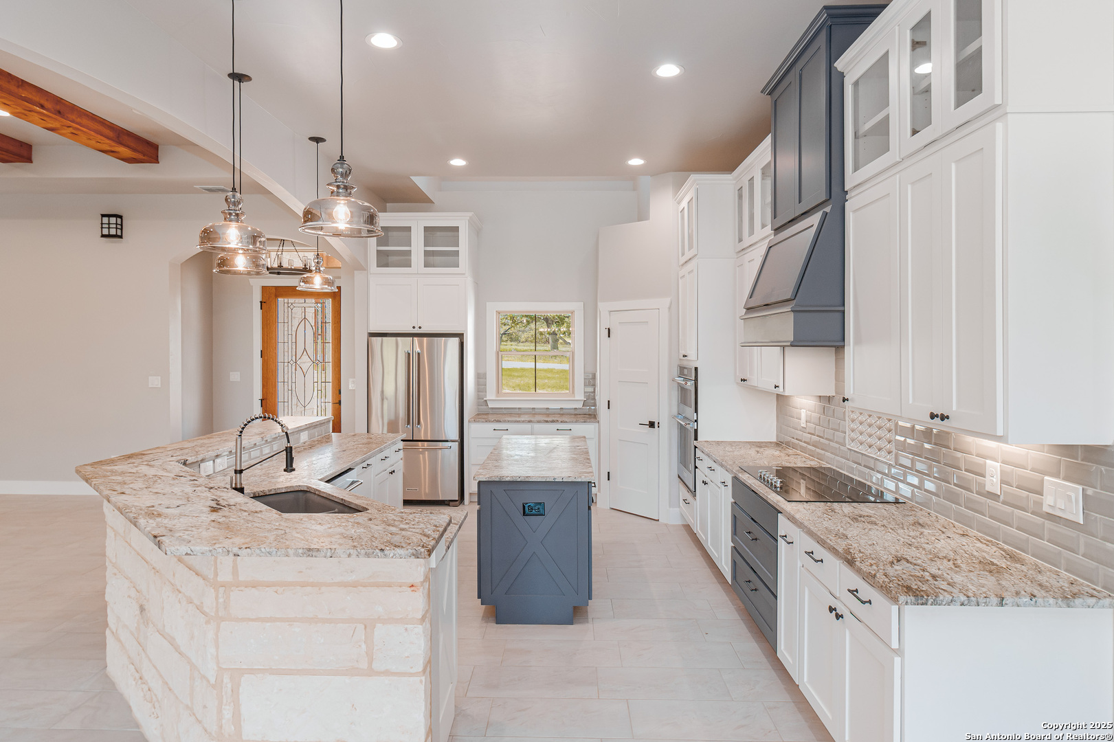Come Discover this Beautifully Crafted New Home on 1 Acre of Wooded Countryside! This exceptional property is located less than 10 minutes to the amenities of La Vernia, 35 minutes to the heart of San Antonio, and 1.5 hour to Austin. Fiber Optic Internet makes remote work a breeze! Inviting Single-Story Residence of Nearly 2,700 Square Feet affords 4 bedrooms, 3 Full Baths+1 Half Bath, Wonderfully Open Great Room / Kitchen / Dining expanse, and Exceptional Outdoor Living on the Spacious Back Patio! Stylish Finishes: Rustic Elegance w/Cool Tones and So Many Upgrades, including Pella Windows, KitchenAid Appliances - Including French-Door Refrigerator, Trane HVAC (2 energy-efficient units). Gorgeous Leathered Granite & Custom two-tone Cabinetry throughout the Island Kitchen, Bathrooms, and Laundry room. All Tile & Wood-Tile floors (no carpet)! 1-2-10 year Bonded Warranty.