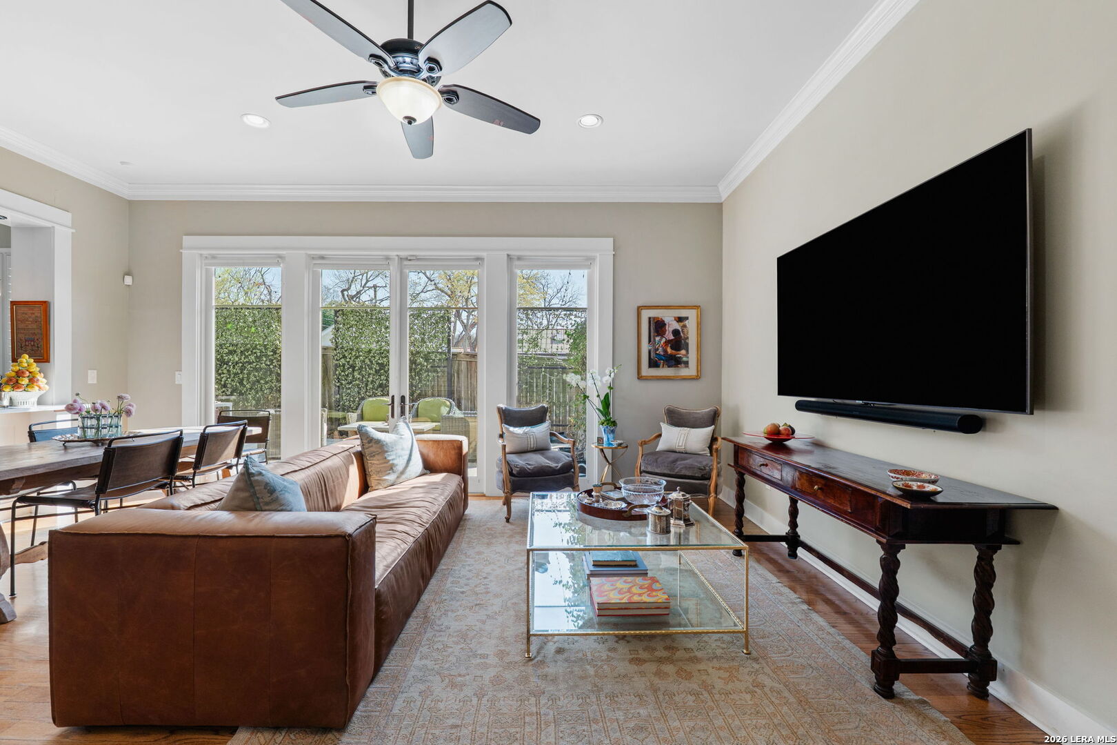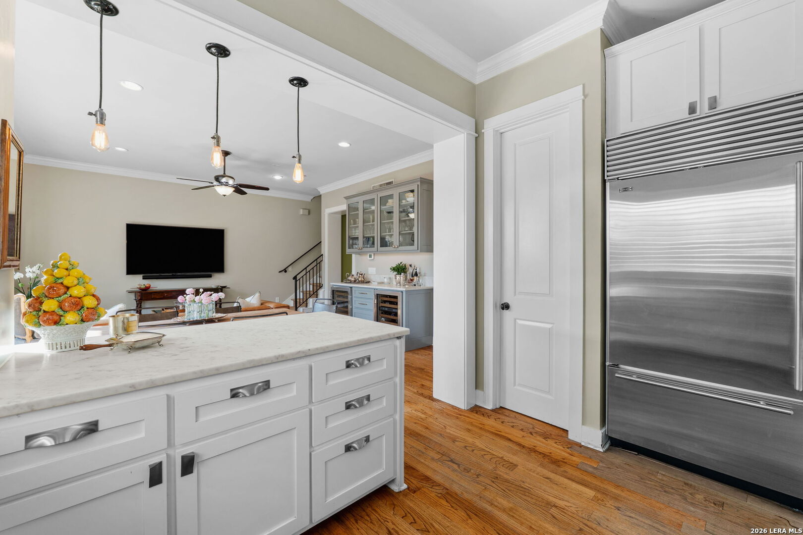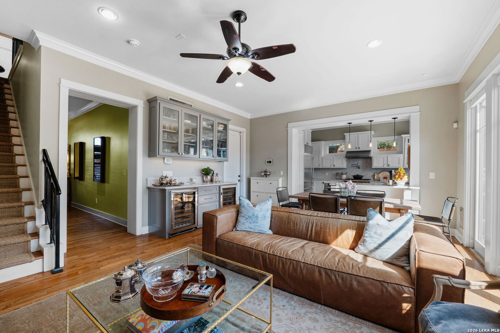 Welcome to elevated urban living in Alamo Heights. This sleek, end-unit townhome combines modern architecture with unbeatable walkability - within close proximity to fabulous local dining, outstanding boutiques and shops, Central Market, The Pearl cultural center, museums, the acclaimed San Antonio Zoo, and the best the Broadway corridor has to offer. Step inside to stunning design elements - high ceilings, rich hardwood floors, abundant natural light, and a striking seagrass staircase runner. The chef's kitchen features marble countertops, stainless-steel appliances with gas cooking, a serving bar with wine refrigerator, and generous storage. Enjoy easy indoor-outdoor living with a spacious private patio and sizable landscaped, fenced yard. Retreat upstairs to a luxurious primary suite with a spa-like bath and a huge walk-in closet. Guests will appreciate generously sized bedrooms with en-suite baths and walk-in closets. The third-floor bedroom suite, currently curated as an upscale man cave, features a wine fridge, refrigerator drawers, and a built-in humidor. A roomy two-car garage and low HOA dues add to the appeal. Fresh, stylish, and ideally located - this is the effortless Alamo Heights lifestyle you've been searching for.