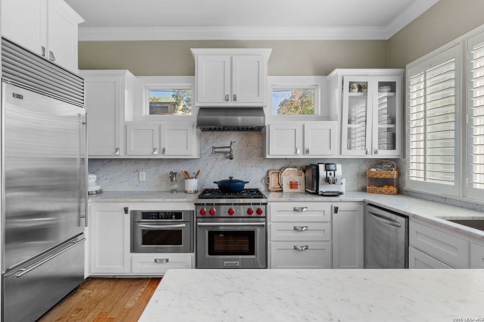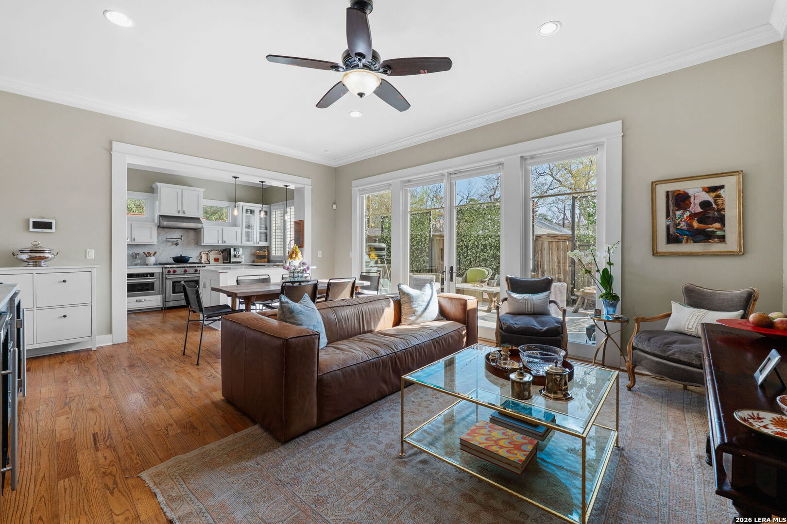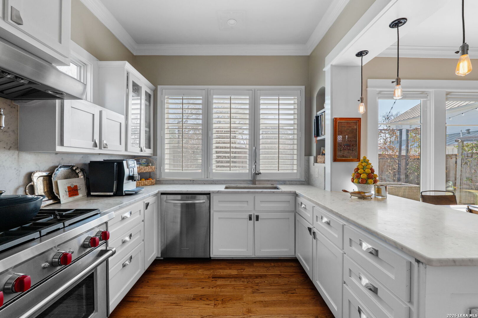 Welcome to elevated urban living in Alamo Heights. This sleek, end-unit townhome combines modern architecture with unbeatable walkability - within close proximity to fabulous local dining, outstanding boutiques and shops, Central Market, The Pearl cultural center, museums, the acclaimed San Antonio Zoo, and the best the Broadway corridor has to offer. Step inside to stunning design elements - high ceilings, rich hardwood floors, abundant natural light, and a striking seagrass staircase runner. The chef's kitchen features marble countertops, stainless-steel appliances with gas cooking, a serving bar with wine refrigerator, and generous storage. Enjoy easy indoor-outdoor living with a spacious private patio and sizable landscaped, fenced yard. Retreat upstairs to a luxurious primary suite with a spa-like bath and a huge walk-in closet. Guests will appreciate generously sized bedrooms with en-suite baths and walk-in closets. The third-floor bedroom suite, currently curated as an upscale man cave, features a wine fridge, refrigerator drawers, and a built-in humidor. A roomy two-car garage and low HOA dues add to the appeal. Fresh, stylish, and ideally located - this is the effortless Alamo Heights lifestyle you've been searching for.