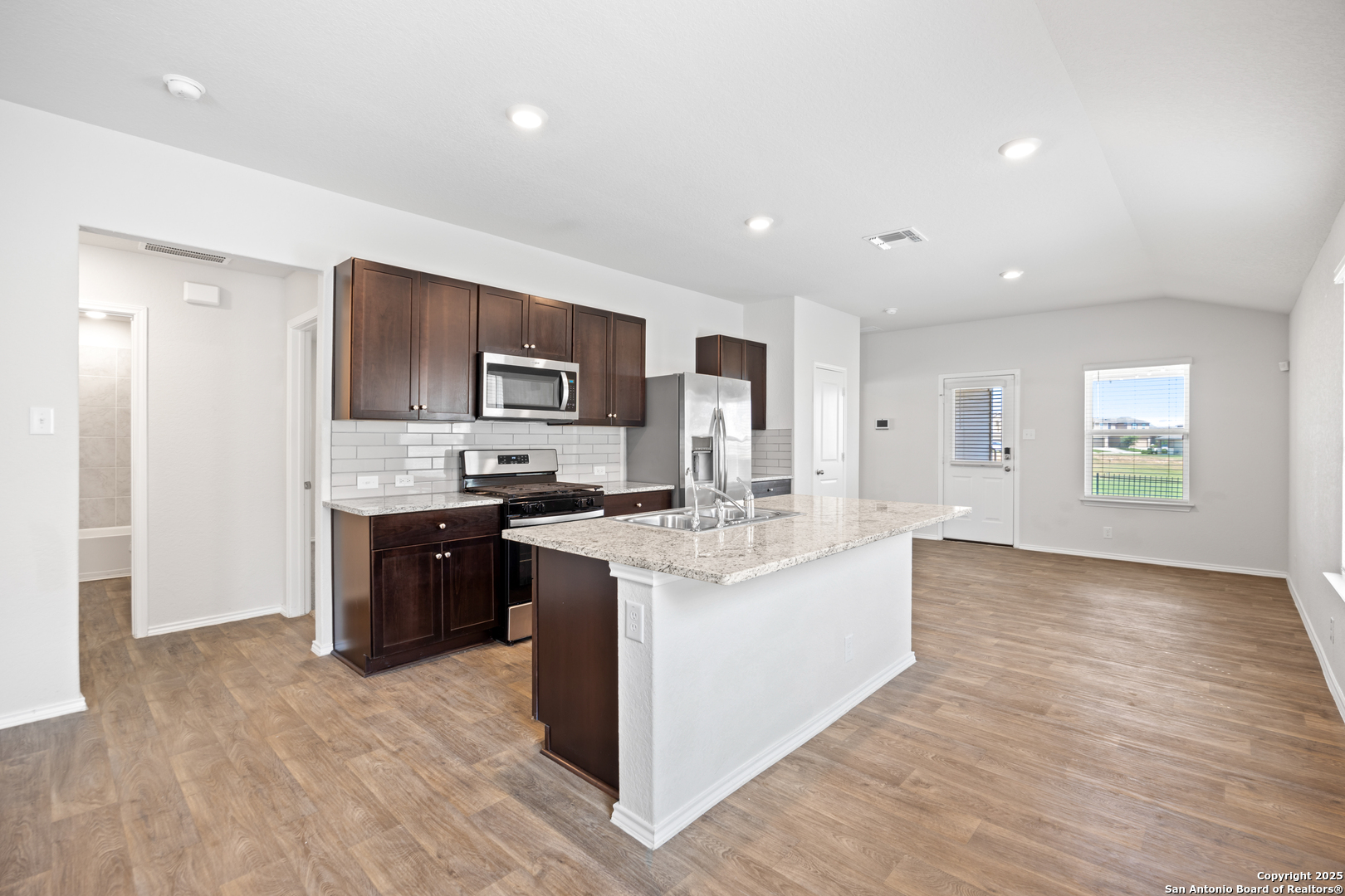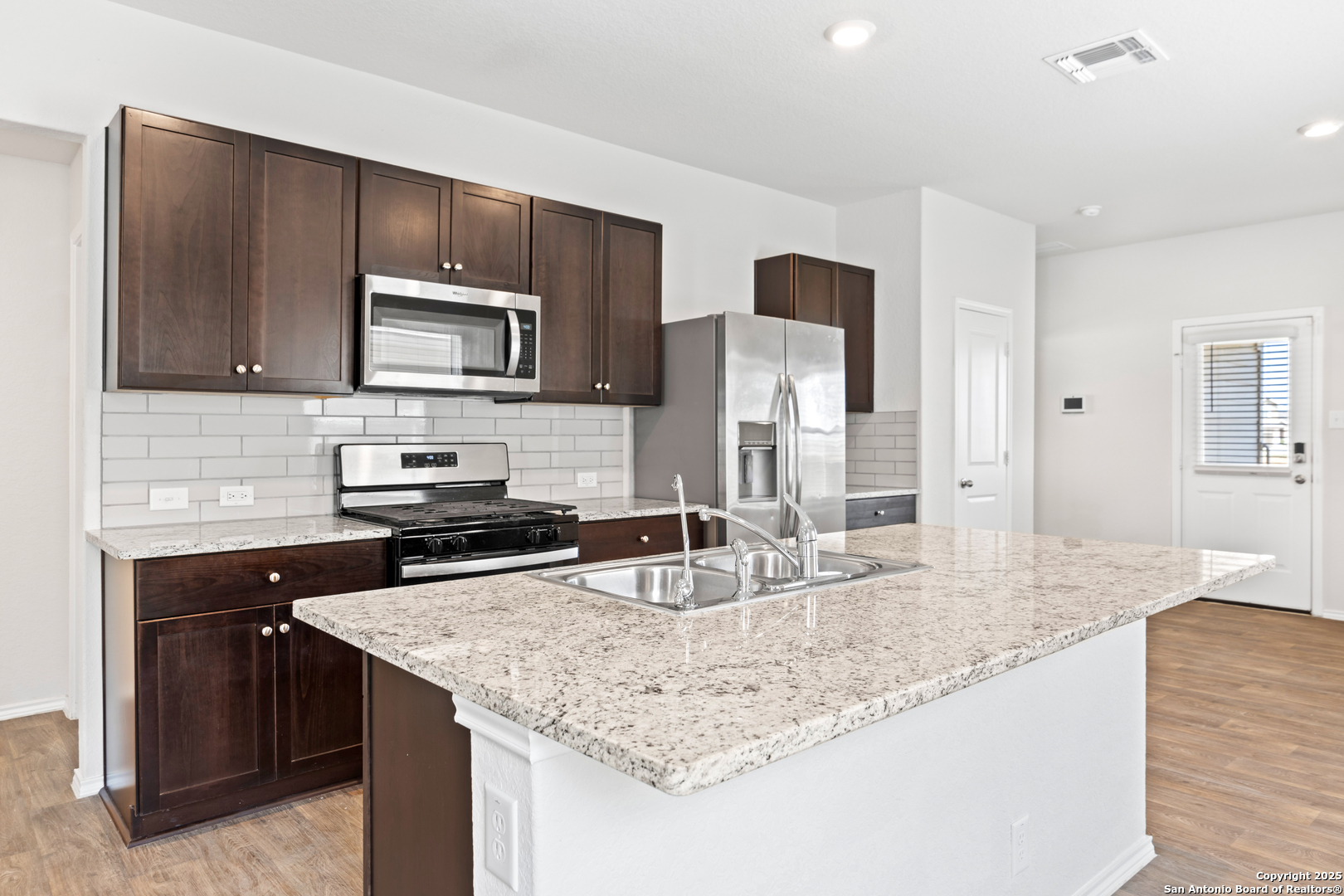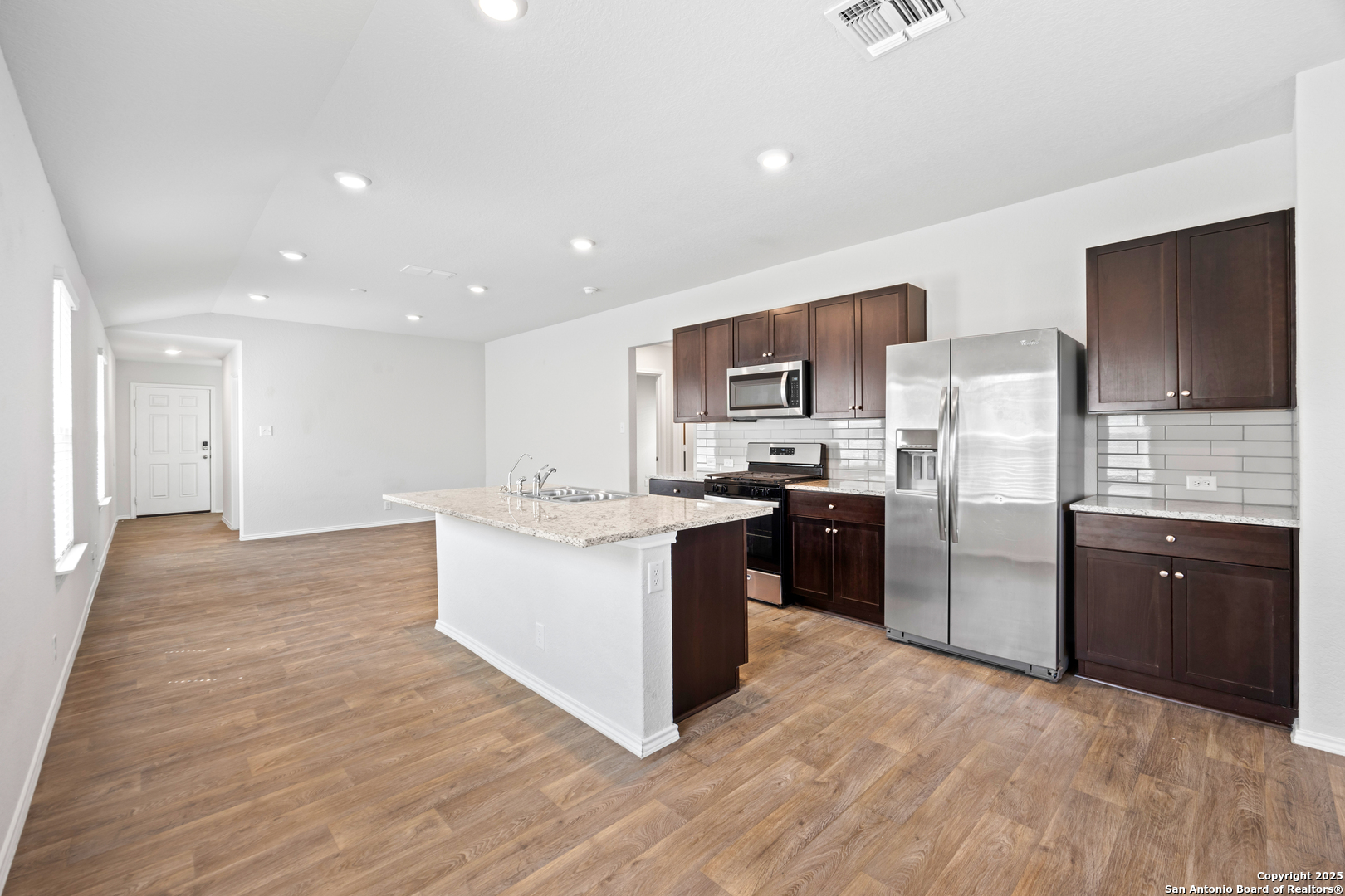 Live on the Green at Riverbend Golf Course in Floresville! Beautiful 3-bedroom, 2-bath home located on the 4th hole of the sought-after Riverbend Golf Course in Floresville, perfect for golf lovers or anyone who enjoys peaceful, scenic living. This well-maintained home features granite countertops, a spacious kitchen island, and durable laminate flooring throughout the main areas, with plush carpet in the bedrooms. Includes a refrigerator and washer/dryer connections for added convenience. With an open layout and relaxing golf course views, this home offers the perfect blend of comfort and lifestyle. Don't miss your opportunity to call Riverbend home!