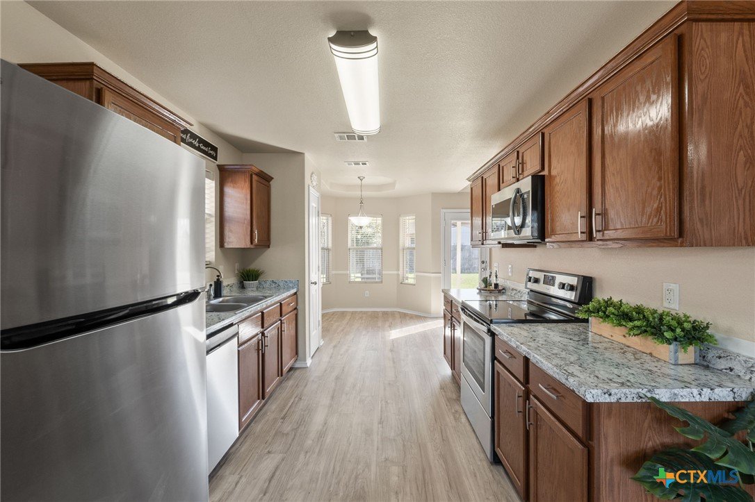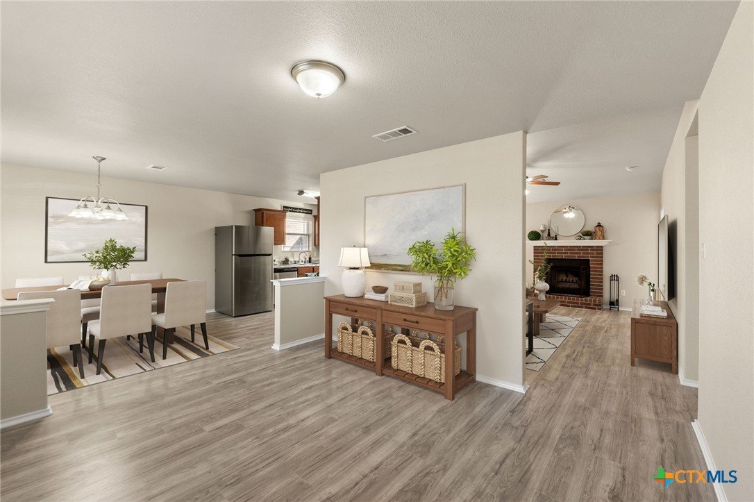 Welcome home to 137 Lignite Dr. a beautifully upgraded and well maintained 5-bedroom, 2-bath one story home offering 1866 sq. ft. of comfortable living. This spacious all 4 sides masonry home is better than brand new and perfectly blends style, comfort, and functionality—ideal for a growing family or any stage of life. Step inside to a bright and inviting floor plan with multiple dining and living areas, perfect for guests or even a home office. Enjoy the piece of mind of a brand new HVAC system and new kitchen appliances. Enjoy the modern feel of the newly updated vinyl plank flooring and fresh paint throughout, adding a fresh and stylish touch to every room. The kitchen features plenty of light, stainless steel appliances and a seamless flow into the dining and living areas, making entertaining effortless. Spend your evenings cozied up next the beautiful living room fireplace or step outside and unwind in your private backyard oasis featuring a nice covered patio and generous back yard creating the perfect setting for gatherings, cookouts, or quiet evenings under the Texas sky. Located in the growing community of Jarrell, this home offers easy access to Austin, Georgetown, Temple, and Fort Hood/Fort Cavazos, making it a fantastic choice for commuters or anyone seeking convenience with a peaceful suburban lifestyle. This property is truly move in ready and has it all—space, upgrades, charm, and location. Schedule a showing today and don't miss the opportunity to make 137 Lignite Dr. your new home!