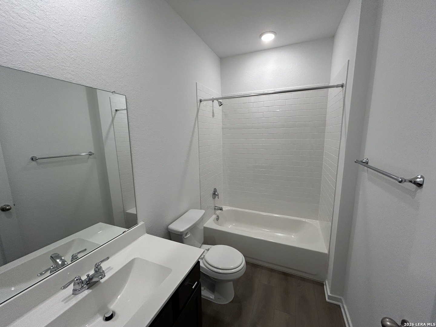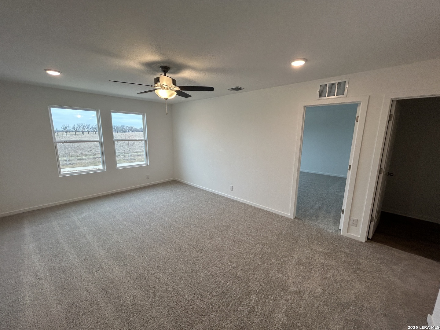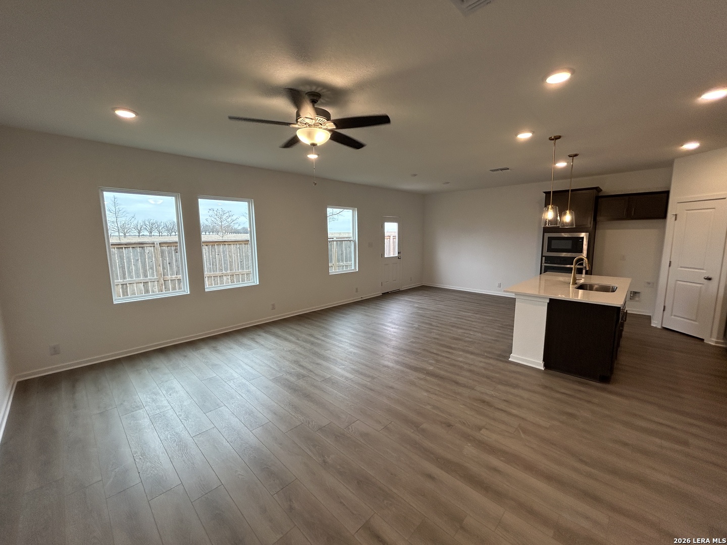 Charming two story home featuring a gourmet kitchen with a center island that opens into the spacious family room. Large windows bring in natural light and offer peaceful views of the backyard, creating an inviting space for everyday living. Downstairs includes a full secondary bedroom with its own bathroom, ideal for guests or multigenerational needs. Upstairs, the private primary suite offers an oversized shower, double vanities, and a walk in closet. A loft and two secondary bedrooms with a shared bath provide additional space to relax, play, or work. Step outside to a covered patio perfect for outdoor dining or simply enjoying the breeze. The community features an impressive amenity center complete with a swimming pool, lazy river, and playground, offering a fun and vibrant lifestyle for all. This home is in Hennersby Hollow, with easy access to Hwy 90, Jungman Rd., major employers, SeaWorld, shopping, and top Medina Valley ISD schools. Community amenities include a pool, lazy river, playground, and activity lawn.