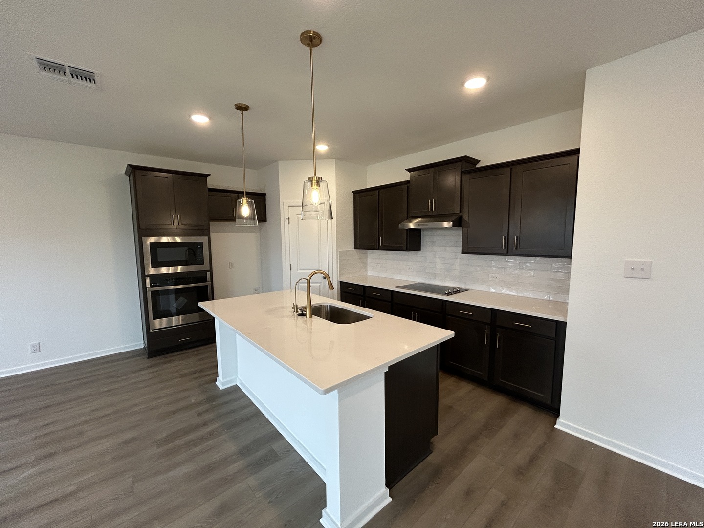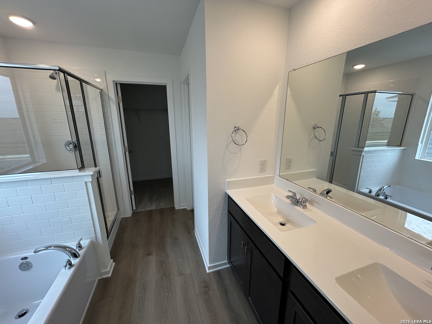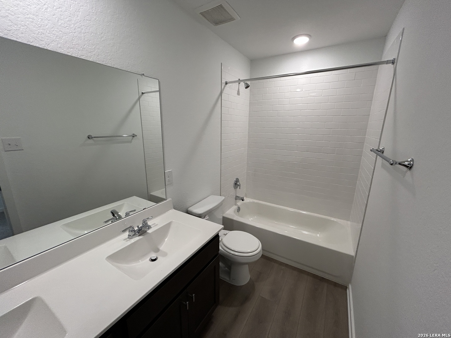Charming two story home featuring a gourmet kitchen with a center island that opens into the spacious family room. Large windows bring in natural light and offer peaceful views of the backyard, creating an inviting space for everyday living. Downstairs includes a full secondary bedroom with its own bathroom, ideal for guests or multigenerational needs. Upstairs, the private primary suite offers an oversized shower, double vanities, and a walk in closet. A loft and two secondary bedrooms with a shared bath provide additional space to relax, play, or work. Step outside to a covered patio perfect for outdoor dining or simply enjoying the breeze. The community features an impressive amenity center complete with a swimming pool, lazy river, and playground, offering a fun and vibrant lifestyle for all. This home is in Hennersby Hollow, with easy access to Hwy 90, Jungman Rd., major employers, SeaWorld, shopping, and top Medina Valley ISD schools. Community amenities include a pool, lazy river, playground, and activity lawn.