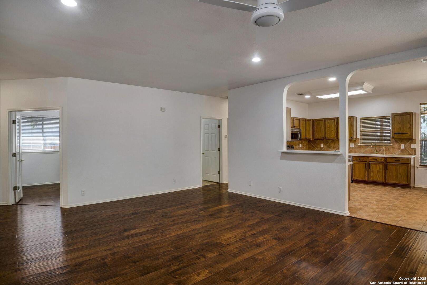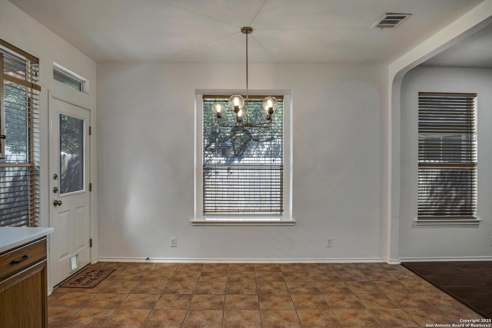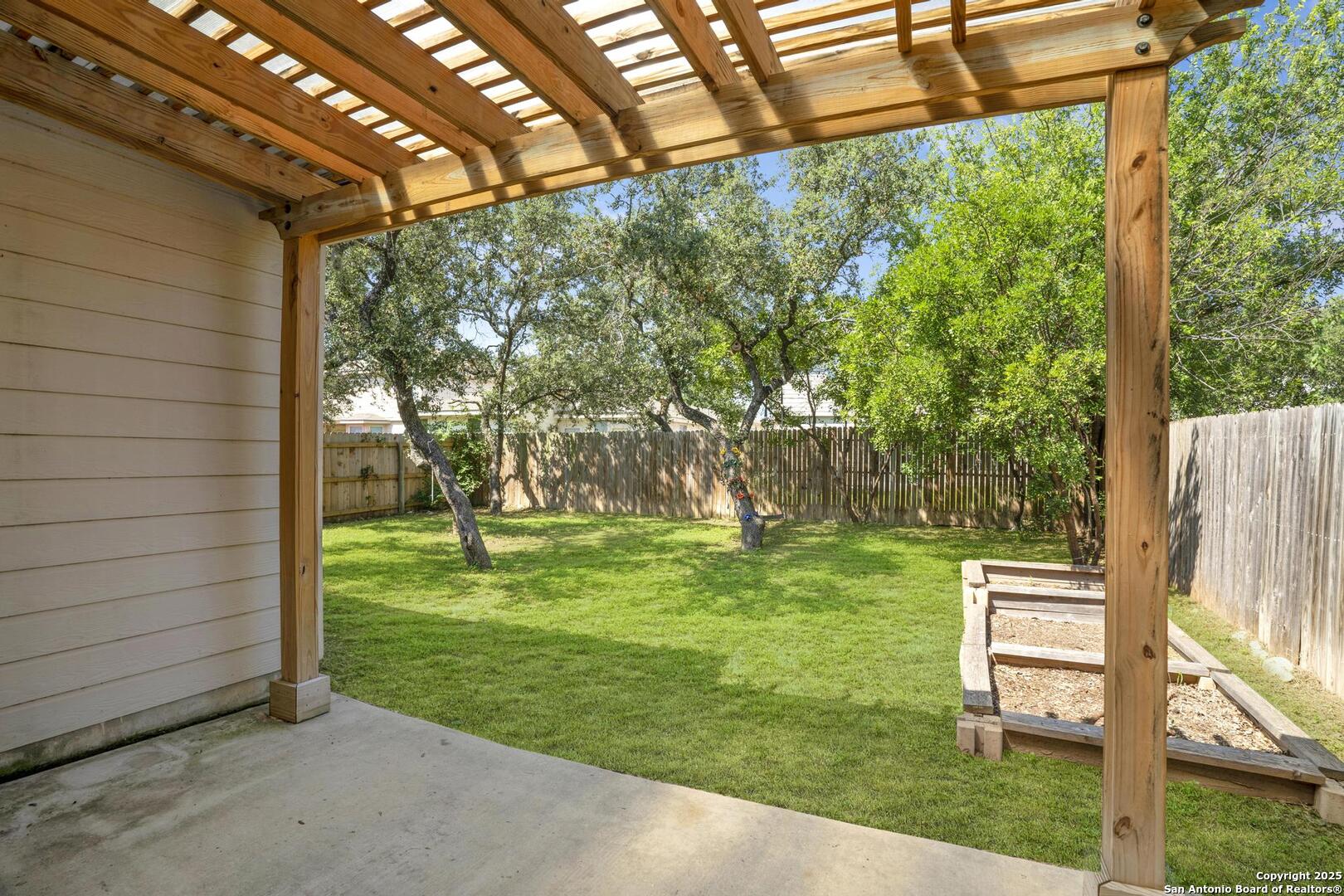 This inviting 3-bedroom, 2-bath home is located in The Arbor at Sonoma Ranch and offers a practical layout with comfort in mind. Close to UTSA, USAA, and La Caterra Mall. Walking distance to Beard Elementary School. No carpets. New water softener. The open floor plan features high ceilings and neutral tones throughout, creating a sense of space and flexibility for a variety of decor styles. The living room is generously sized and flows into the dining area, where bay windows bring in natural light and provide access to the backyard. Good-sized kitchen with a solid surface countertop.