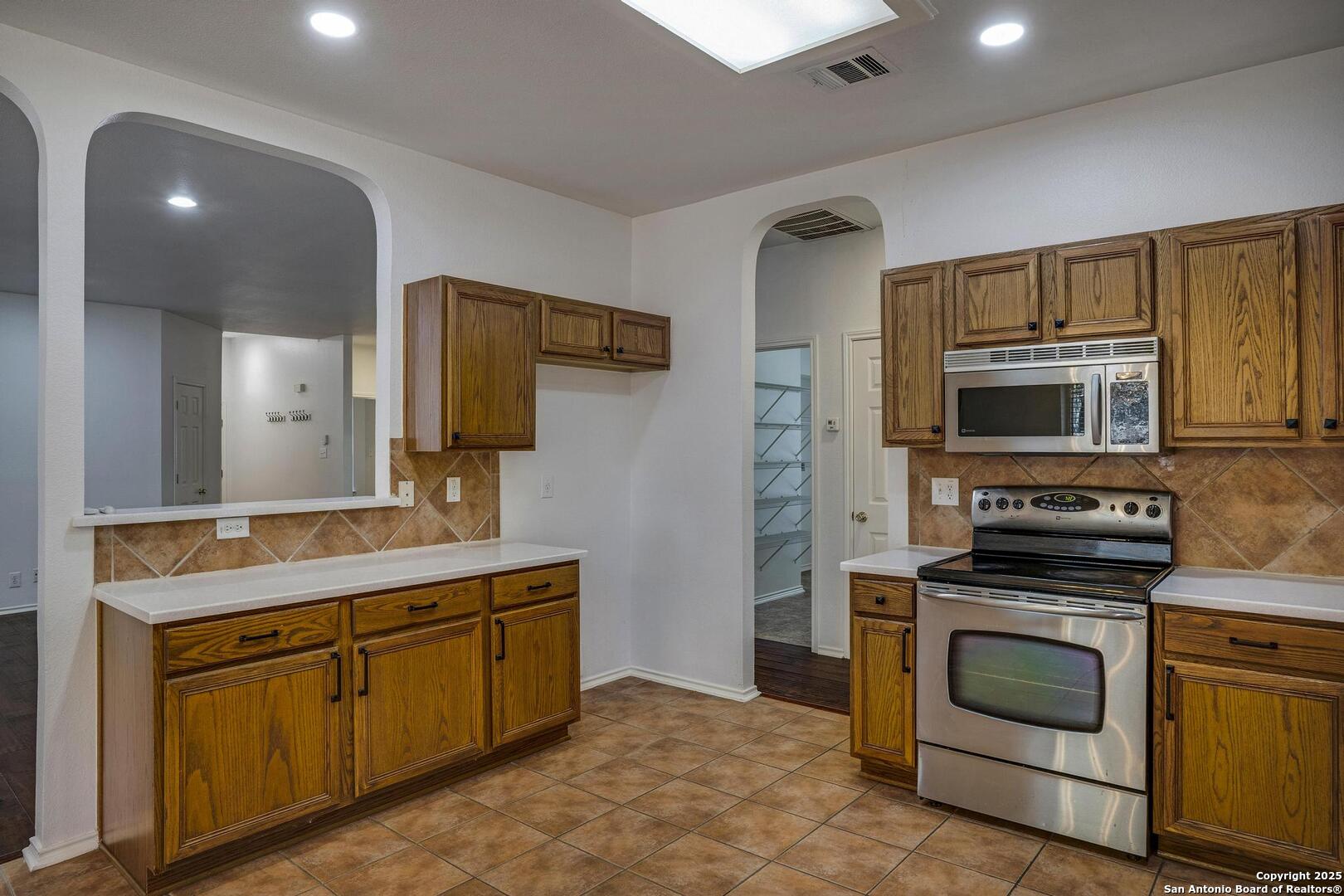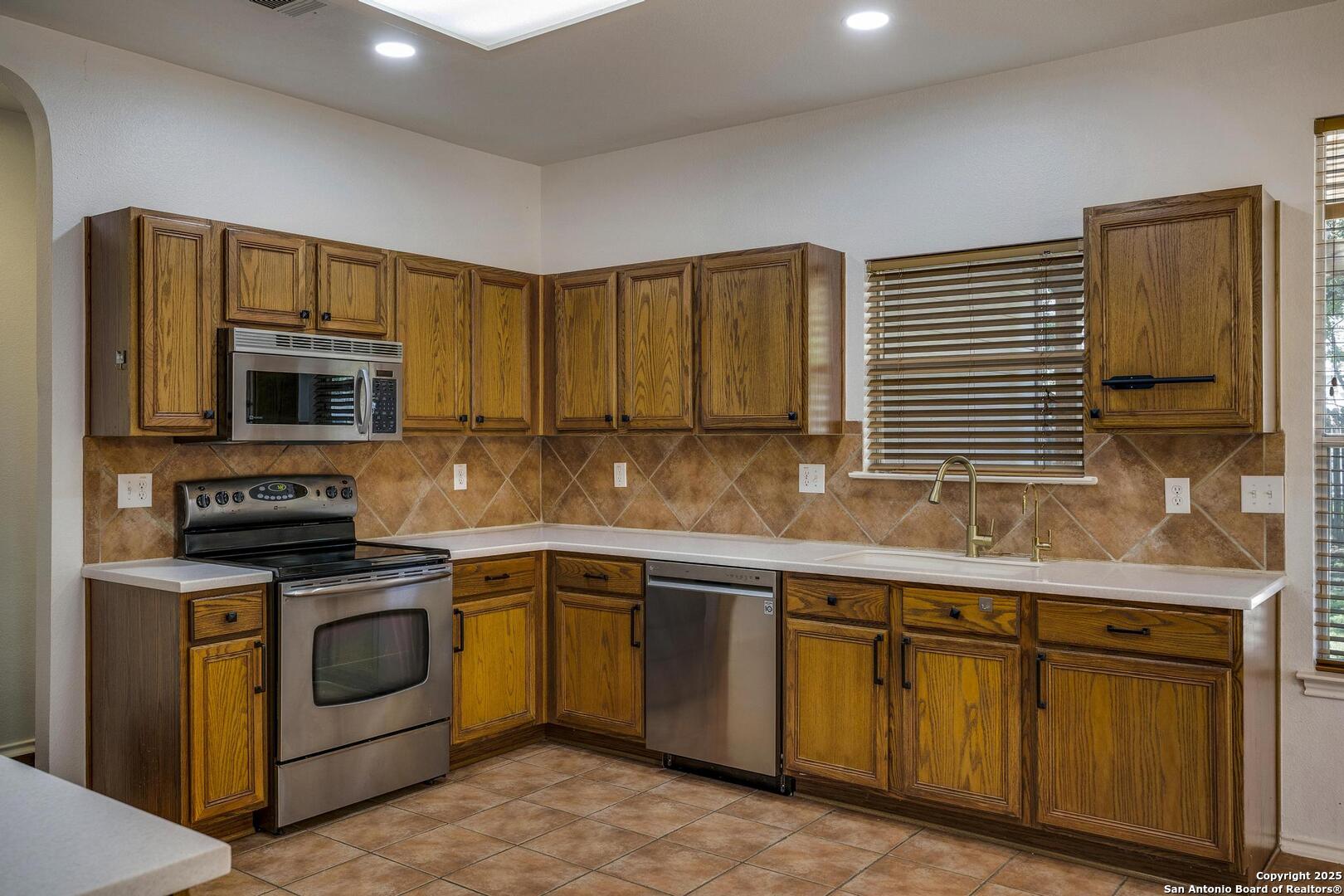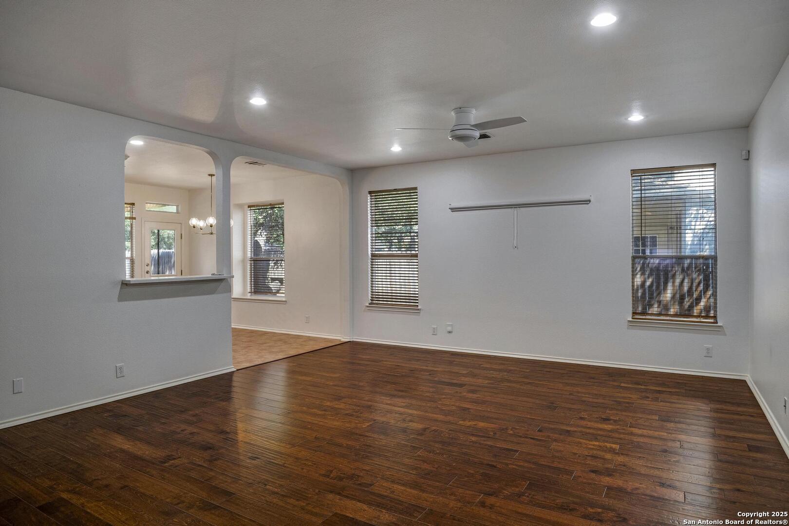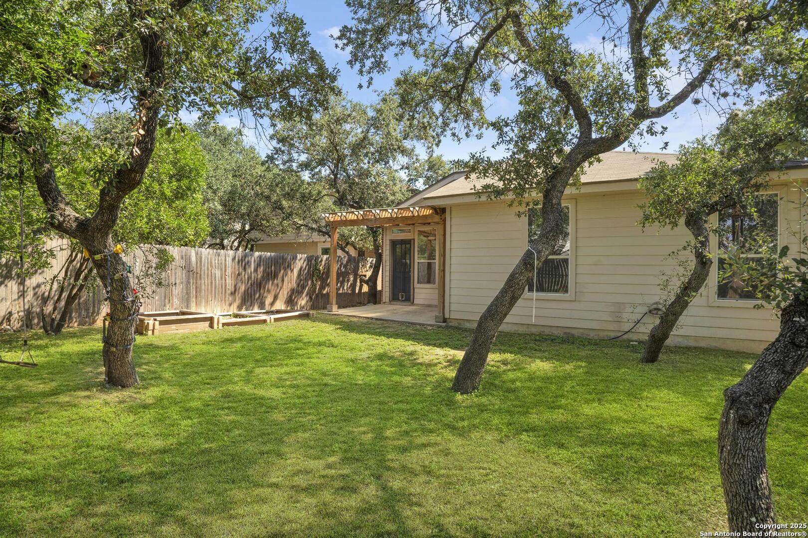 This inviting 3-bedroom, 2-bath home is located in The Arbor at Sonoma Ranch and offers a practical layout with comfort in mind. Close to UTSA, USAA, and La Caterra Mall. Walking distance to Beard Elementary School. No carpets. New water softener. The open floor plan features high ceilings and neutral tones throughout, creating a sense of space and flexibility for a variety of decor styles. The living room is generously sized and flows into the dining area, where bay windows bring in natural light and provide access to the backyard. Good-sized kitchen with a solid surface countertop.