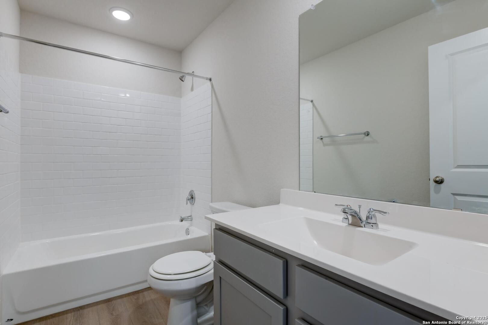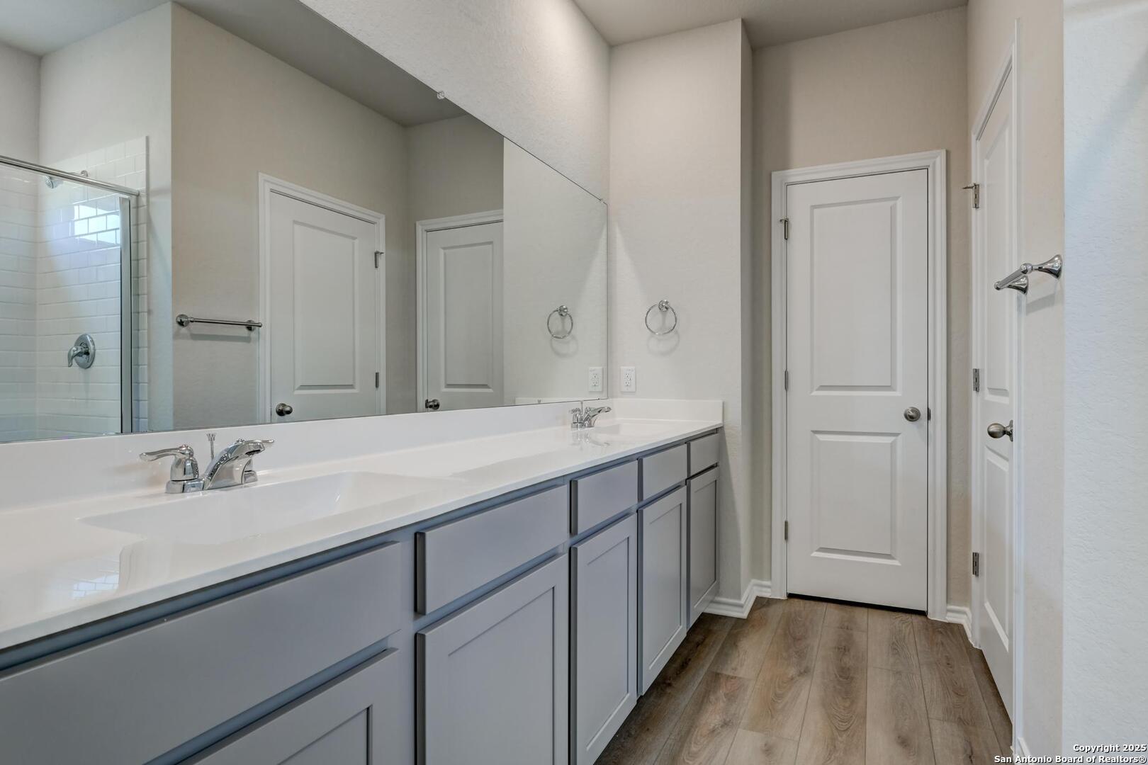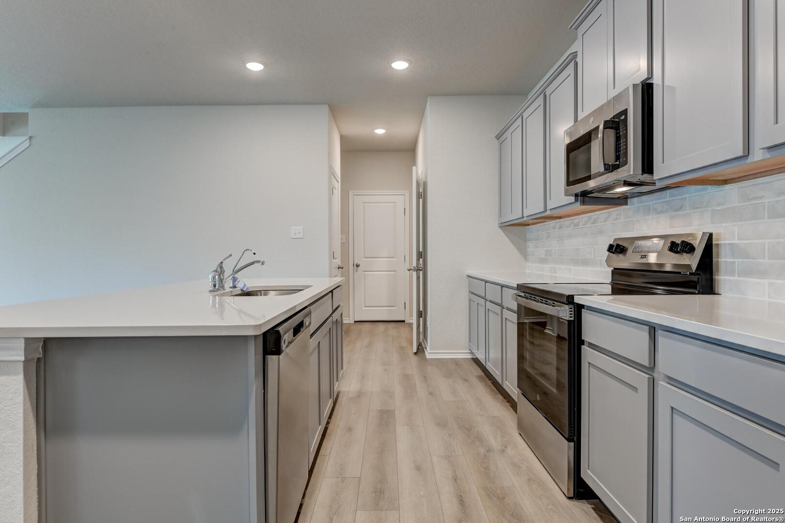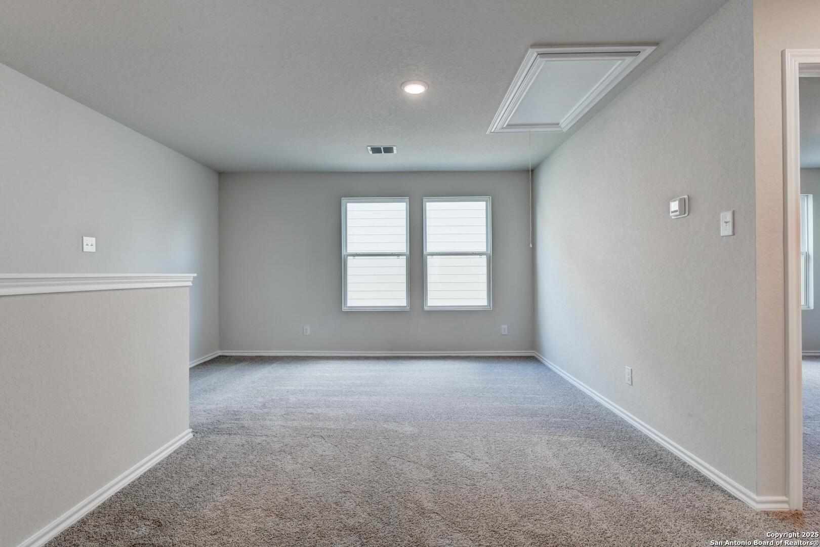 Step into this inviting two-story home, where thoughtful design brings together comfort, style, and everyday functionality. From the moment you enter, the open flow of the floor plan creates a sense of warmth and connection, making it a perfect fit for both quiet nights at home and lively gatherings with friends. At the heart of the home, the gourmet kitchen shines as both a practical workspace and a social hub. A large center island provides plenty of room for meal prep, casual dining, or simply gathering around with loved ones. The kitchen opens seamlessly into the spacious family room, where oversized windows frame peaceful backyard views and invite natural light to pour in. This airy, light-filled space is equally suited for cozy evenings or weekend entertaining. The primary suite is tucked away to offer privacy and relaxation. A spa-like bathroom features a deep soaking tub, oversized shower, dual vanities, and a generous walk-in closet-creating a retreat designed for both luxury and everyday ease. Upstairs, versatility takes center stage. Two secondary bedrooms offer comfort and convenience, while a loft and private study provide flexible spaces to meet your lifestyle needs. Whether you envision a quiet home office, a creative studio, or a dedicated playroom, the possibilities are endless. A covered patio at the back of the home extends the living space outdoors, perfect for enjoying morning coffee, summer barbecues, or evenings under the stars. Designed to adapt and grow with you, this home offers a balance of style, functionality, and comfort that fits every chapter of life. This home is part of our Milan Collection-effortlessly chic with a modern European edge. Cool grays, smooth ceramics, and bold decorative accents create a gallery-like feel for artful living. It's sleek yet warm, refined yet welcoming, and always ready for quiet evenings or vibrant gatherings. Milan is where contemporary design meets everyday comfort in perfect harmony. This home is located in Hennersby Hollow, where convenience and family-friendly living come together. With Hwy. 90 and Jungman Rd. nearby, major employers like Lackland Air Force Base, Toyota, and Westover Hills Medical Center are within easy reach, along with SeaWorld, Alamo Ranch shopping, and downtown San Antonio. Community amenities include a resort-style pool with beach entry and lazy river, a playground, food truck area, and activity lawn for neighborhood events. Families also enjoy access to acclaimed Medina Valley ISD schools. At Hennersby Hollow, every day feels full of possibility.