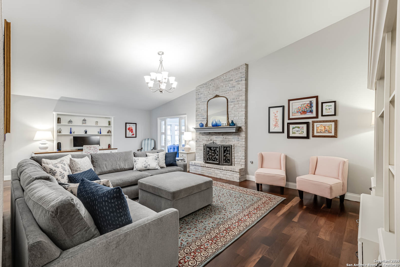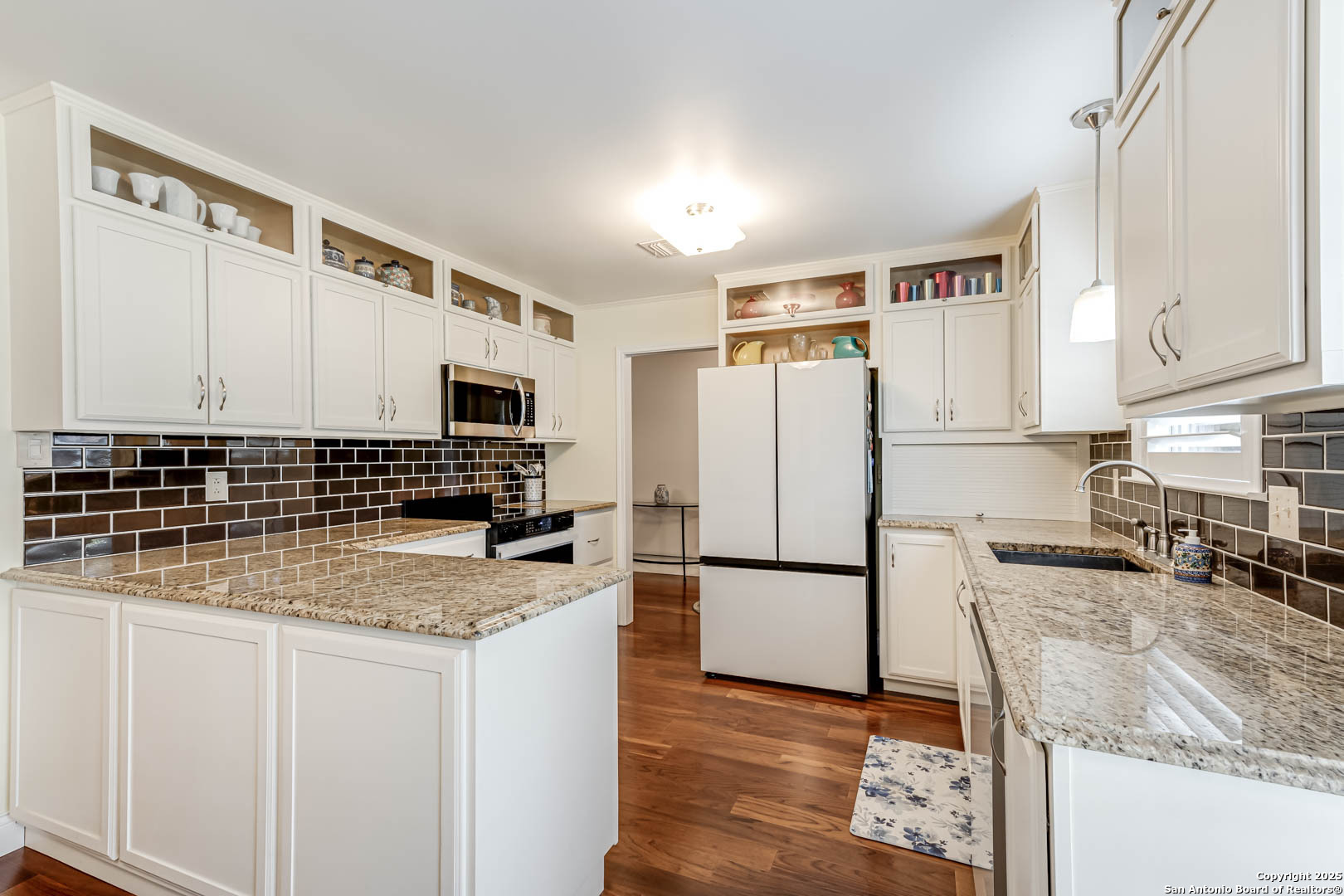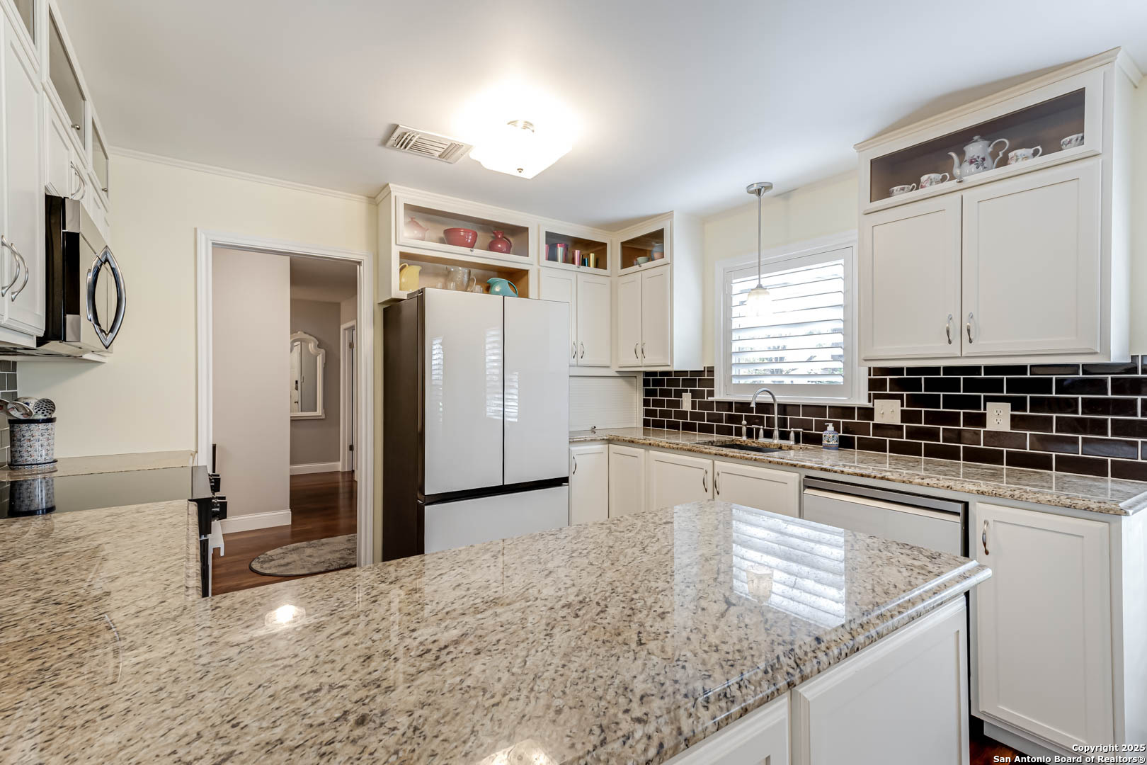 OPEN HOUSE SATURDAY, JANUARY 31st, 1:00 - 4:00 and SUNDAY, FEBRUARY 1st, 1:00-3:00. Wow! Meticulously maintained single story home in desirable Castle Hills Forest! Living room has high ceilings and fireplace. Kitchen has granite countertops, tile backsplash, custom cabinets, and soft close drawers. Stove and dishwasher replaced in 2024. Primary bedroom has soft touch motorized window shades. Primary bathroom renovated with cabinets in approximately 2015, 2022 - tile floors, new shower with body spray jets and tile walls , and heated towel bar. Hall bathroom renovated in 2024. Family room/sun room added in 2020 with mini split AC unit and motorized outdoor window shades. All windows replaced! Plantation shutters 2021. Ceiling fans 2024. Water heater 2021. Water softener 2022. Roof 2017. Carport added 2022. Inviting xeriscape backyard. 2002 sq ft per appraiser, 1696 sq feet per BCAD (prior to sunroom addition). New survey will be needed, existing survey does not include the addition. Murphy Bed does not stay. Washer and Dryer can stay. Refrigerator is negotiable. Neighborhood access to Salado Creek Greenway! These biking/hiking trails take you to nearby Hardberger Park.