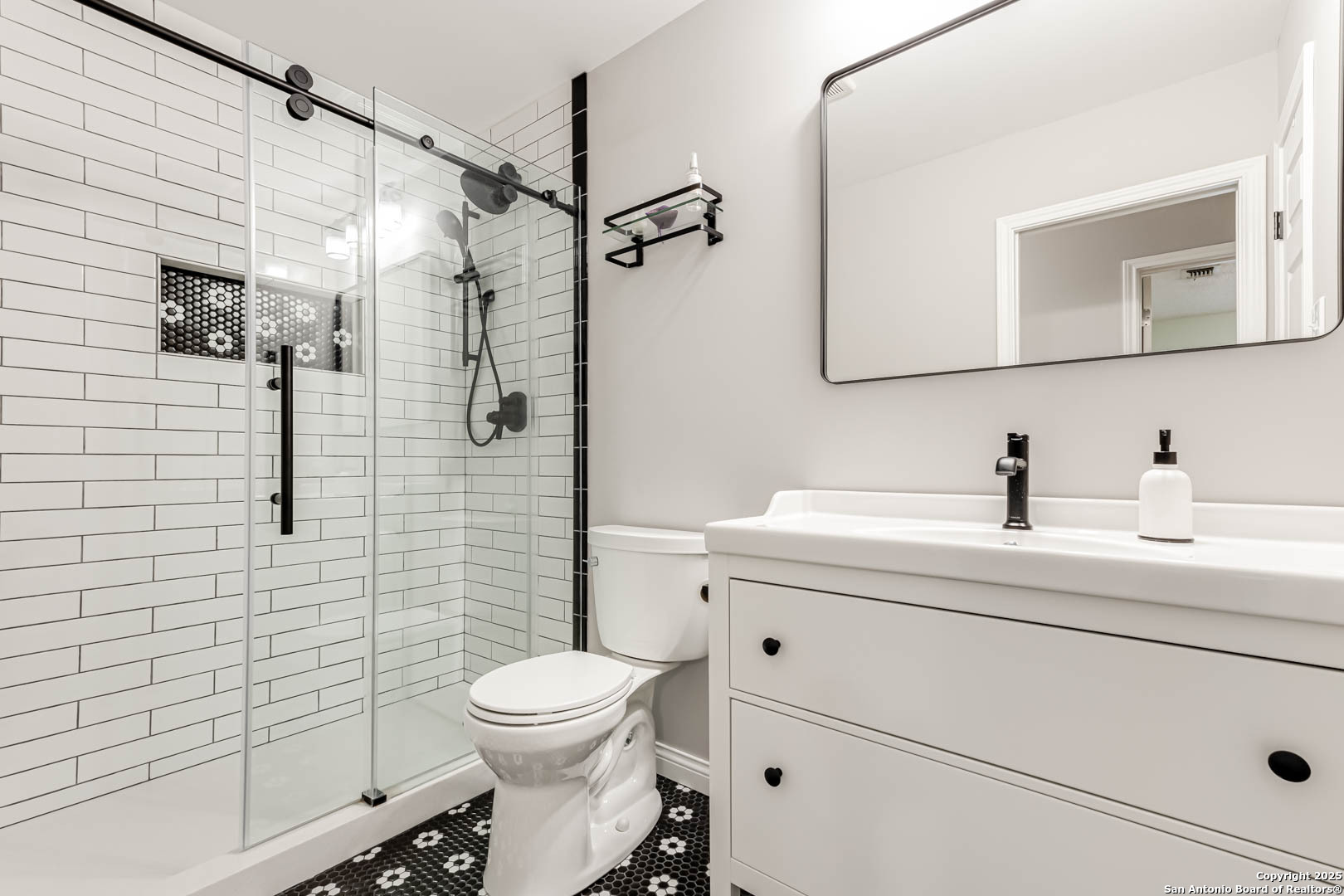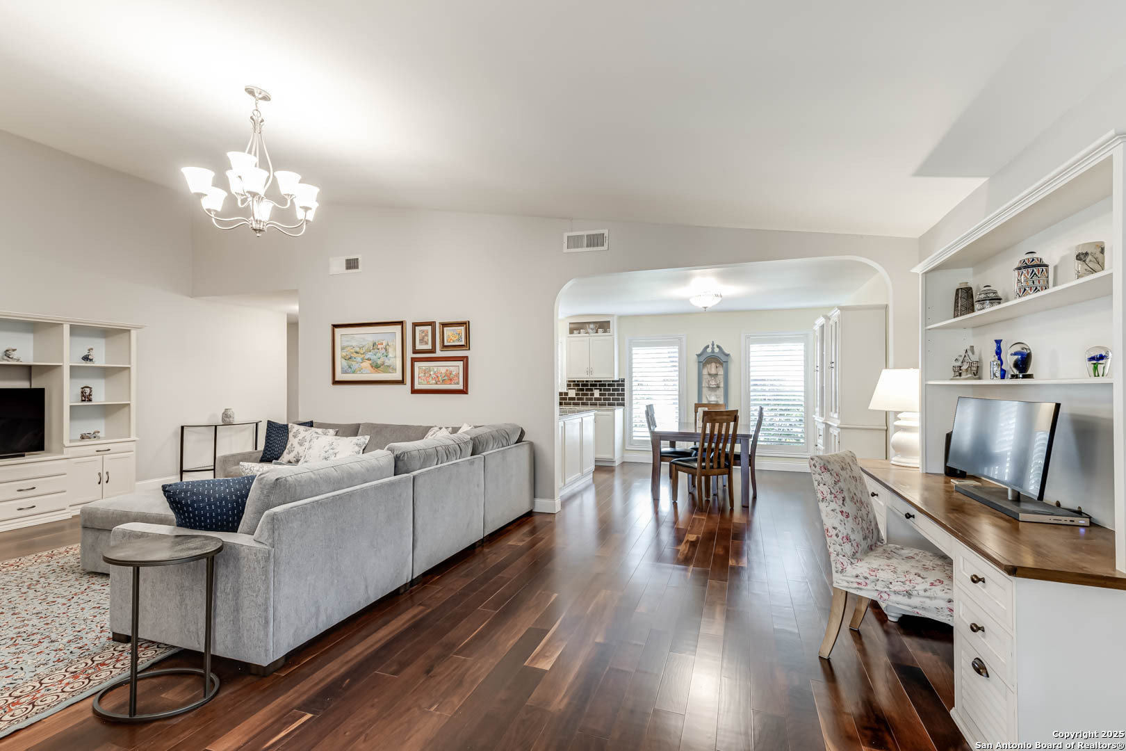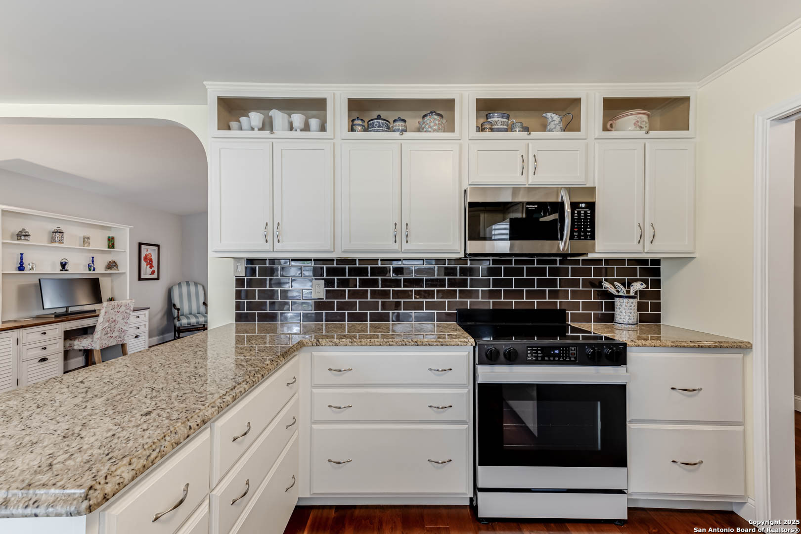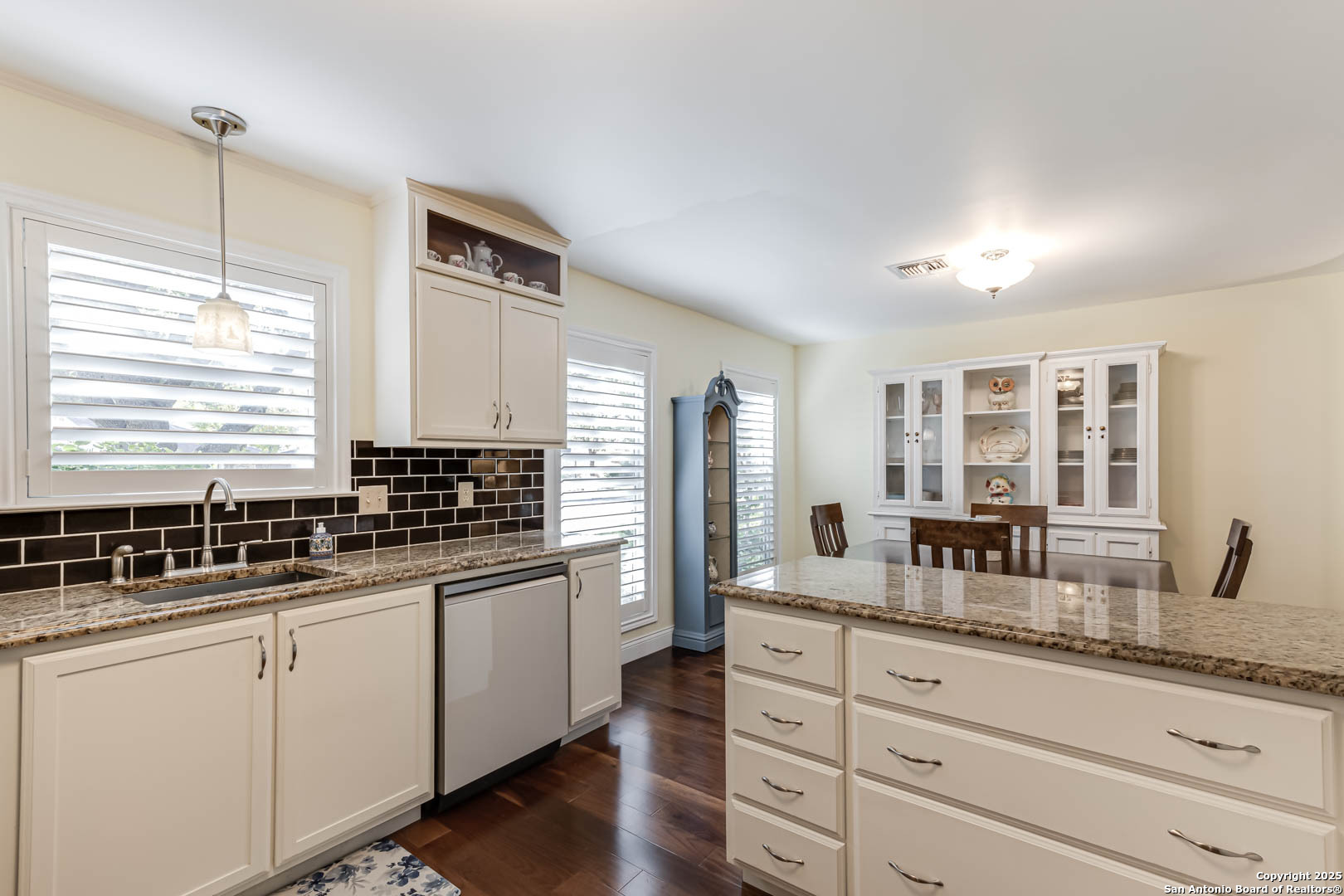 OPEN HOUSE SATURDAY, JANUARY 31st, 1:00 - 4:00 and SUNDAY, FEBRUARY 1st, 1:00-3:00. Wow! Meticulously maintained single story home in desirable Castle Hills Forest! Living room has high ceilings and fireplace. Kitchen has granite countertops, tile backsplash, custom cabinets, and soft close drawers. Stove and dishwasher replaced in 2024. Primary bedroom has soft touch motorized window shades. Primary bathroom renovated with cabinets in approximately 2015, 2022 - tile floors, new shower with body spray jets and tile walls , and heated towel bar. Hall bathroom renovated in 2024. Family room/sun room added in 2020 with mini split AC unit and motorized outdoor window shades. All windows replaced! Plantation shutters 2021. Ceiling fans 2024. Water heater 2021. Water softener 2022. Roof 2017. Carport added 2022. Inviting xeriscape backyard. 2002 sq ft per appraiser, 1696 sq feet per BCAD (prior to sunroom addition). New survey will be needed, existing survey does not include the addition. Murphy Bed does not stay. Washer and Dryer can stay. Refrigerator is negotiable. Neighborhood access to Salado Creek Greenway! These biking/hiking trails take you to nearby Hardberger Park.