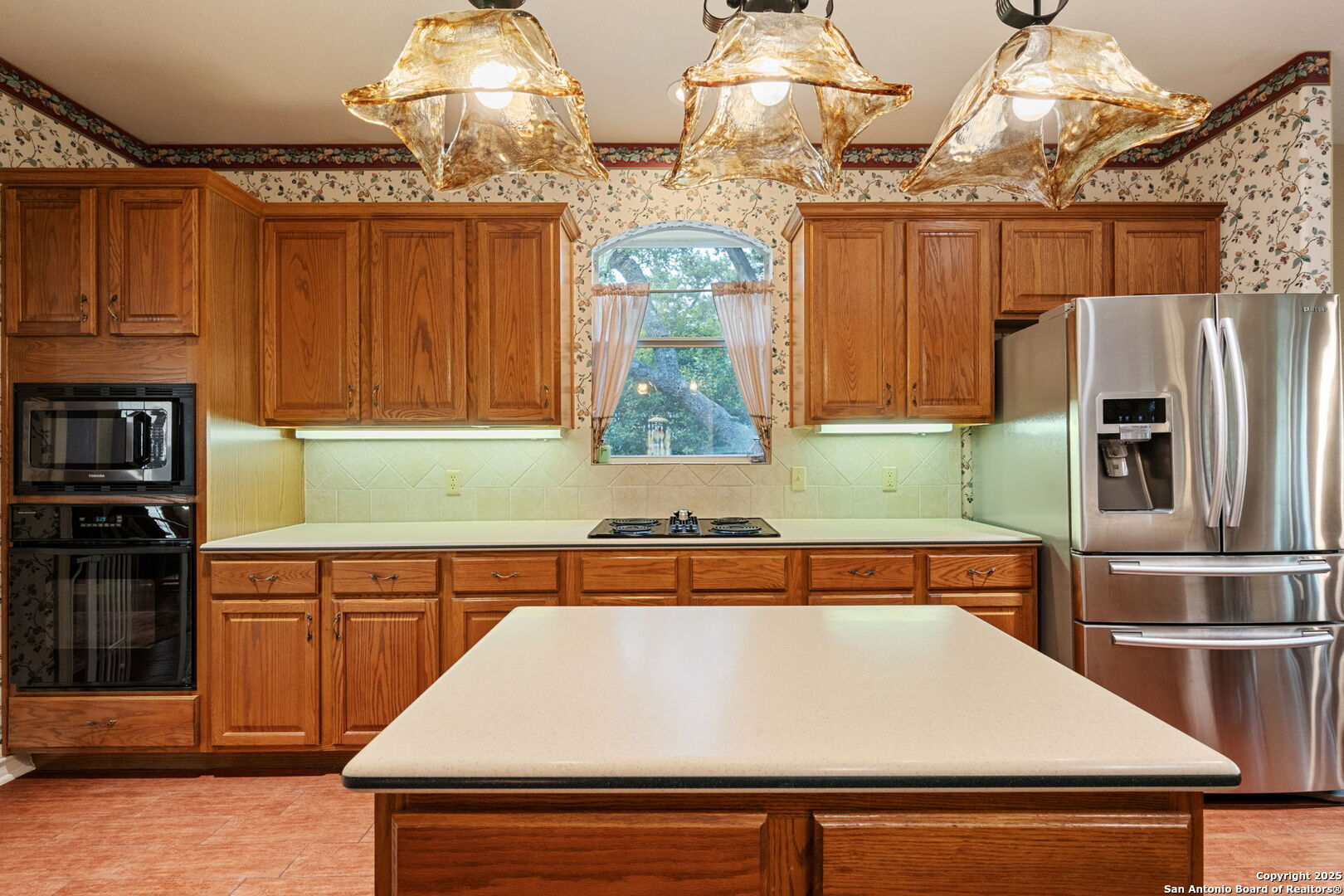 Close your eyes and imagine the peace and serenity of living on +1 acre in a gated neighborhood in Helotes, Texas - and then come and see this pristine Bradfield home in Helotes Park Terrace. This magnificent estate-size lot has been loved on and methodically maintained for over 25 years and now it is being offered for sale. The interior features ample living space (over 2,600 sqft) including a flex room (study/office or living room downstairs) along with the spacious primary suite downstairs. The entire first floor is carpet-free (all tile) for easy maintenance and allergy-friendly living. The floor plan makes gathering, entertaining, and everyday living a breeze with the eat-in kitchen at the heart of the home overlooking the grand living room (and its dramatic vaulted ceilings). The kitchen boasts sprawling Corian countertops and an island for added prep-space, complete with built-in appliances. Upstairs you'll find a generously-sized guest room with full bath ensuite as well as 2 additional secondary bedrooms & a full bath. The real magic here, though, is the property. Head out the back door onto the screened-in porch and enjoy the view of the beautifully wooded backyard. Carefully manicure the yard or let nature flourish on its own, the choice is yours; these beautiful oak trees are calling your name! Schedule your showing today!
