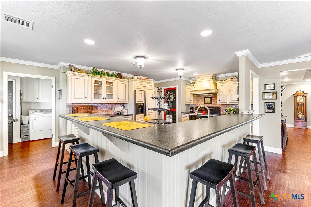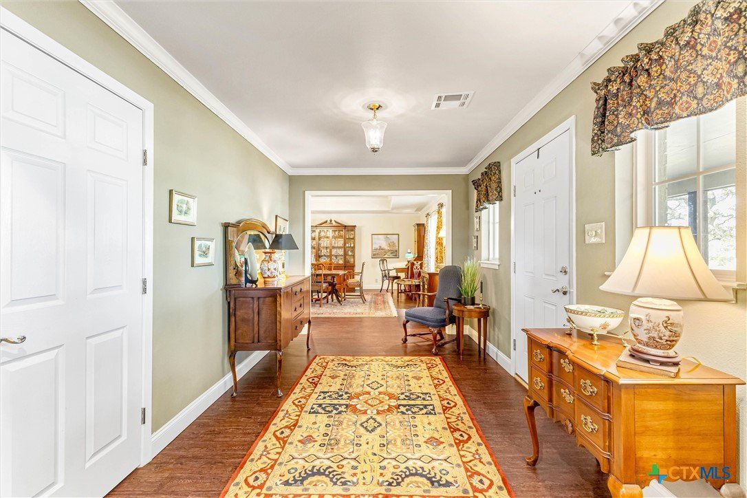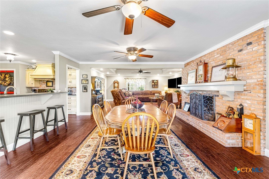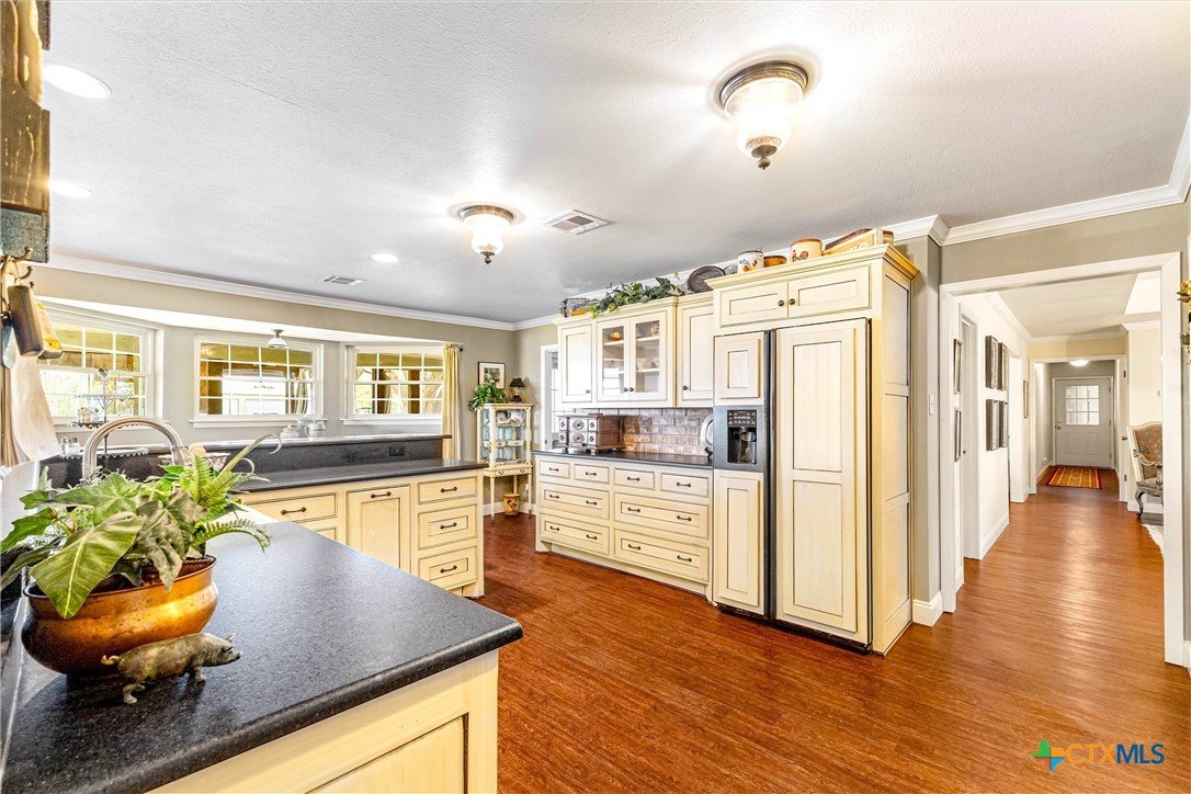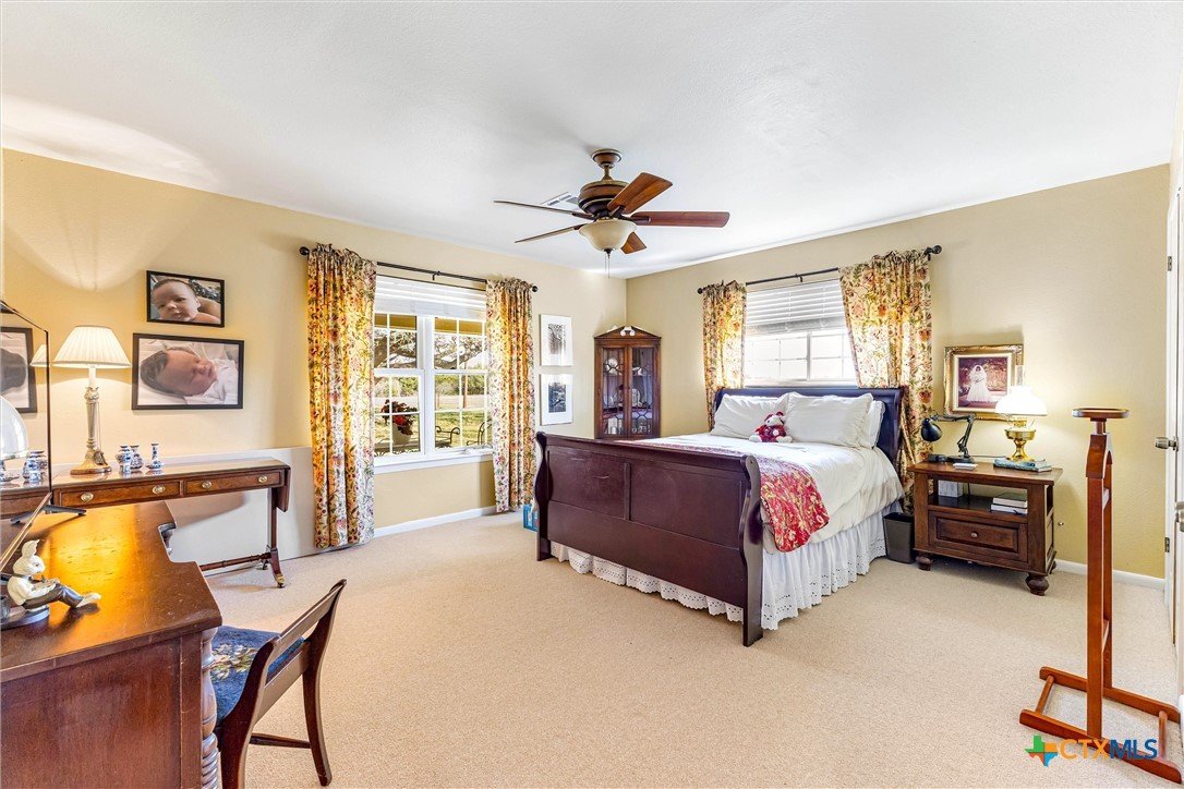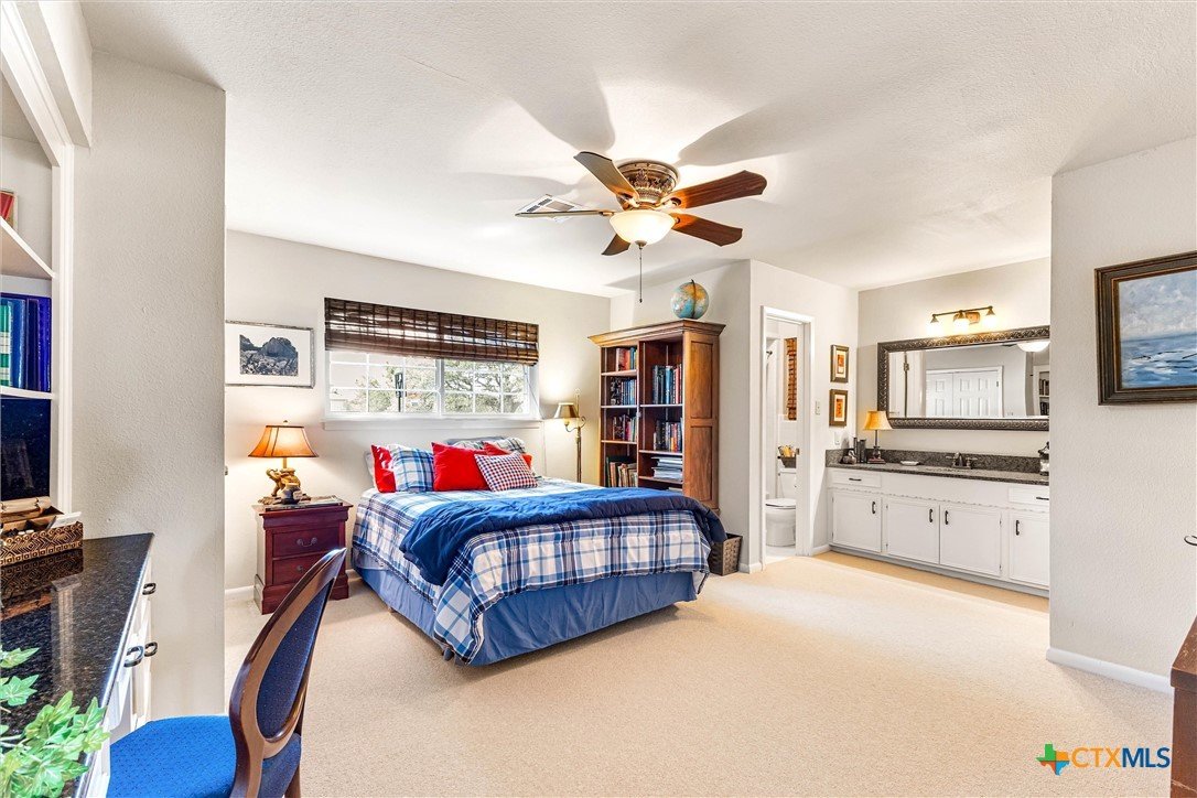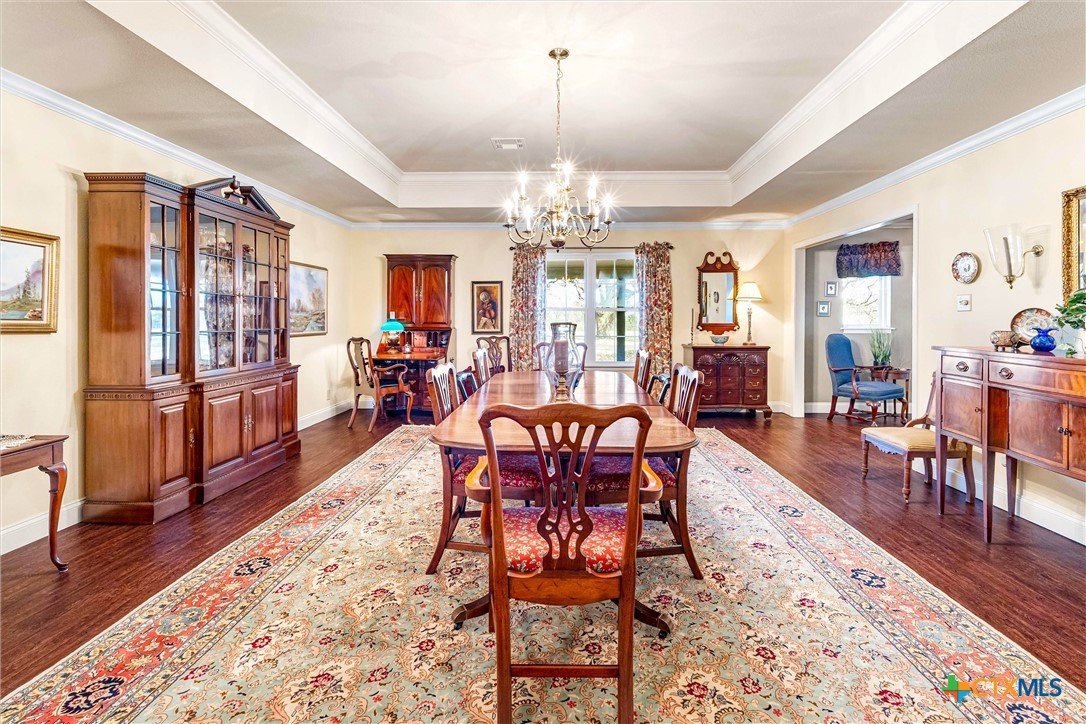 Welcome home to this Country Estate nestled among 300-year-old oak trees on 10.6 breathtaking acres. This stunning country property offers the perfect blend of elegance, comfort, and space. A gated entry welcomes you home, setting the stage for the charm and sophistication found throughout. The spacious 4,900+/- sqft home sits on 4 beautifully maintained acres and features four bedrooms and four and a half baths and is thoughtfully designed for both privacy and gathering. Step inside and you’ll find high-end finishes throughout, including crown molding, built-ins and luxe granite countertops. The heart of the home is the open kitchen, featuring custom-made Larry Dunlap cabinets, leathered Cambrian black granite countertops and top-of-the-line finishes. With two dining rooms, this home is perfect for entertaining family and friends. Designed with flexibility in mind, the spacious floor plan includes a flex space that can serve as a game room, additional bedrooms, a mother-in-law suite or guest quarters. The four-car garage provides ample storage, while a breezeway, with additional covered parking, ensures plenty of space for guests and recreational vehicles. Need more room? The property also includes a 1,300+/- sqft barn and shed, perfect for hobbies, livestock or extra storage. Beyond the home, is a serene 6.5 acres of rolling, tree covered pastureland and tank creating a serene setting where wildlife abounds. Picture yourself sipping coffee on the sprawling porch, watching the kids or grandkids run and play under the shade of towering oaks, or relaxing or watching sports on the back patio as deer wander through the property. Whether you envision hosting family and friends, raising animals or simply embracing the beauty of country living, this estate offers a lifestyle like no other. This property is so much more than land and a house—it’s a place to create memories, a private retreat, and a home where you’ll truly feel at peace. Ag Exempt, Valley Mills Schools. Pro