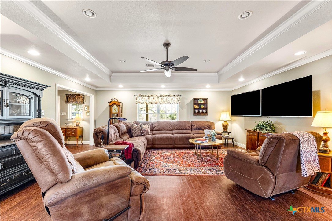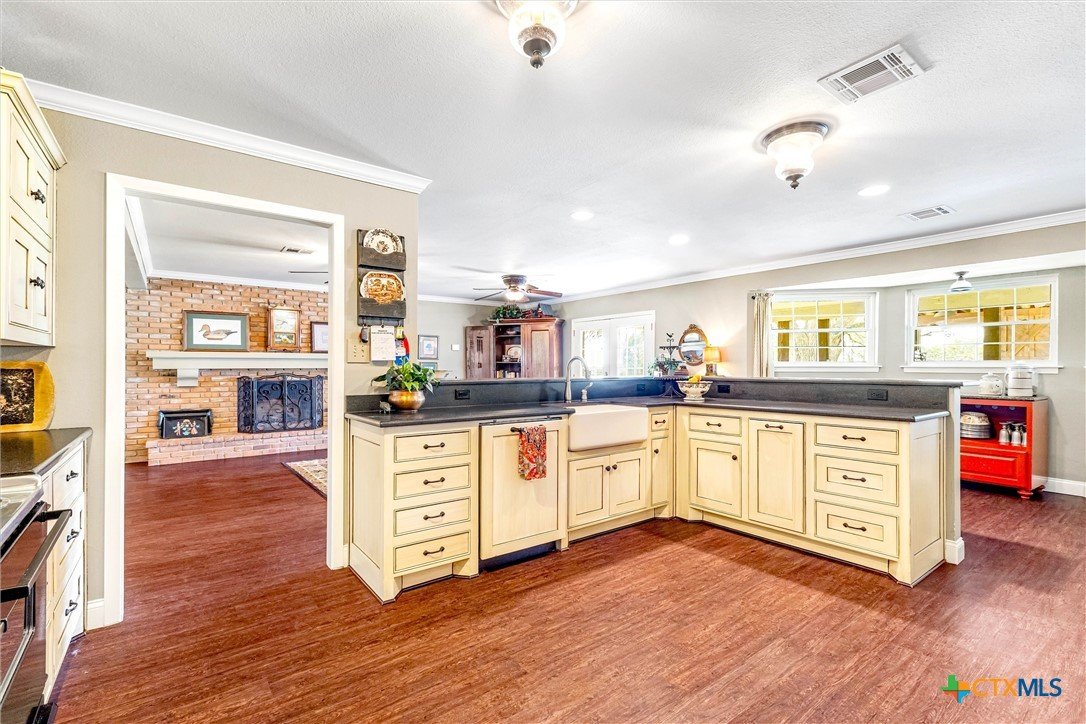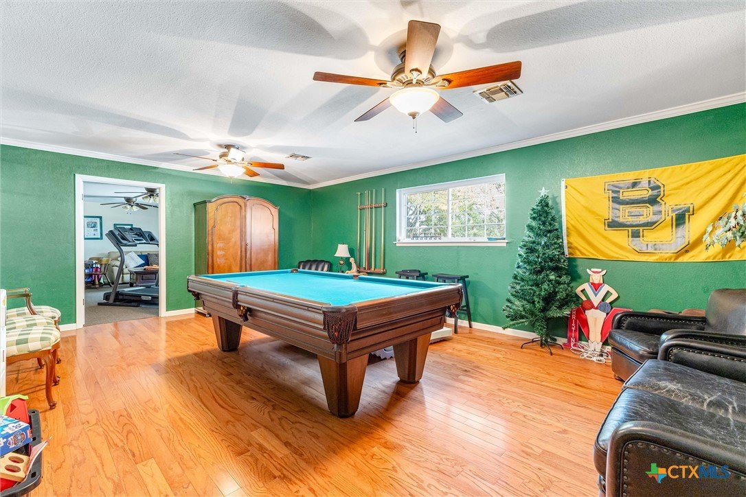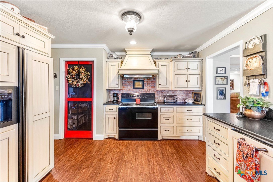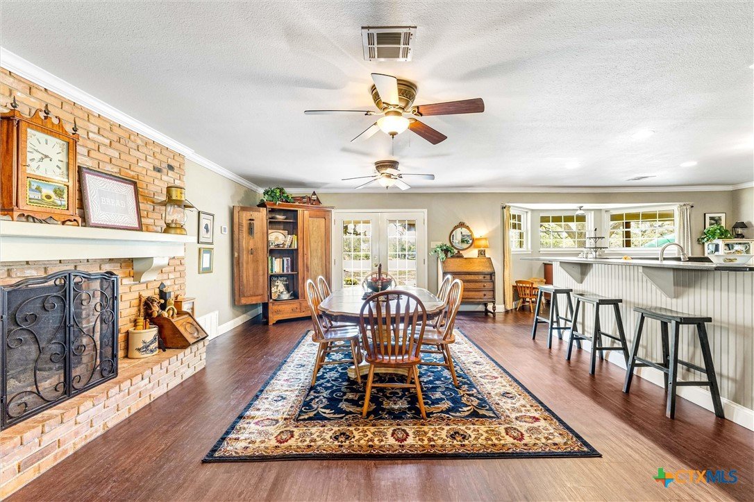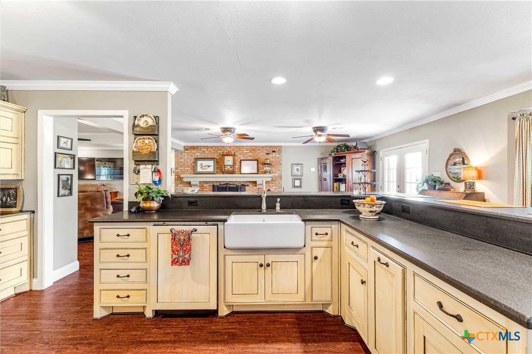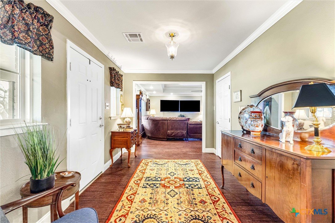 Welcome home to this Country Estate nestled among 300-year-old oak trees on 10.6 breathtaking acres. This stunning country property offers the perfect blend of elegance, comfort, and space. A gated entry welcomes you home, setting the stage for the charm and sophistication found throughout. The spacious 4,900+/- sqft home sits on 4 beautifully maintained acres and features four bedrooms and four and a half baths and is thoughtfully designed for both privacy and gathering. Step inside and you’ll find high-end finishes throughout, including crown molding, built-ins and luxe granite countertops. The heart of the home is the open kitchen, featuring custom-made Larry Dunlap cabinets, leathered Cambrian black granite countertops and top-of-the-line finishes. With two dining rooms, this home is perfect for entertaining family and friends. Designed with flexibility in mind, the spacious floor plan includes a flex space that can serve as a game room, additional bedrooms, a mother-in-law suite or guest quarters. The four-car garage provides ample storage, while a breezeway, with additional covered parking, ensures plenty of space for guests and recreational vehicles. Need more room? The property also includes a 1,300+/- sqft barn and shed, perfect for hobbies, livestock or extra storage. Beyond the home, is a serene 6.5 acres of rolling, tree covered pastureland and tank creating a serene setting where wildlife abounds. Picture yourself sipping coffee on the sprawling porch, watching the kids or grandkids run and play under the shade of towering oaks, or relaxing or watching sports on the back patio as deer wander through the property. Whether you envision hosting family and friends, raising animals or simply embracing the beauty of country living, this estate offers a lifestyle like no other. This property is so much more than land and a house—it’s a place to create memories, a private retreat, and a home where you’ll truly feel at peace. Ag Exempt, Valley Mills Schools. Pro