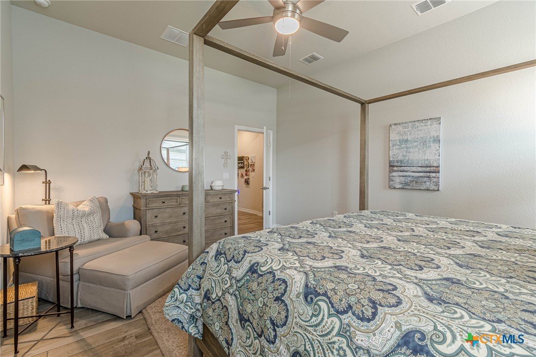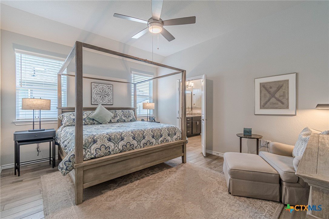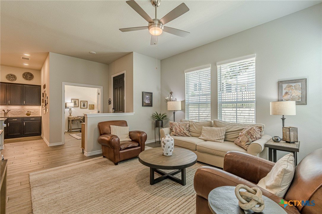 WOW! This one is better than new with all that it offers in this spacious Villa - an open Mitchell floor plan! This home offers 2 bedrooms plus a study, 2 baths, and a great outdoor living space with the enclosed screened in patio. You won't find all of this in a new construction home! This beautiful island kitchen is a great space at the hub of the home with generous cabinets and counter space to accommodate any chef's desire. Other features include soft close drawers, granite counters, seamless shower in main bath, ceramic tile floors throughout, built in niche, solid double doors to study, overhead storage in garage, water softener and more. What a beautiful gated and very active 55 plus community! Many social events and activities, clubs, groups, golf course, pickleball courts, bocce ball, dart depot, art studio, library, biergarten and community restaurant! This is living a great life! Come see your new villa today!