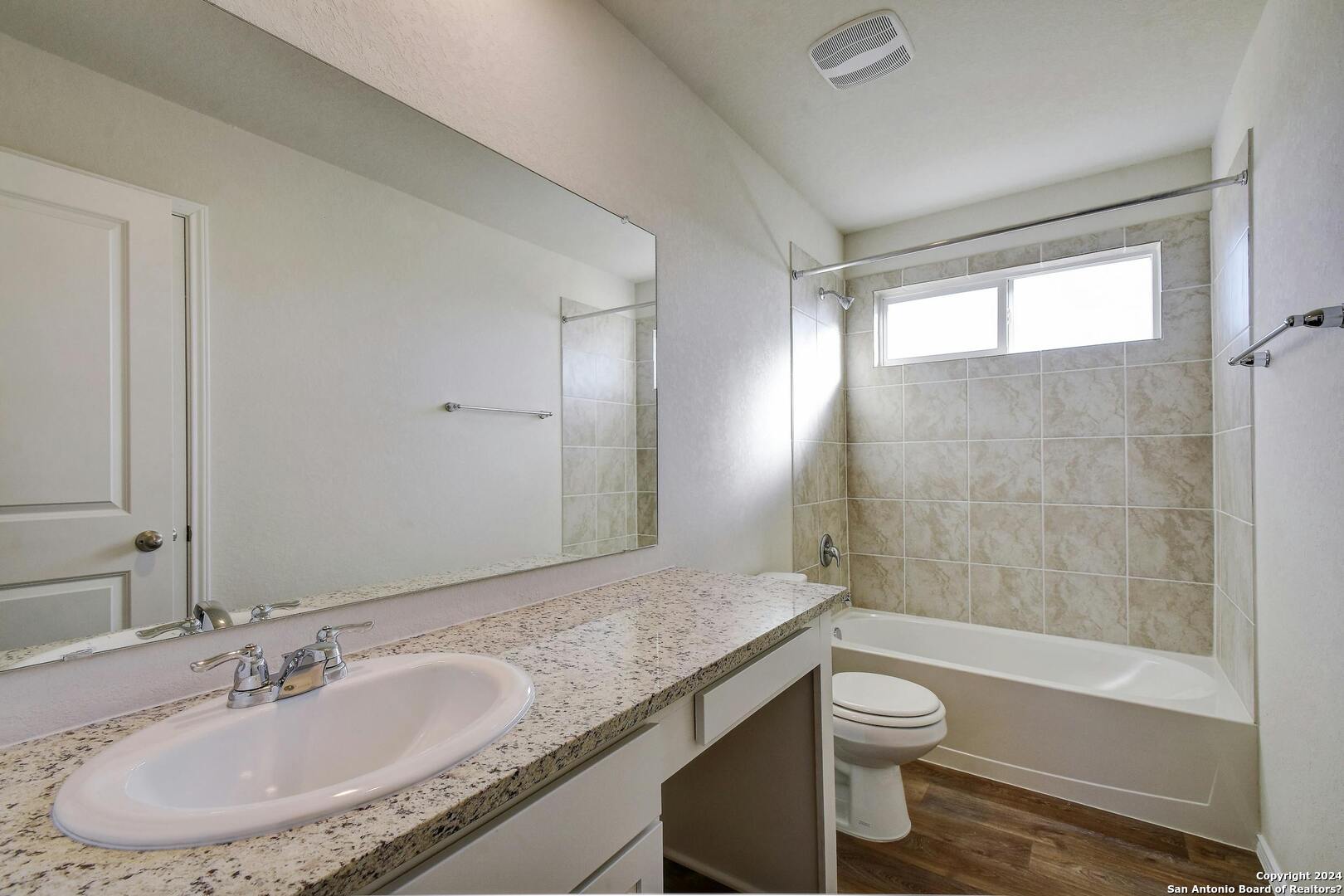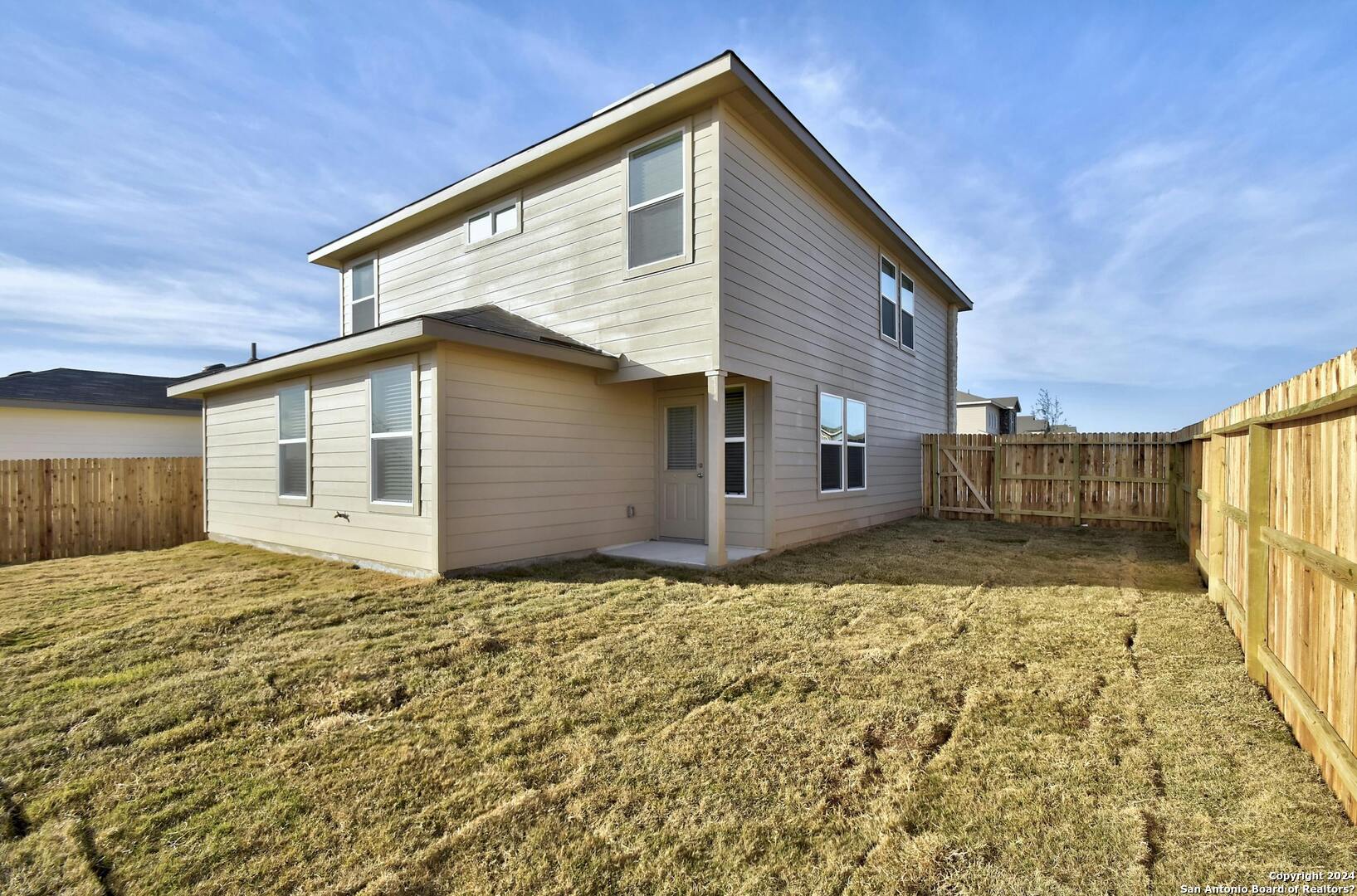 **** ALMOST NEW HOME **** 4 bedrooms/2.5 bathrooms, two story home in Whisper Falls neighborhood. Great floorplan on a corner lot. The Kitchen and living room offer a nice open concept style living area. The kitchen also offers Granite countertops, lots of cabinet space and a breakfast bar. The Master bedroom is located downstairs featuring a single vanity, garden tub, large walk in closet and separate shower. On the second floor you will find three nice sized bedrooms plus a large Game room / Loft. The large utility room (11x14) is also located upstairs. The large private backyard includes a privacy fence and sprinkler system. Conveniently located to Grocery Store, Shopping, Dining and only a short drive to Lackland AFB & Medina Annex. *** Virtual 3D walkthrough available***