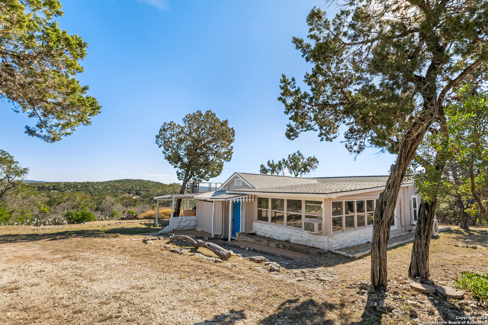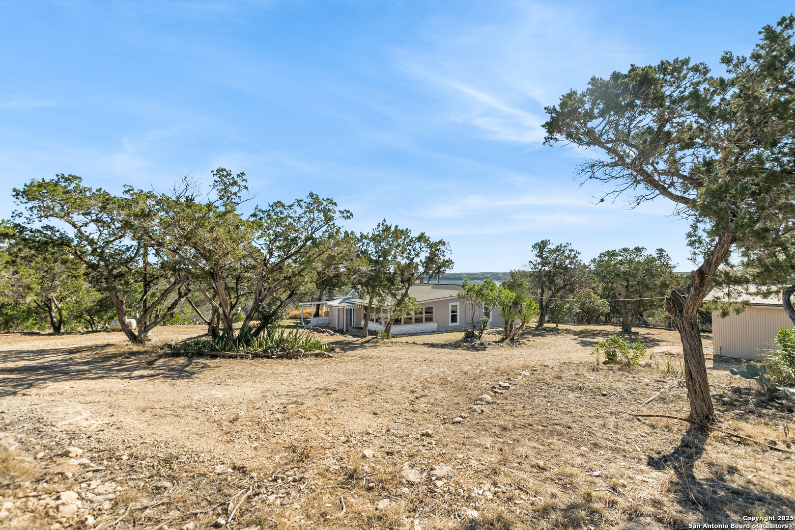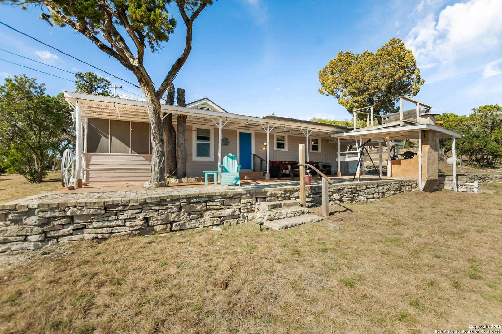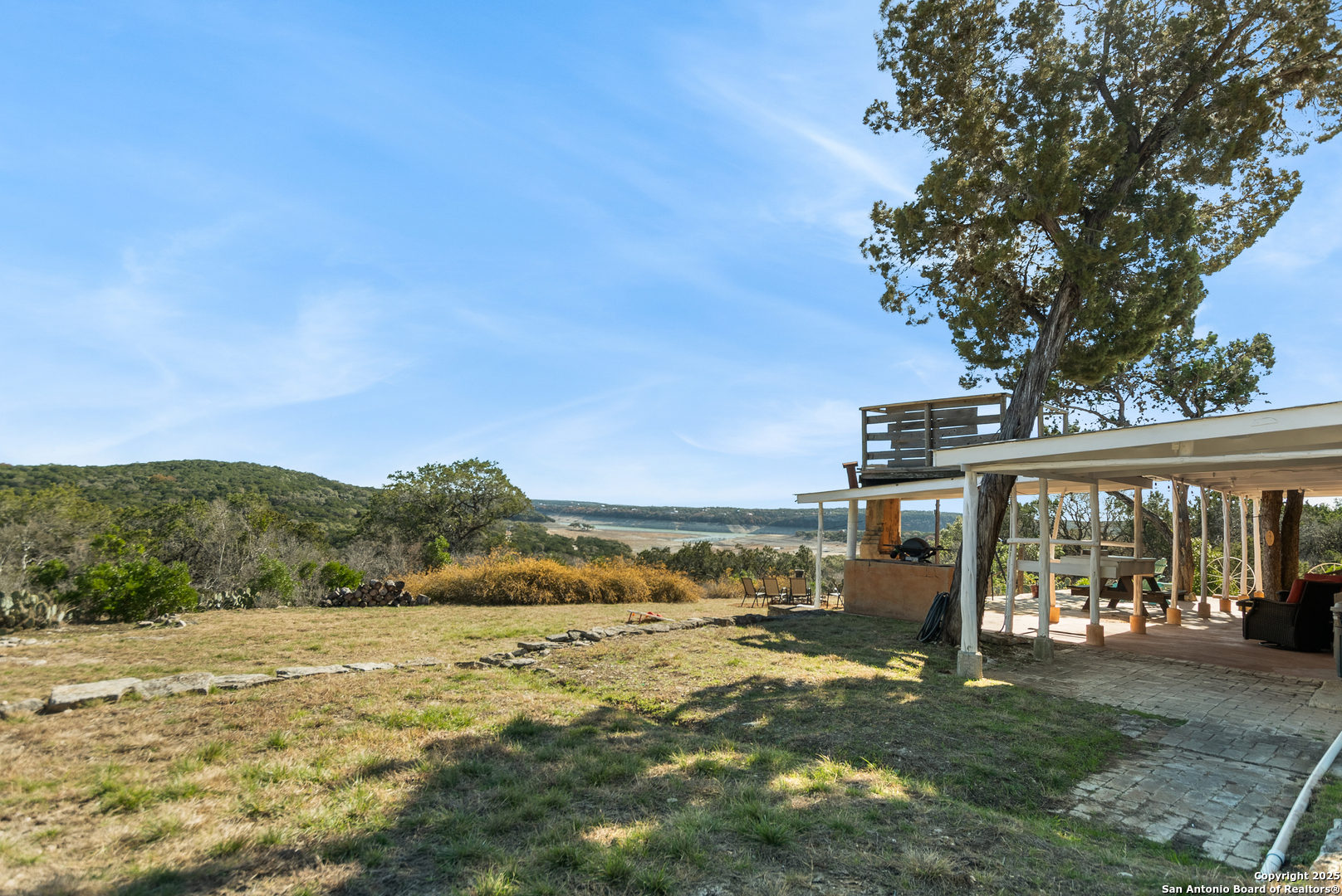 Secluded 2.1-acre retreat overlooking Medina Lake. Perched high with sweeping sunrise views, this charming stone-and-frame cottage offers peace and privacy. The home's character shines through its original stonework, thoughtfully expanded to create a cozy lake view escape. Both bedrooms open to a screened porch with unobstructed lake views, and even the kitchen is positioned to take in the scenery. A unique bird's nest platform provides an elevated perch to enjoy the panorama. Morning light fills the home, while afternoon shade keeps outdoor spaces cool and inviting. A deep private well-recently updated with a new pump and equipment-serves the property. Ideal as a hidden getaway or a tranquil full-time residence, this lake home blends charm, privacy, and unforgettable views.