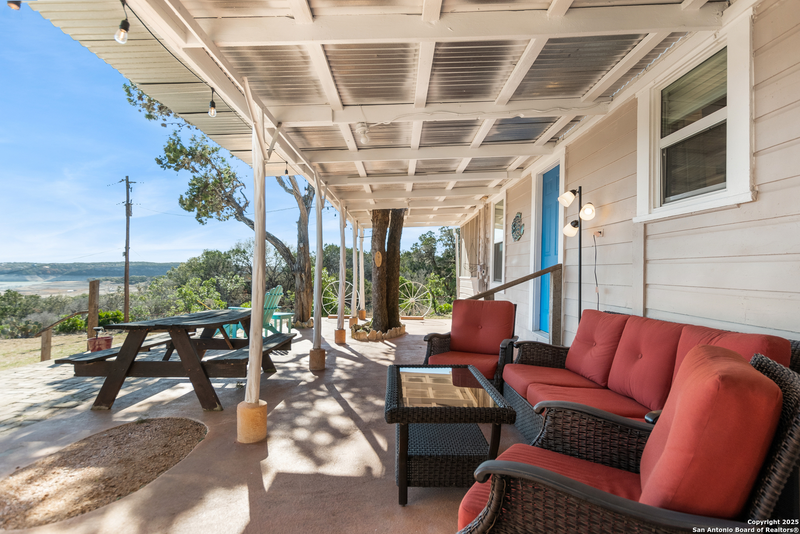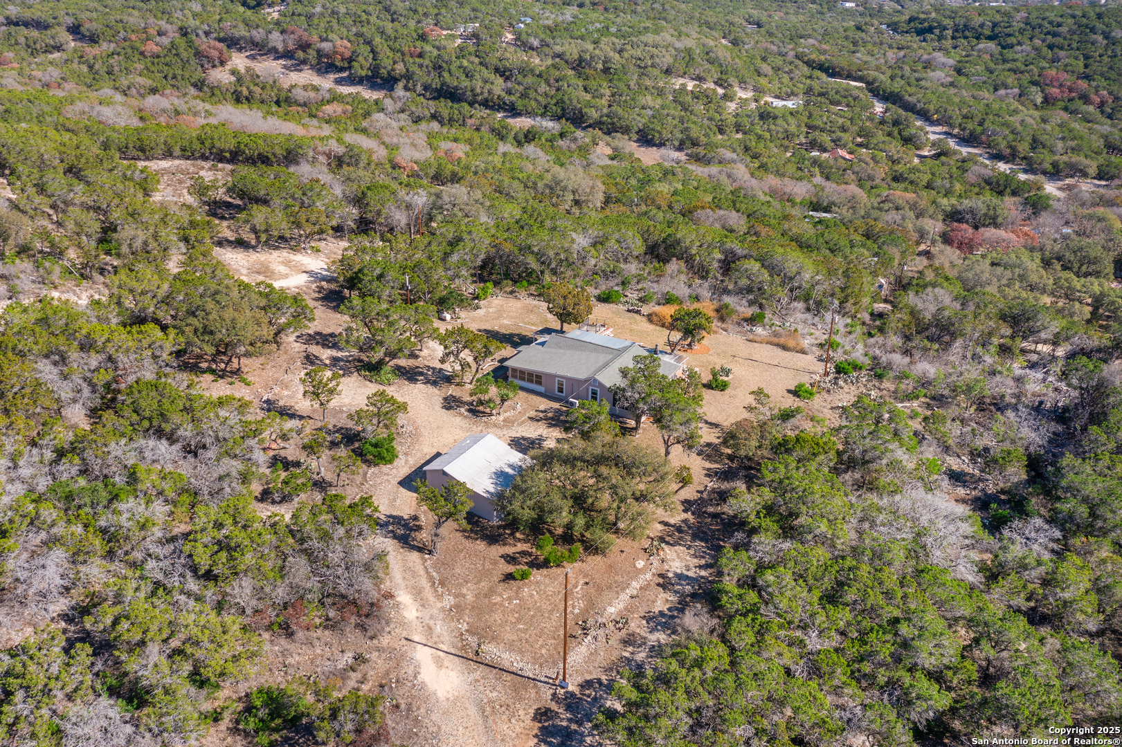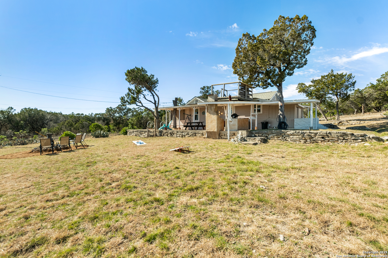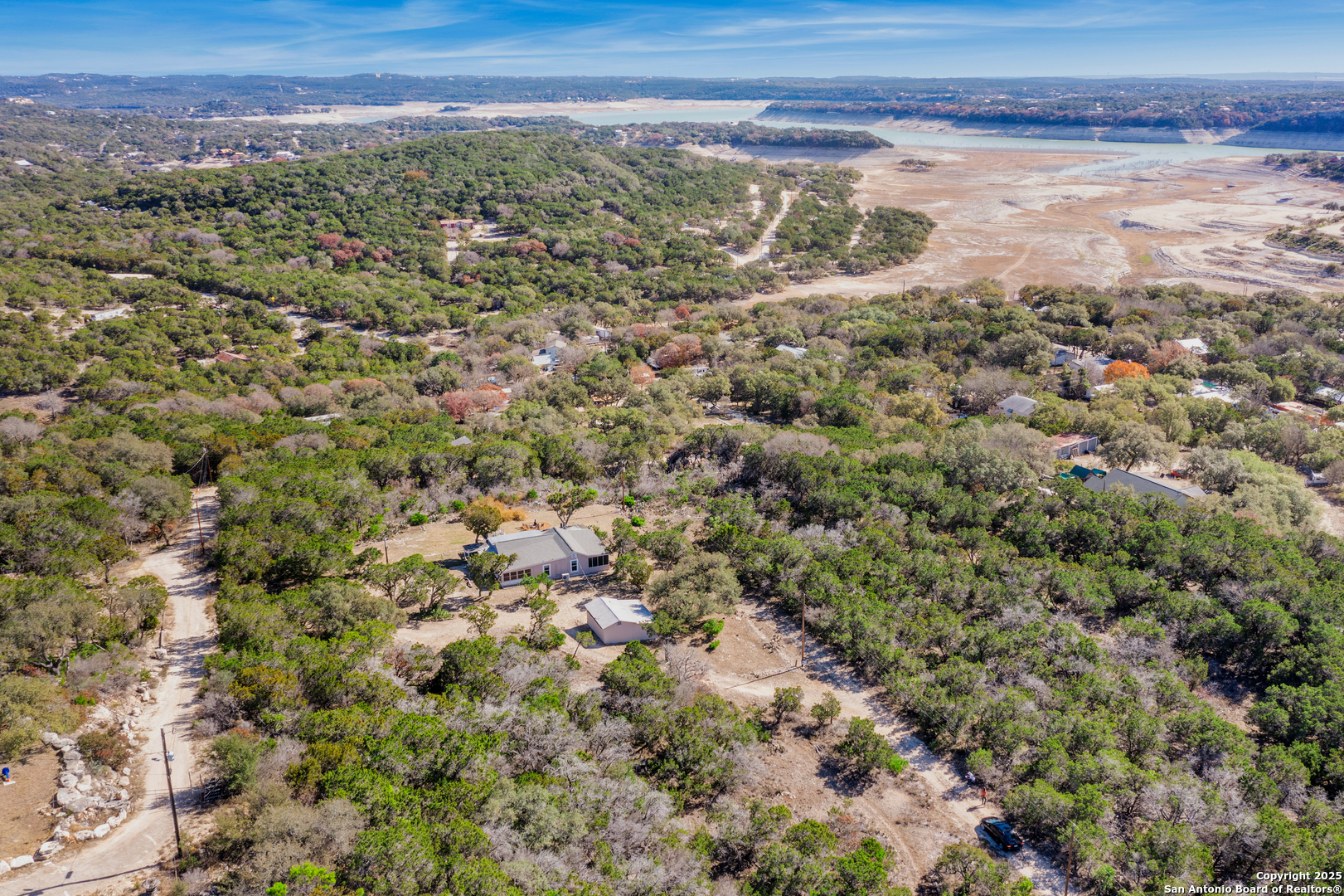 Secluded 2.1-acre retreat overlooking Medina Lake. Perched high with sweeping sunrise views, this charming stone-and-frame cottage offers peace and privacy. The home's character shines through its original stonework, thoughtfully expanded to create a cozy lake view escape. Both bedrooms open to a screened porch with unobstructed lake views, and even the kitchen is positioned to take in the scenery. A unique bird's nest platform provides an elevated perch to enjoy the panorama. Morning light fills the home, while afternoon shade keeps outdoor spaces cool and inviting. A deep private well-recently updated with a new pump and equipment-serves the property. Ideal as a hidden getaway or a tranquil full-time residence, this lake home blends charm, privacy, and unforgettable views.