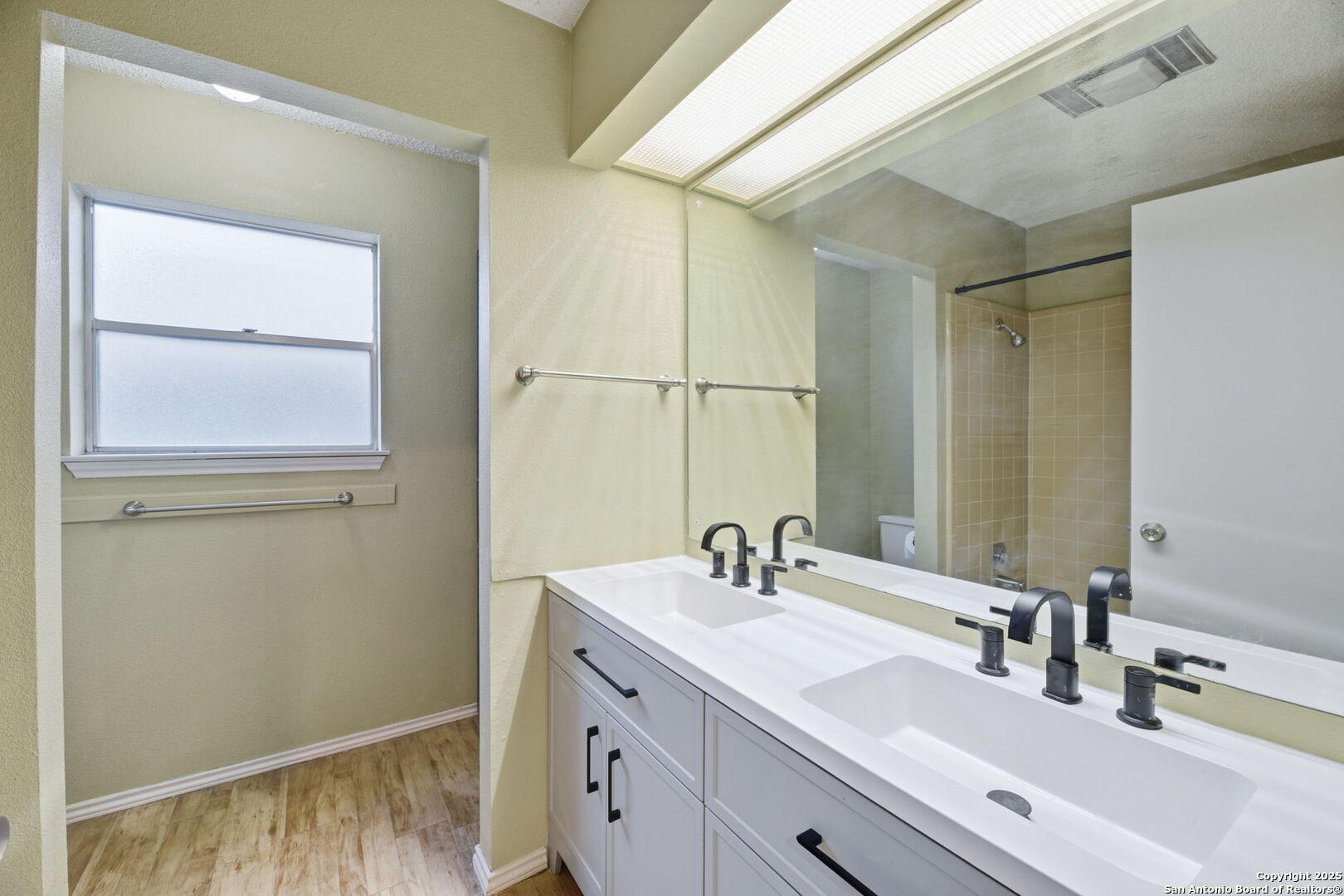 Come see this beautiful three bedroom three bathroom home in the quiet neighborhood of HERITAGE PARK ESTATE! This home offers a move-in ready situation as well as close proximity to some of San Antonio's greatest public parks, restaurants, shopping, and the airport. Brand NEW flooring/bathroom vanities! This home comes complete with a large living room, separate dining room, which could be converted into a secondary living space or sitting room, island kitchen with plenty of space and storage!! The backyard features a newly sodded area for entertaining or playing with your dog. This home offers plenty of parking in the driveway as well as the garage. Come see this beauty for yourself!