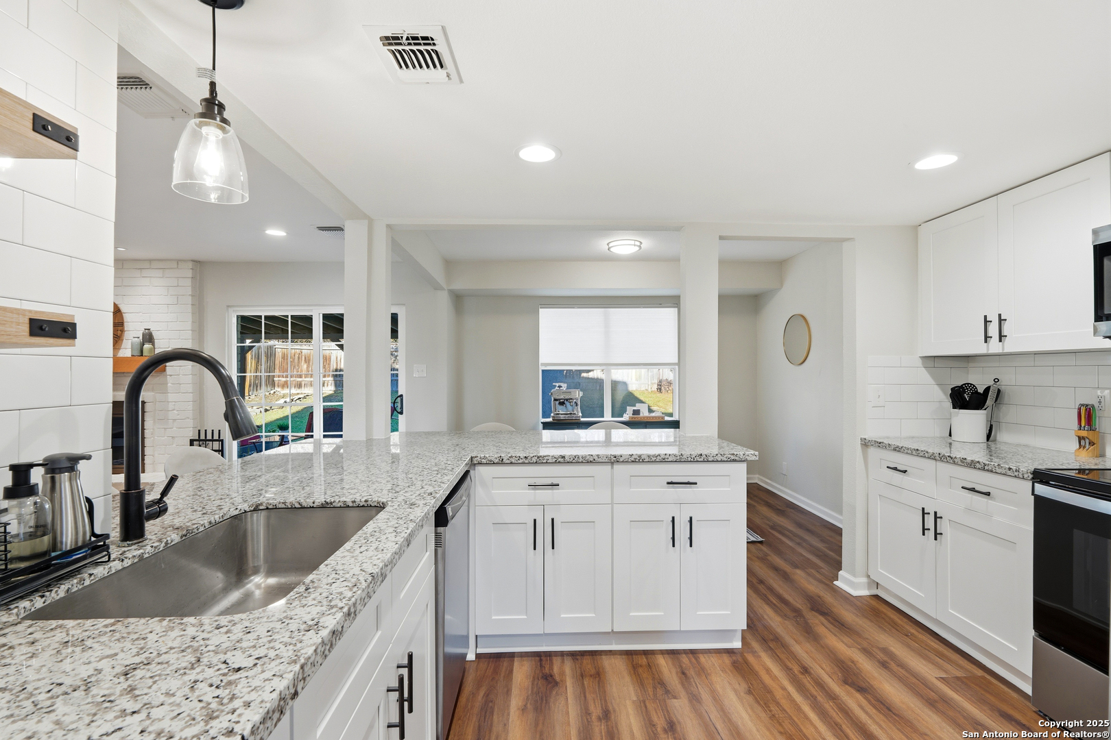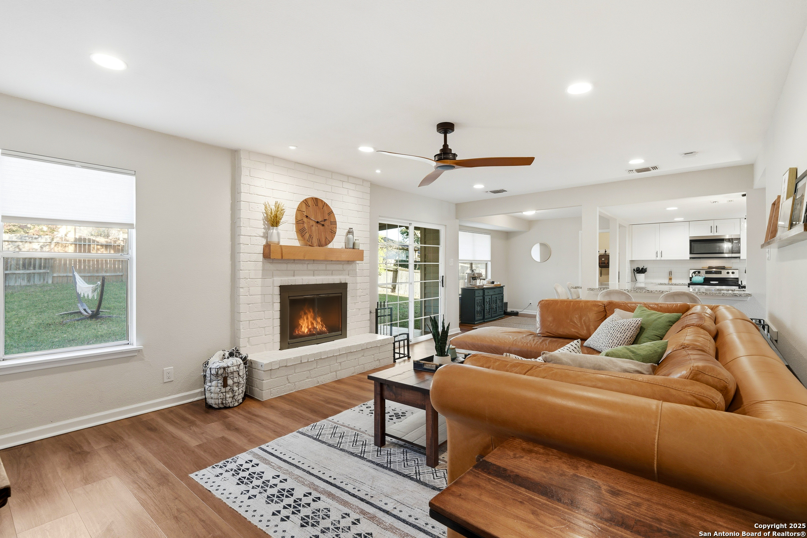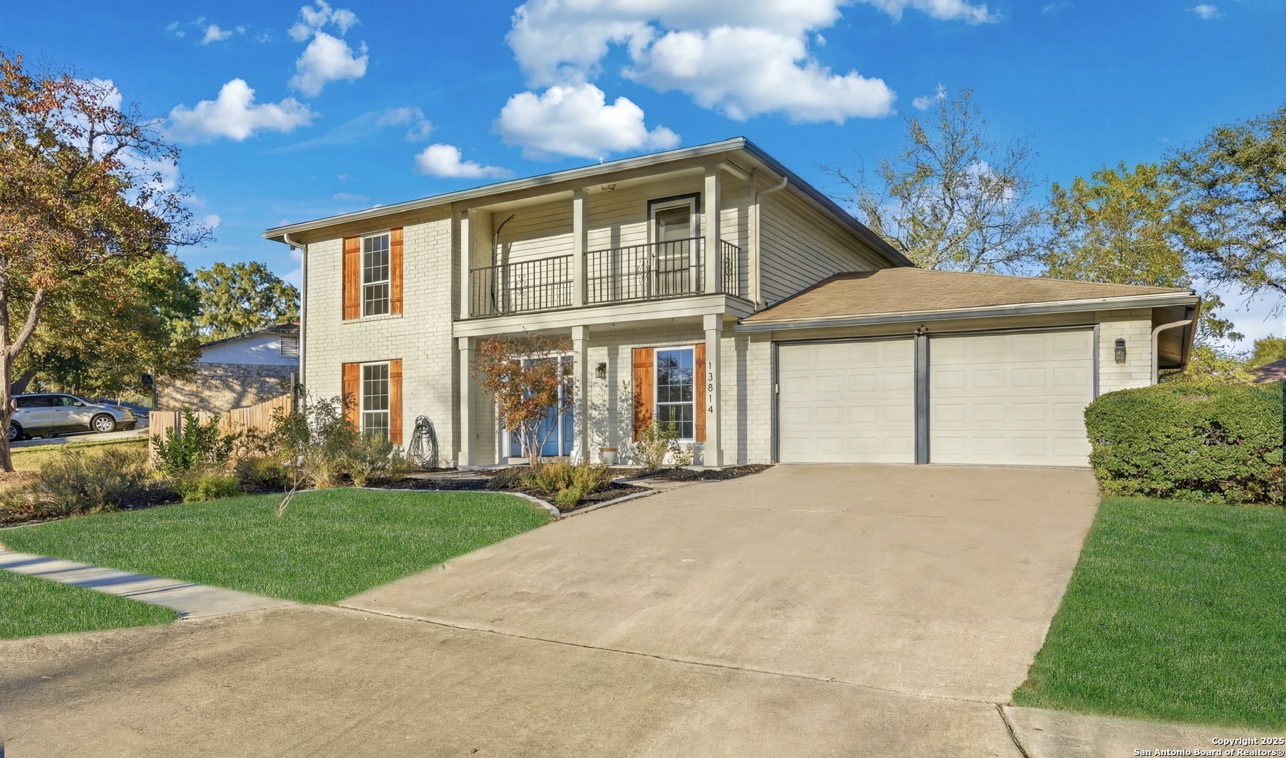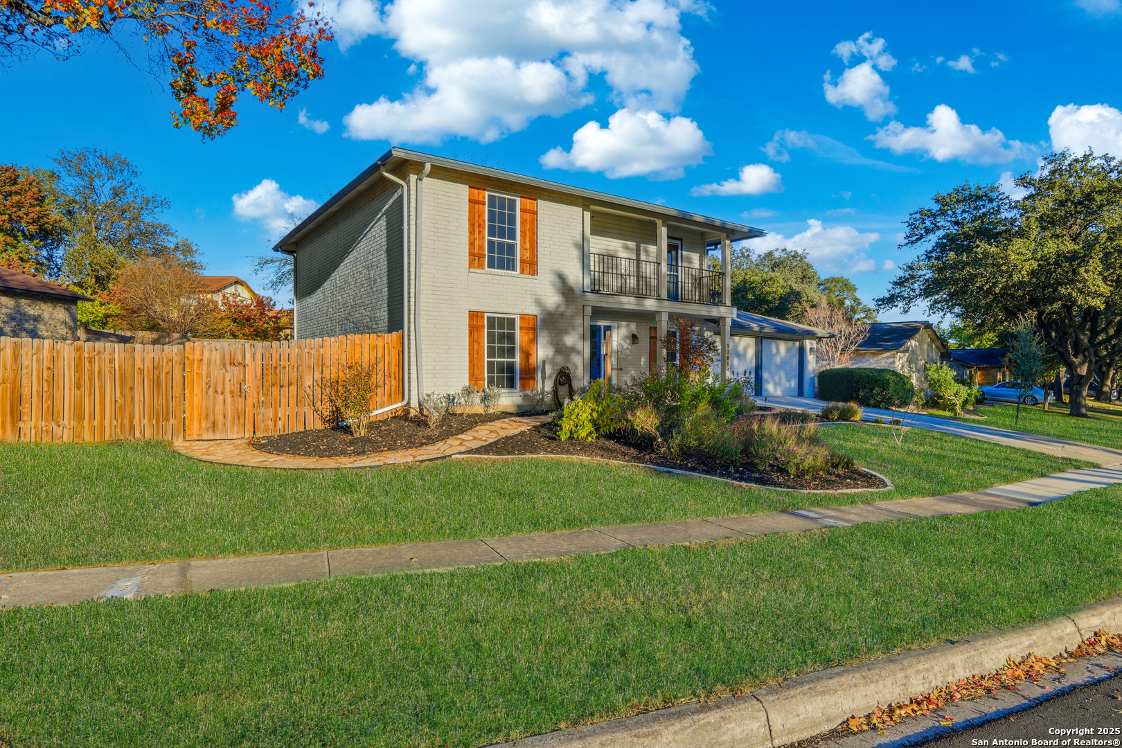 This exceptional home has it all, space, comfort, and lifestyle! Come see this stunning two-story, 4-bedroom, 2.5-bath home, on a generous 0.32-acre lot, located in the highly desirable Northern Hills subdivision with No HOA! Featuring excellent curb appeal, the property showcases custom landscaping, mature trees, and a three-sided brick exterior. Step inside to an inviting home filled with natural light which offers two spacious living areas, a formal dining room, and beautiful luxury vinyl flooring throughout. The formal dining room flows seamlessly into a cozy family room with a charming fireplace and open view to the chef's kitchen, complete with granite countertops, white cabinetry, stylish backsplash, stainless steel appliances, and a breakfast nook ideal for everyday living and entertaining. Upstairs, the spacious primary suite features a large bathroom with a tub/shower combo, an oversized vanity, and a walk-in closet. Three additional bedrooms provide versatility for family, guests, or a home office, with access to a lovely balcony. The large backyard has a covered patio perfect for gatherings. Located just minutes from the Northern Hills Golf Course, this home is a dream for golf enthusiasts. It also offers convenient access to Thousand Oaks Dr, Loop 1604, shopping, dining, and the highly rated NEISD school district. It's a must see! This will not last long!