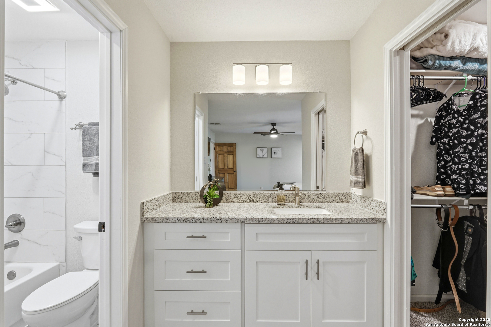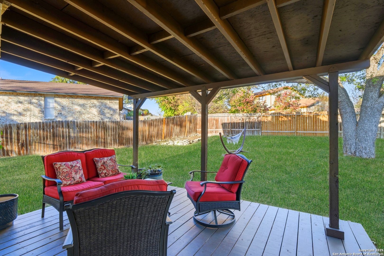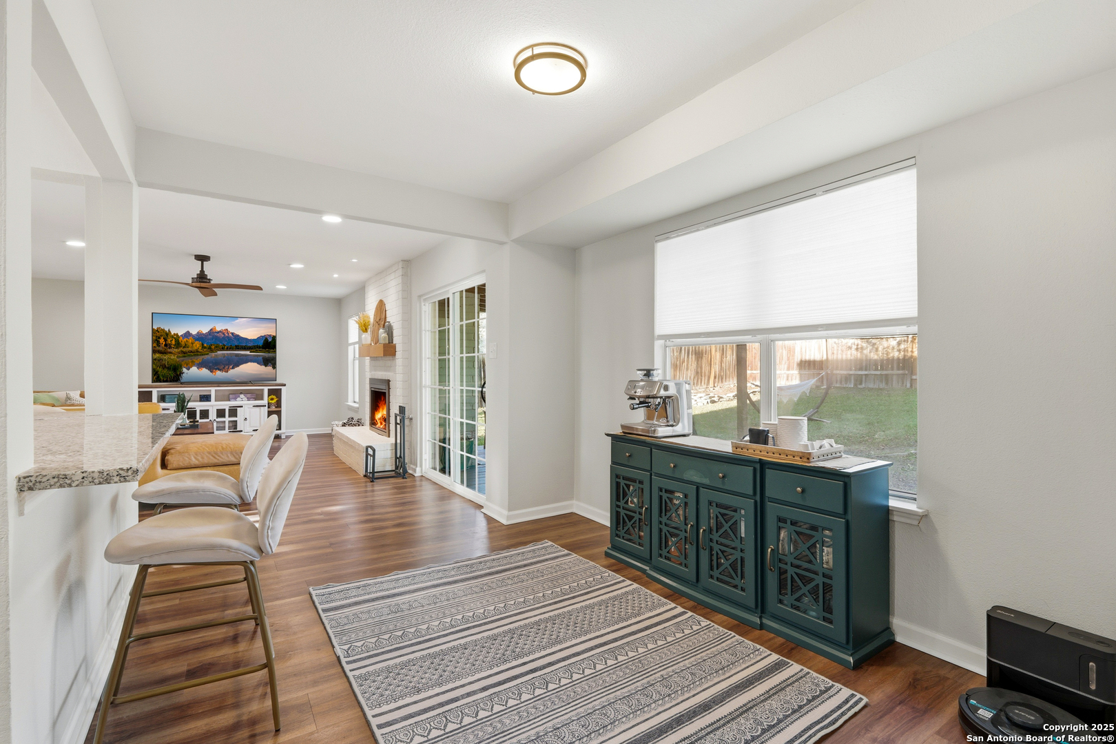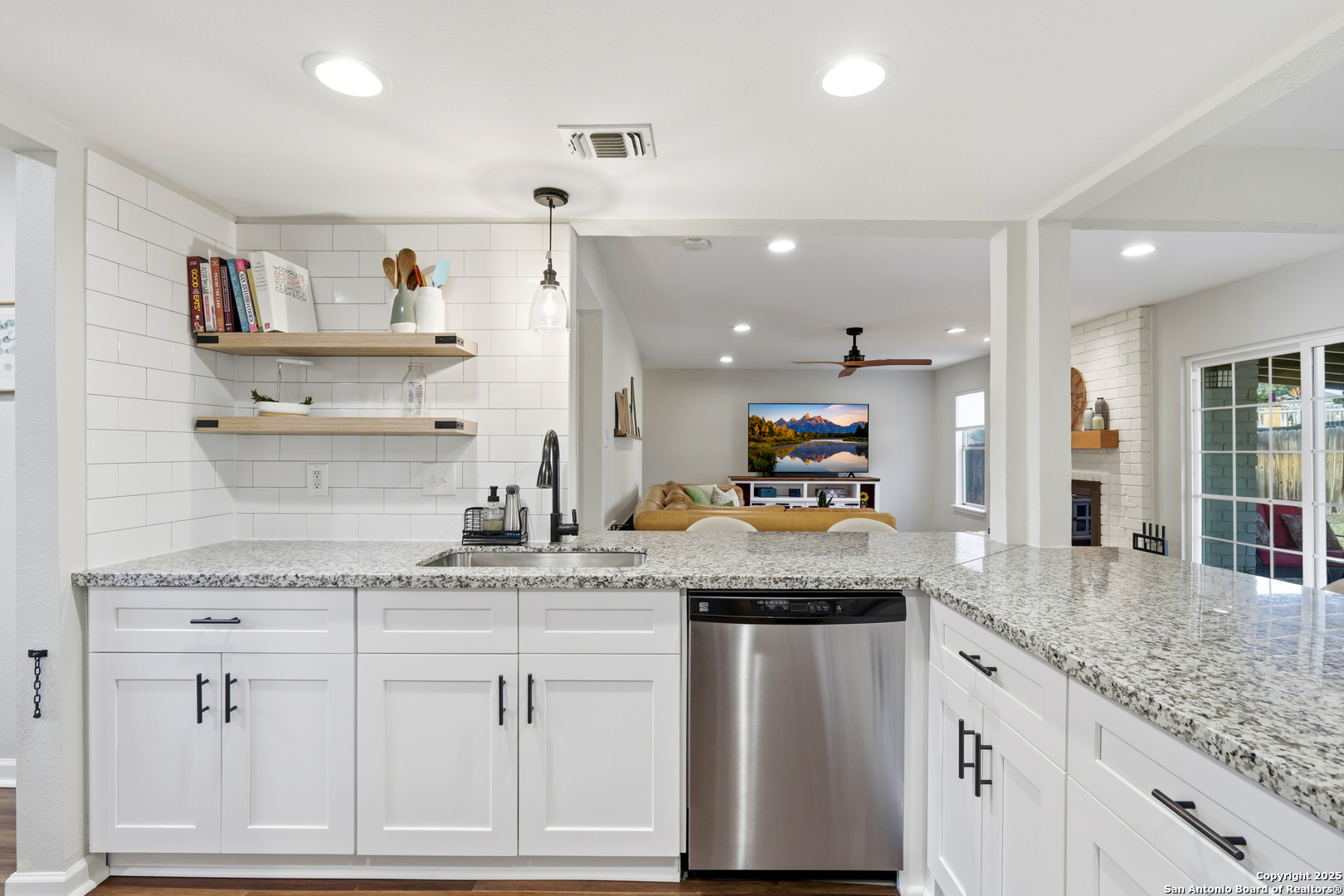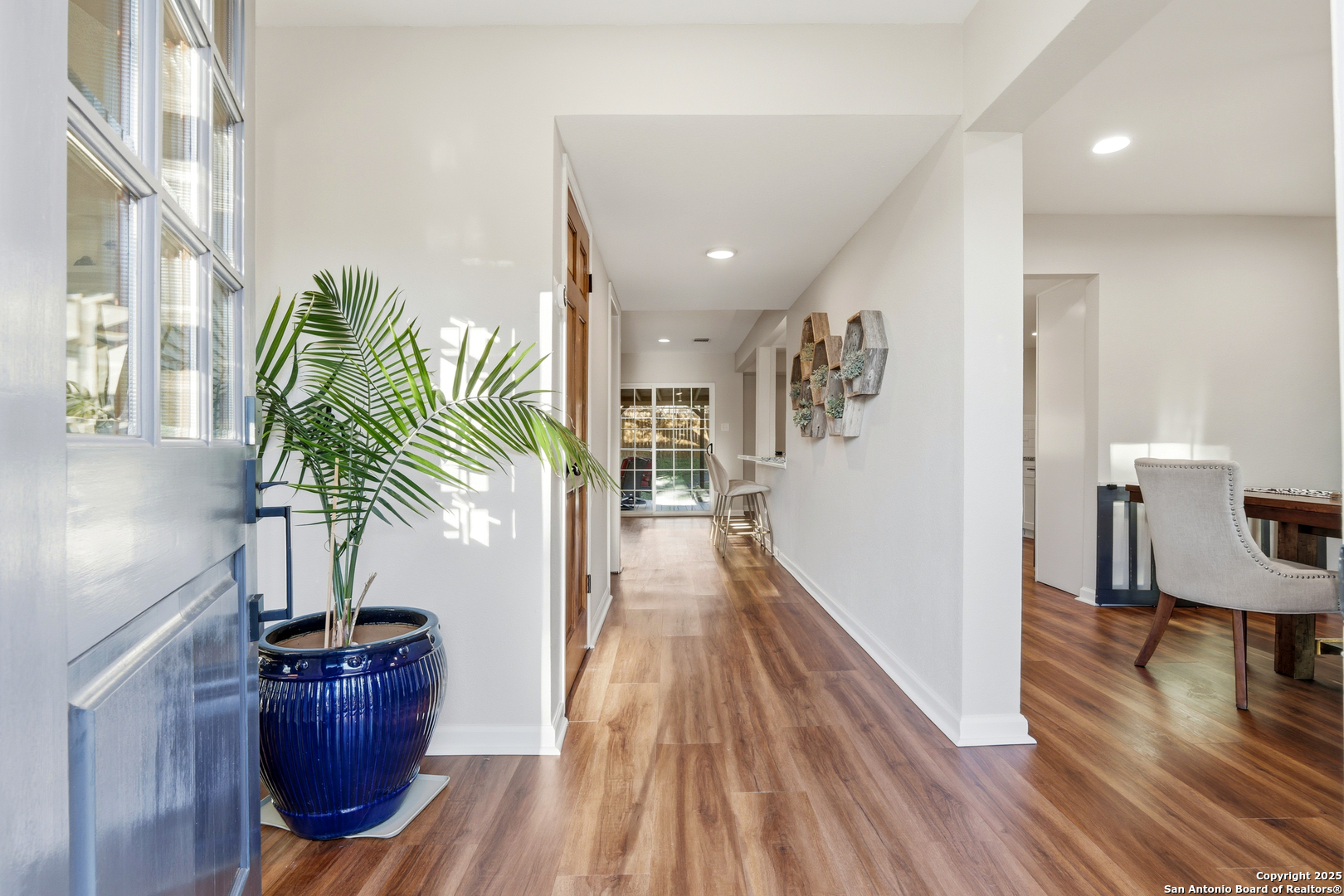 This exceptional home has it all, space, comfort, and lifestyle! Come see this stunning two-story, 4-bedroom, 2.5-bath home, on a generous 0.32-acre lot, located in the highly desirable Northern Hills subdivision with No HOA! Featuring excellent curb appeal, the property showcases custom landscaping, mature trees, and a three-sided brick exterior. Step inside to an inviting home filled with natural light which offers two spacious living areas, a formal dining room, and beautiful luxury vinyl flooring throughout. The formal dining room flows seamlessly into a cozy family room with a charming fireplace and open view to the chef's kitchen, complete with granite countertops, white cabinetry, stylish backsplash, stainless steel appliances, and a breakfast nook ideal for everyday living and entertaining. Upstairs, the spacious primary suite features a large bathroom with a tub/shower combo, an oversized vanity, and a walk-in closet. Three additional bedrooms provide versatility for family, guests, or a home office, with access to a lovely balcony. The large backyard has a covered patio perfect for gatherings. Located just minutes from the Northern Hills Golf Course, this home is a dream for golf enthusiasts. It also offers convenient access to Thousand Oaks Dr, Loop 1604, shopping, dining, and the highly rated NEISD school district. It's a must see! This will not last long!
