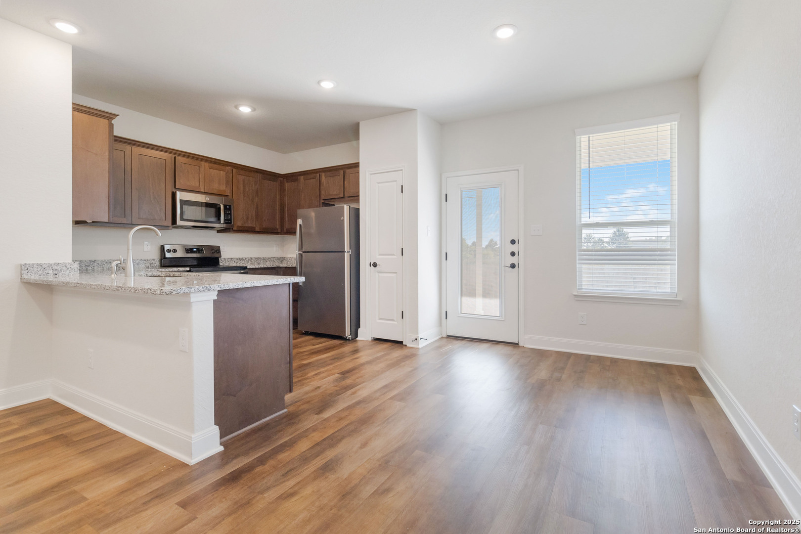 Fully furnished 3-bed, 2.5-bath duplex located in a gated Northwest San Antonio community near Culebra Rd and Loop 1604. This move-in-ready home features an open-concept layout, modern finishes, spacious bedrooms, and a private backyard. The attached garage includes an EV charger, and a washer and dryer are included for added convenience. Water and lawn maintenance are included-no water bill and no yard work-helping keep monthly expenses simple. Pet-friendly and conveniently located near shopping, dining, grocery stores, and major roadways. Ideal for tenants seeking a furnished, low-maintenance home in a great location. Available now.