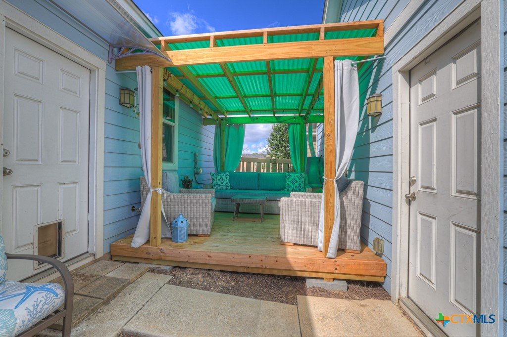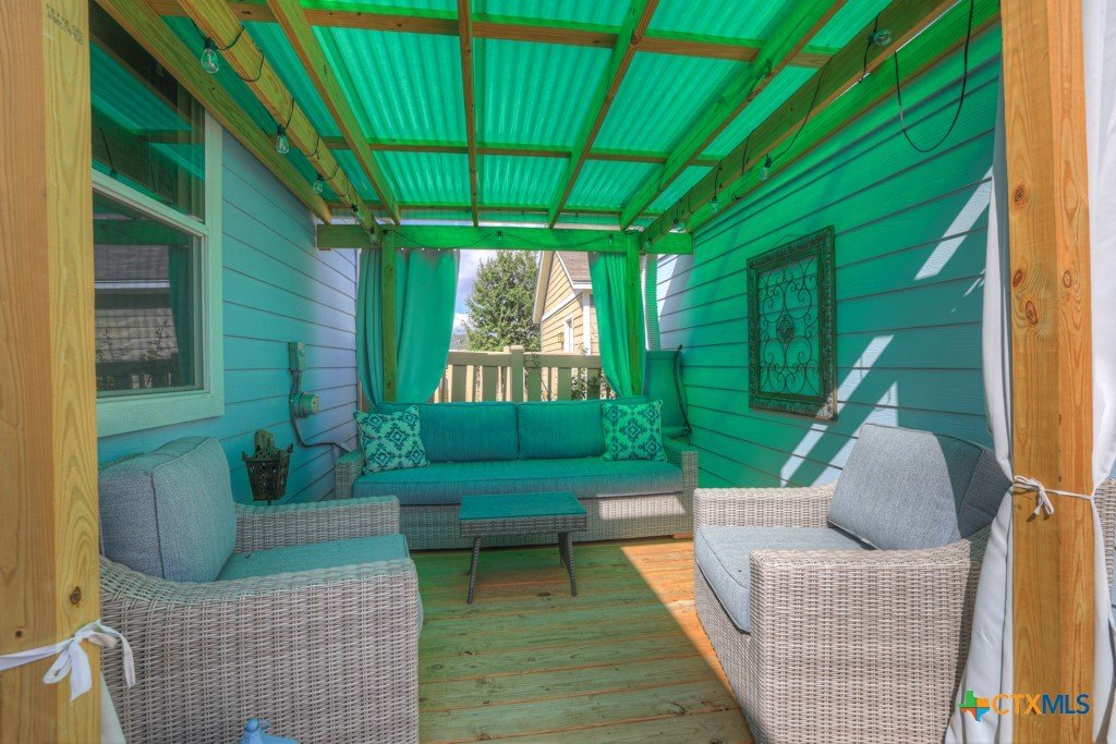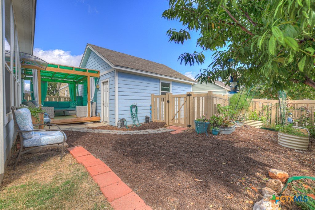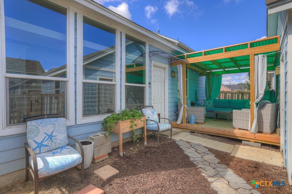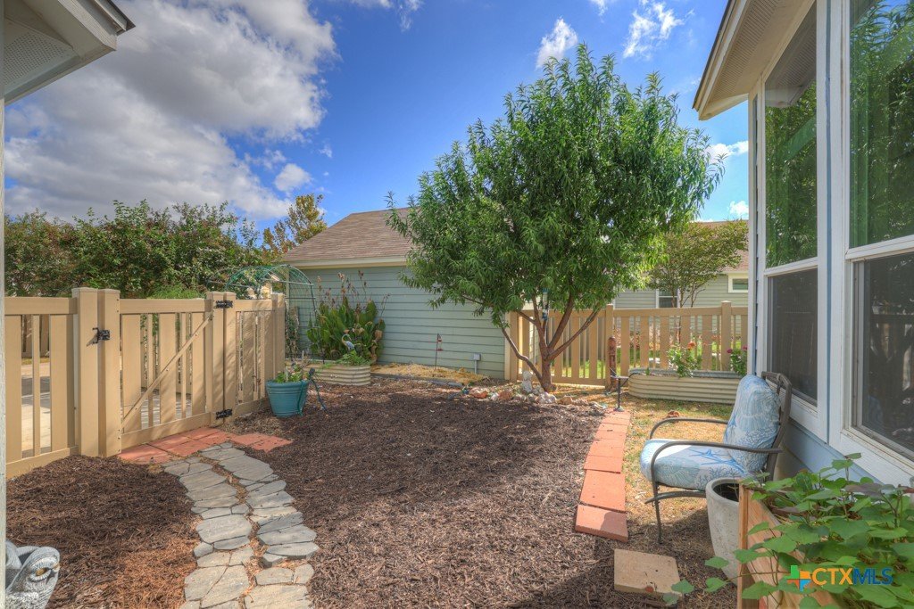 Welcome to 1389 Nevarez-Discover the charm of Plum Creek living in this picture-perfect single-family home. Whether you’re a first-time buyer, savvy investor, or ready to downsize into a low-stress lifestyle, this home checks all the boxes. Tucked away on a quiet cul-de-sac, this cottage backs onto a peaceful greenbelt with golf course views. A wide covered porch sets the tone, while lush vegetable gardens and fruit trees creating a true backyard oasis. Imagine evening sunsets on the intimate covered back yard deck under the stars. Inside, enjoy tile floors and an airy, freshly painted floor plan filled with natural light. The spacious kitchen with its oversized island, sleek granite counters, and stainless appliances—are perfect for entertaining. The living room boasts a dramatic wall of built-ins, ready for books, art, or your big screen as well as a separate area next to the kitchen is perfect for larger dining area for family meals or exercise equipment. Life at Plum Creek means more than just a home—you’ll enjoy tennis and pickleball courts, trails, a sparkling pool, and of course, golf. Plus, you’re minutes from schools, shopping, dining, and entertainment. The move-in ready home and a welcoming community vibe make this an easy “yes.” Opportunities like this don’t last long in Plum Creek. Schedule your showing today and claim your spot in one of Kyle’s most desirable neighborhoods!