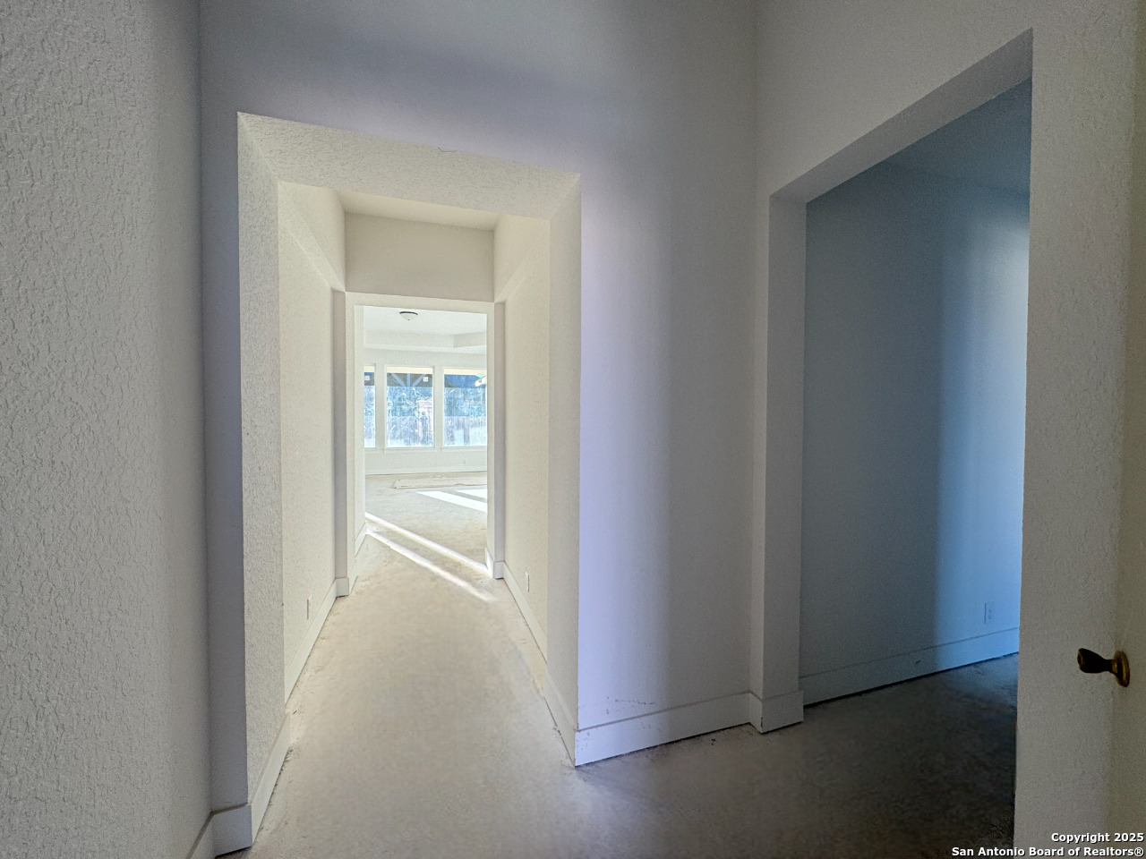 Designed with both everyday comfort and stylish entertaining in mind, this charming one-story home offers a flexible, open-concept layout that effortlessly adapts to your needs. From relaxed evenings at home to festive holiday gatherings, every space invites connection, ease, and comfort. At the heart of the home, the gourmet kitchen is thoughtfully appointed with a walk-in pantry, built-in appliances, and a spacious central island perfect for prepping meals, serving snacks, or gathering with family and friends. The kitchen flows seamlessly into the light-filled family room, where three large windows overlook the covered patio-extending your living space outdoors for year-round enjoyment. The luxurious primary suite is a peaceful retreat tucked away for privacy. It features a spa-inspired bath with a garden tub, separate shower, dual vanities, and a spacious walk-in closet-offering both functionality and a touch of indulgence. Bedrooms 2 and 3 are connected by a convenient Jack-and-Jill bath, and each boasts its own walk-in closet-making morning routines smoother and ensuring everyone has their own personal space. At the front of the home, the formal dining room provides a welcoming spot for special meals but can easily be converted into an additional bedroom with its own bath to accommodate guests, a live-in relative, or a growing family. This home features design selections thoughtfully curated by our professional studio team. Each finish, from flooring and cabinetry to countertops and special touches, is chosen with care to create a cohesive and beautifully balanced look. Guided by timeless design principles and inspired by modern lifestyles, the result is a home that is both stylish and welcoming from the moment you step inside. This home is located in Megan's Landing, a vibrant family-friendly community nestled in the scenic Texas Hill Country. Enjoy quick access to shopping, dining, and entertainment, plus nearby outdoor escapes like the Medina River and Government Canyon State Natural Area. With top-rated Medina Valley ISD schools, Megan's Landing offers the perfect blend of natural beauty, convenience, and community for your family's next chapter.