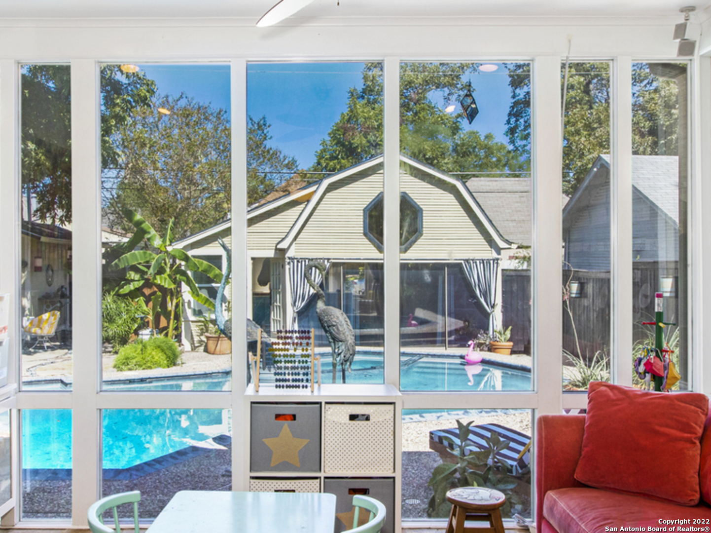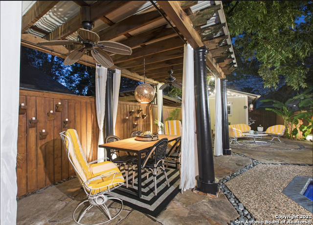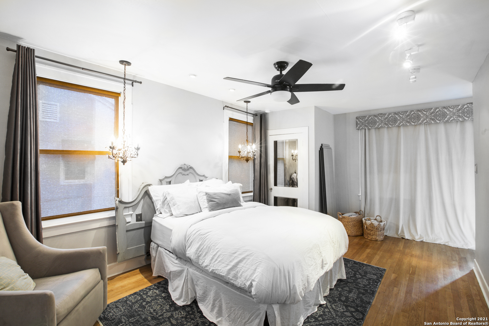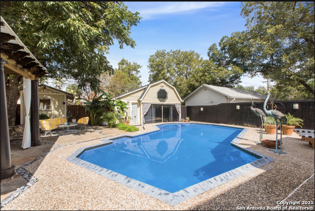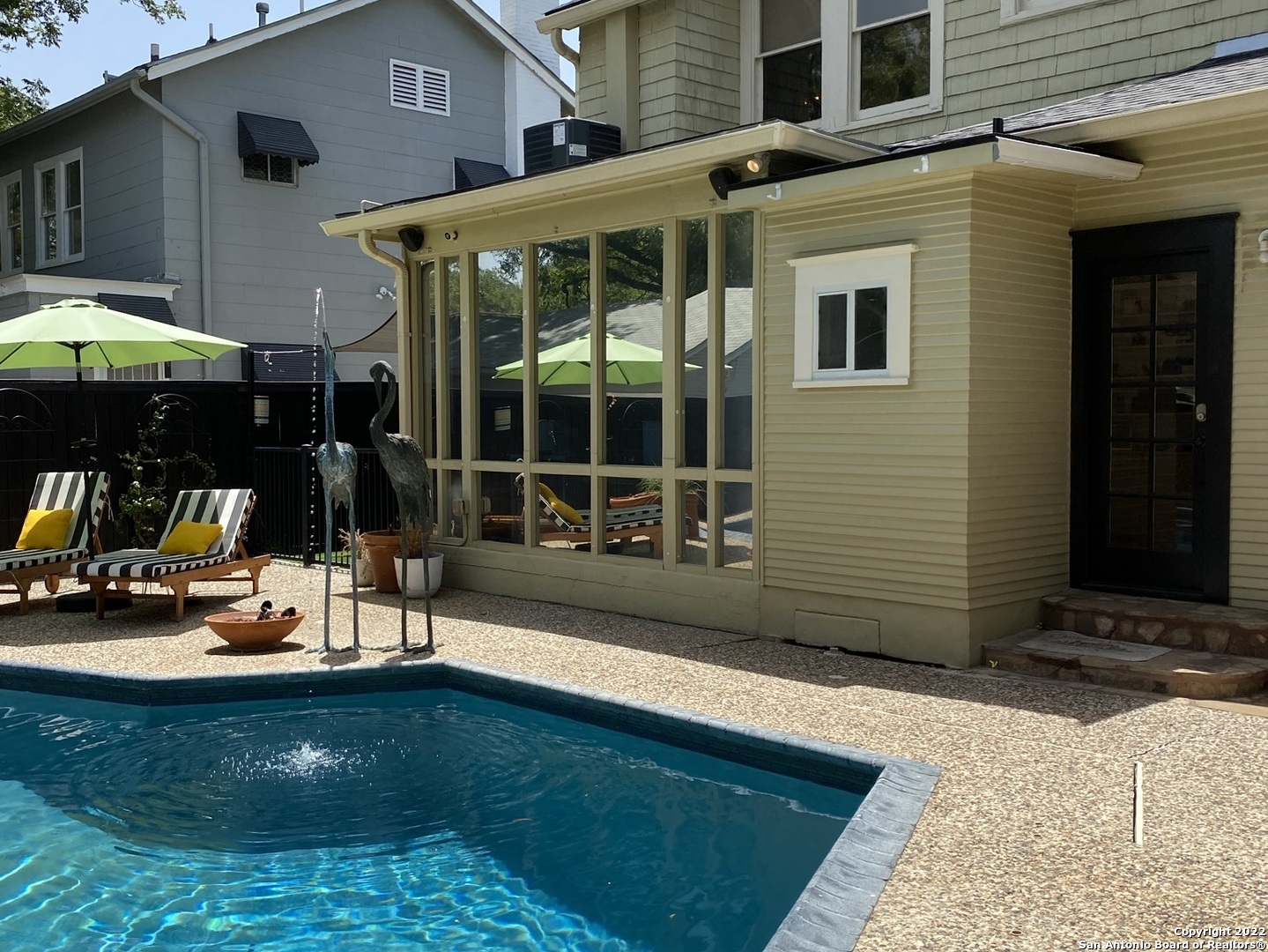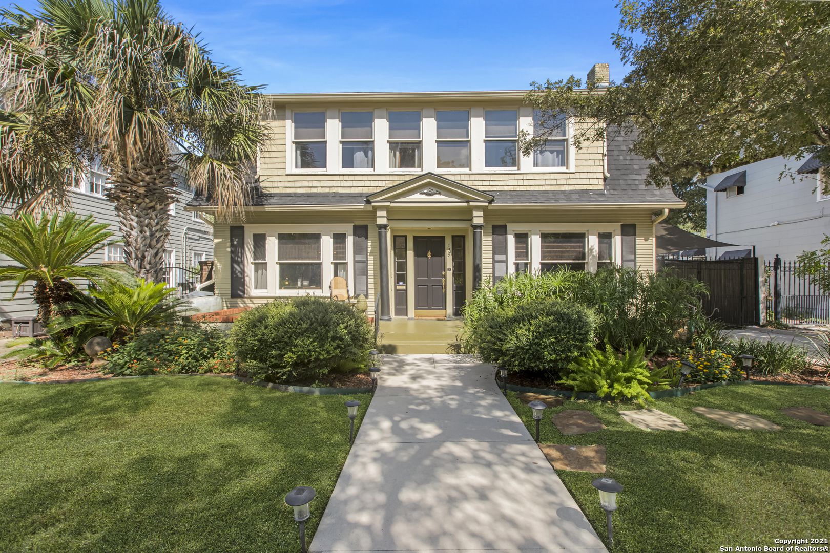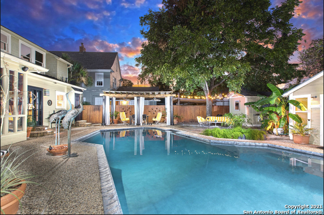 WITHDRAWN FOR FLOOR REFINISHING & touch-up. Recent Appraisal -Fabulous 2 bed 2.5 bath- seamlessly added darling half bath down, plus large Casita, offering combined living area of approximately 2500 sq.ft. This Danish Colonial Style gem awaits in one of the hippest historic neighborhoods in the country with proximity to the Pearl and happening, yet quaint Downtown San Antonio. In a city known for its architectural treasures, revisit this beautiful two-story freshly remodeled cottage on a serene sidewalk street with an incredible private and luring backyard, certainly conducive to many relaxing soirees and entertaining in the alfresco covered dining area with serene views of the night blue resurfaced pool. Rain water collection system in the front lawn serves as a green alternative to a sprinkler system. The detached Casita with a kitchenette, closet and high ceilings in an ample 430 sq. ft. cooled and heated by an efficient brand new mini-split wall unit, makes the ideal at home office/exercise, yoga/massage/meditation retreat, mother-in-law suite, man-cave, Airbnb or an over the top pool cabana, guest or staff quarters with an adjacent and conveniently located separate exterior laundry room by the pool area so wet towels will not have to be dragged into the house. The main cottage interiors breath a clean easy California lifestyle. The hardwood floors have been sanded and refinished in a lighter natural finish that adds light to the living spaces, a fabulous glass encased floor to ceiling windows is the ideal space to admire the backyard, watch the kids swim, just off the living room overlooking the pool can be an ideal light filled art studio or game room with a a convenient new half bath, this sunny space has the possibility to easily be opened up to the pool area. A freshly renovated kitchen with double ovens, lots of storage and a Carrara marble top coffee bar. Come live it! The staircase features a black domed scrolled banister design that is unique to the home with European inspired detail adding to the crisp entrance that welcomes you with a statement. Upstairs the 2/2 ensuite features a remodeled master bath with a clean line feel, three closets, including a cedar lined larger walk in closet and a mirror size second bedroom with it's own bathroom and three closets. Don't forget a very large third oversized bedroom and full bath is just steps away. If higher interest rates concern you, help offset the cost by leasing the back house to a near by Trinity or IWC student while interest rates drop again. This great, flexible and manageable lifestyle will condense or expand to your needs, ideal to downsize, yet welcome college kids when they come home with their friends and can access the backyard and casita amenities without having to to enter the main house, kid's guests and friends can come in through the cool tarp shaded driveway or the semi paved alley, a mini anchor home retreat! If you still have children at home, enjoy the convenience of having some of the best private schools in SA just a few blocks away, also in Monte Vista or very near by, in adjacent neighborhoods. Roof replaced in 2019, Please verify all measurements. Home also offered for lease at $4750 a month, some furnishings can remain.