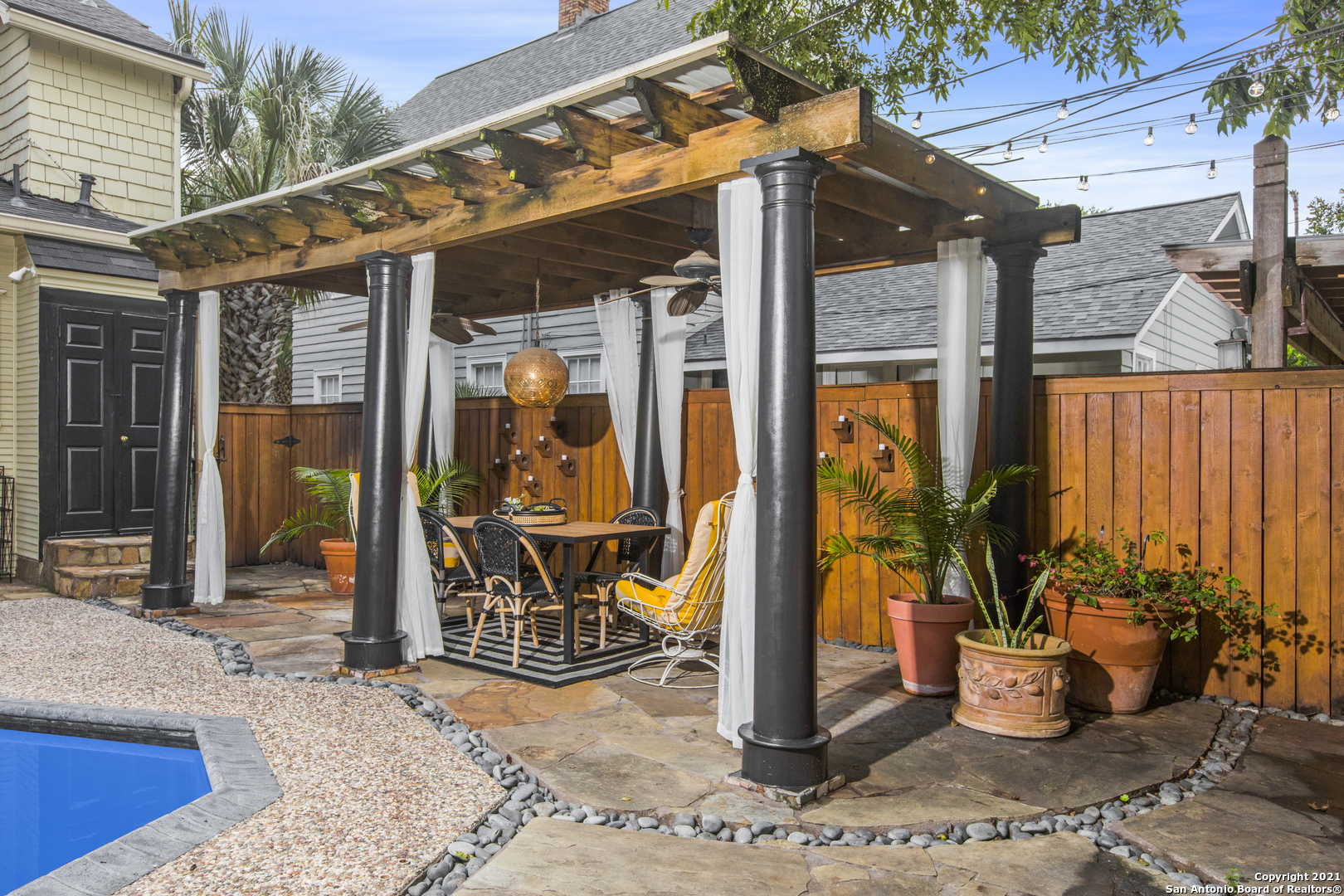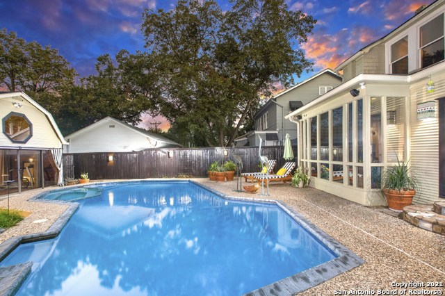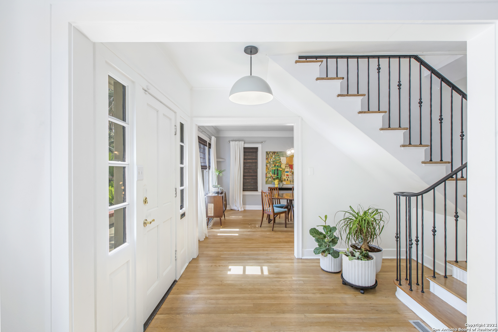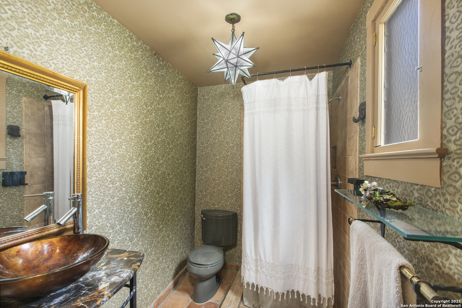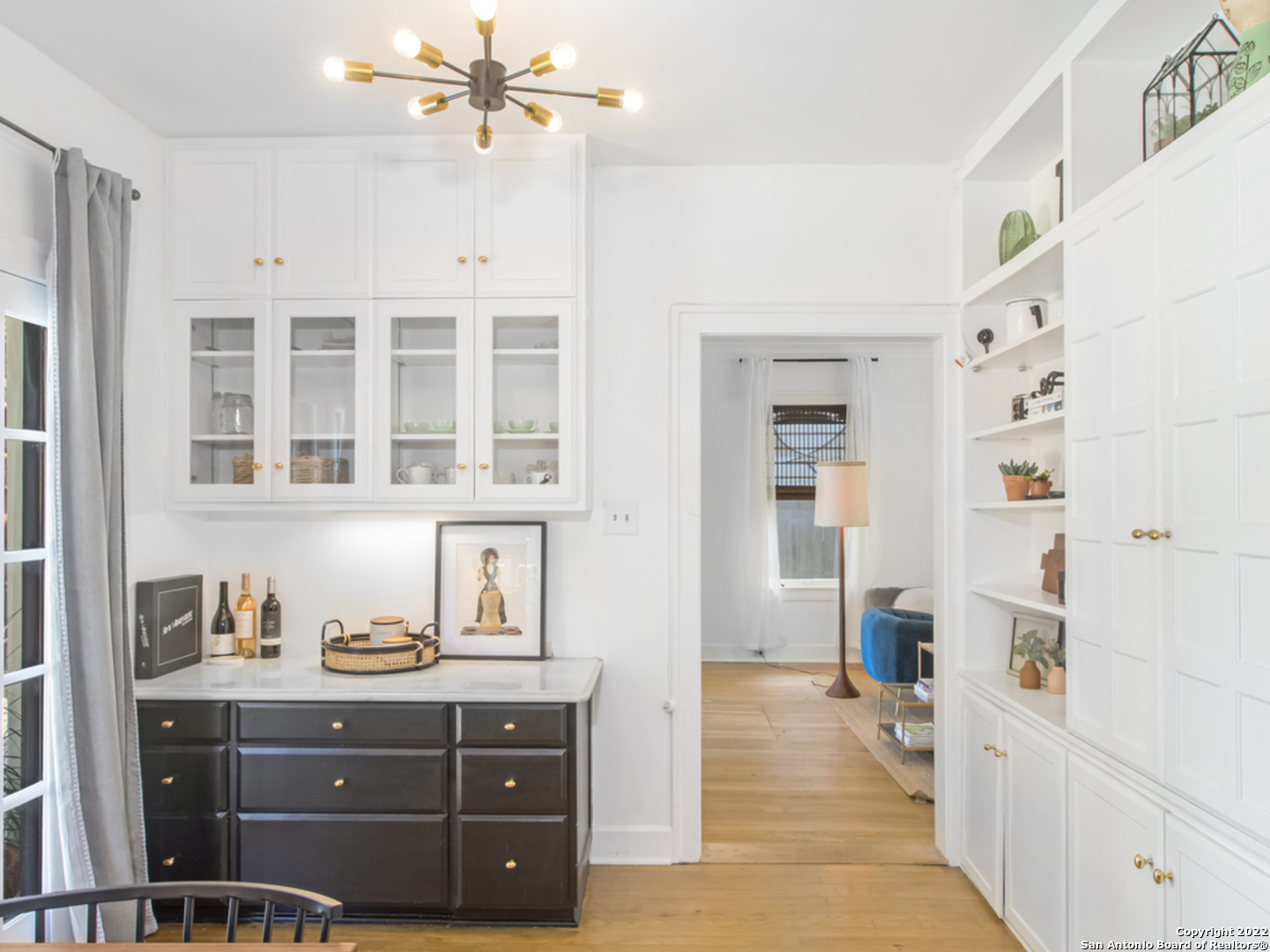 WITHDRAWN FOR FLOOR REFINISHING & touch-up. Recent Appraisal -Fabulous 2 bed 2.5 bath- seamlessly added darling half bath down, plus large Casita, offering combined living area of approximately 2500 sq.ft. This Danish Colonial Style gem awaits in one of the hippest historic neighborhoods in the country with proximity to the Pearl and happening, yet quaint Downtown San Antonio. In a city known for its architectural treasures, revisit this beautiful two-story freshly remodeled cottage on a serene sidewalk street with an incredible private and luring backyard, certainly conducive to many relaxing soirees and entertaining in the alfresco covered dining area with serene views of the night blue resurfaced pool. Rain water collection system in the front lawn serves as a green alternative to a sprinkler system. The detached Casita with a kitchenette, closet and high ceilings in an ample 430 sq. ft. cooled and heated by an efficient brand new mini-split wall unit, makes the ideal at home office/exercise, yoga/massage/meditation retreat, mother-in-law suite, man-cave, Airbnb or an over the top pool cabana, guest or staff quarters with an adjacent and conveniently located separate exterior laundry room by the pool area so wet towels will not have to be dragged into the house. The main cottage interiors breath a clean easy California lifestyle. The hardwood floors have been sanded and refinished in a lighter natural finish that adds light to the living spaces, a fabulous glass encased floor to ceiling windows is the ideal space to admire the backyard, watch the kids swim, just off the living room overlooking the pool can be an ideal light filled art studio or game room with a a convenient new half bath, this sunny space has the possibility to easily be opened up to the pool area. A freshly renovated kitchen with double ovens, lots of storage and a Carrara marble top coffee bar. Come live it! The staircase features a black domed scrolled banister design that is unique to the home with European inspired detail adding to the crisp entrance that welcomes you with a statement. Upstairs the 2/2 ensuite features a remodeled master bath with a clean line feel, three closets, including a cedar lined larger walk in closet and a mirror size second bedroom with it's own bathroom and three closets. Don't forget a very large third oversized bedroom and full bath is just steps away. If higher interest rates concern you, help offset the cost by leasing the back house to a near by Trinity or IWC student while interest rates drop again. This great, flexible and manageable lifestyle will condense or expand to your needs, ideal to downsize, yet welcome college kids when they come home with their friends and can access the backyard and casita amenities without having to to enter the main house, kid's guests and friends can come in through the cool tarp shaded driveway or the semi paved alley, a mini anchor home retreat! If you still have children at home, enjoy the convenience of having some of the best private schools in SA just a few blocks away, also in Monte Vista or very near by, in adjacent neighborhoods. Roof replaced in 2019, Please verify all measurements. Home also offered for lease at $4750 a month, some furnishings can remain.