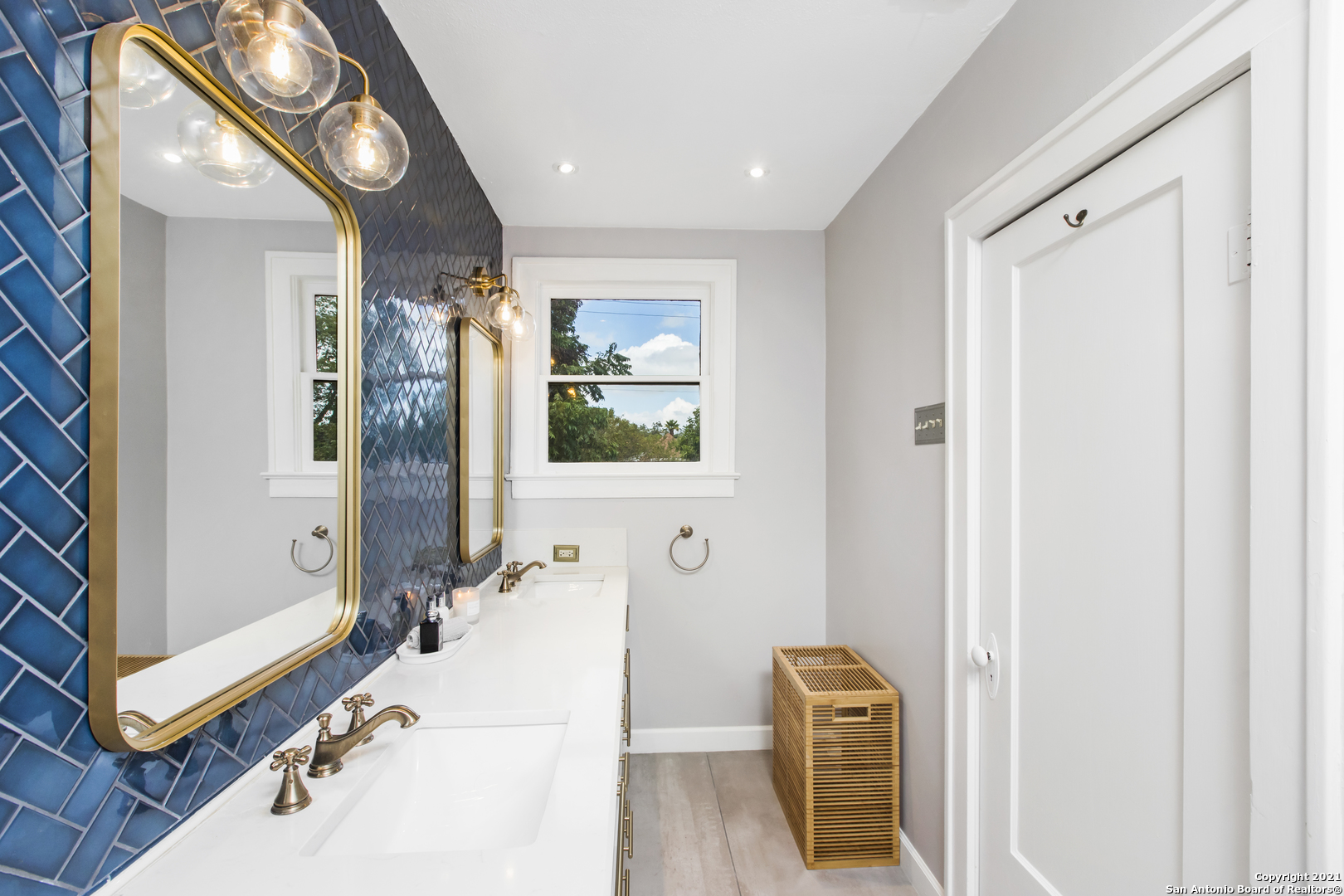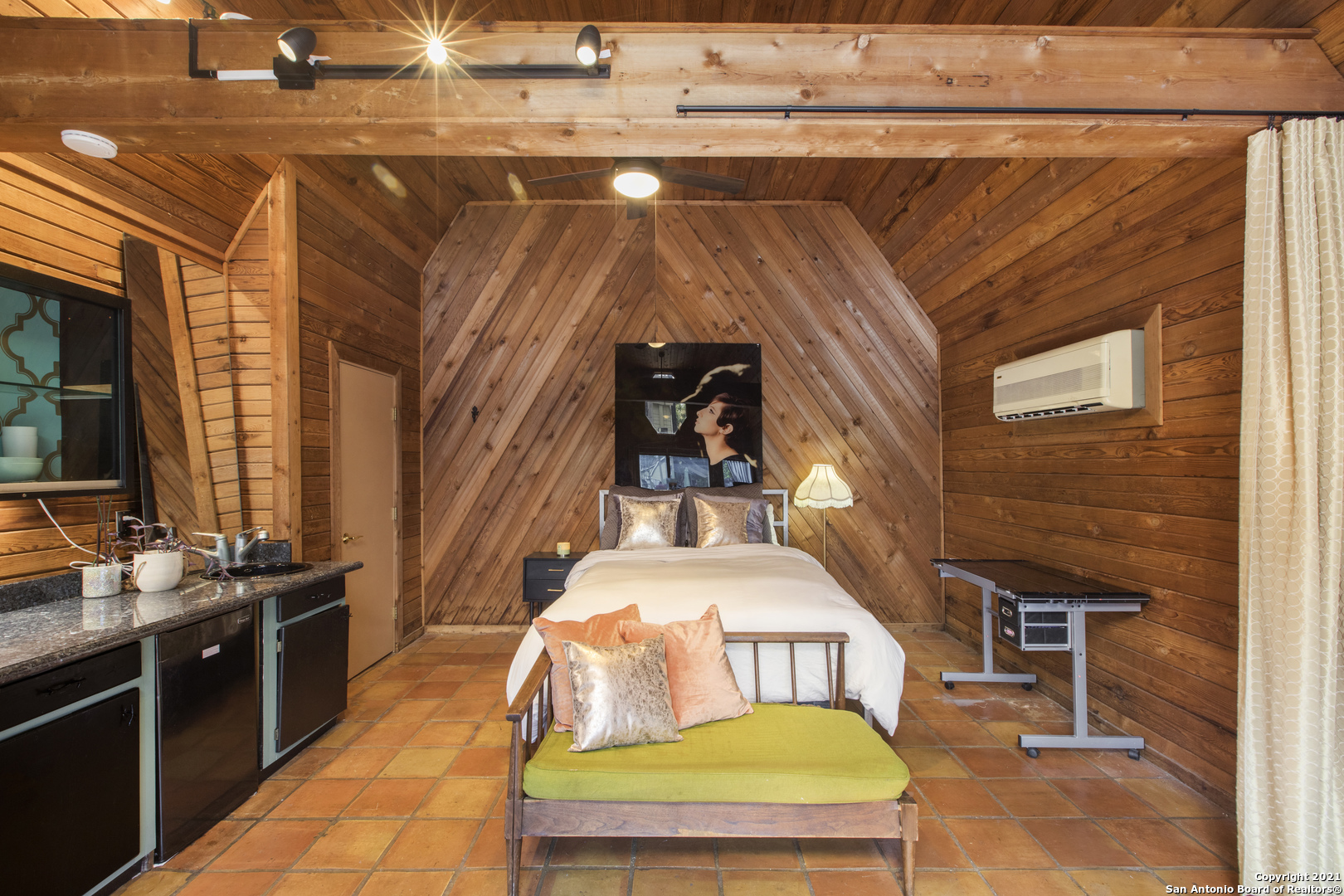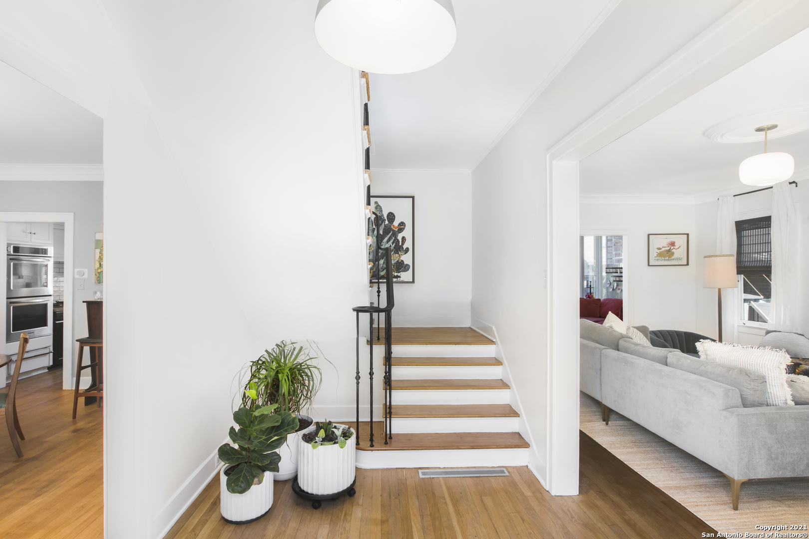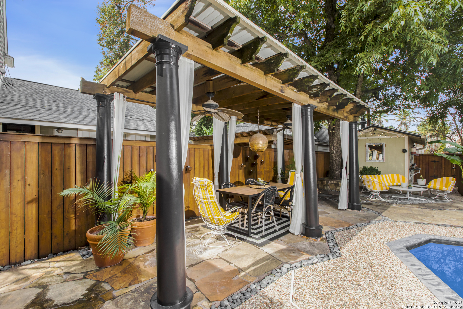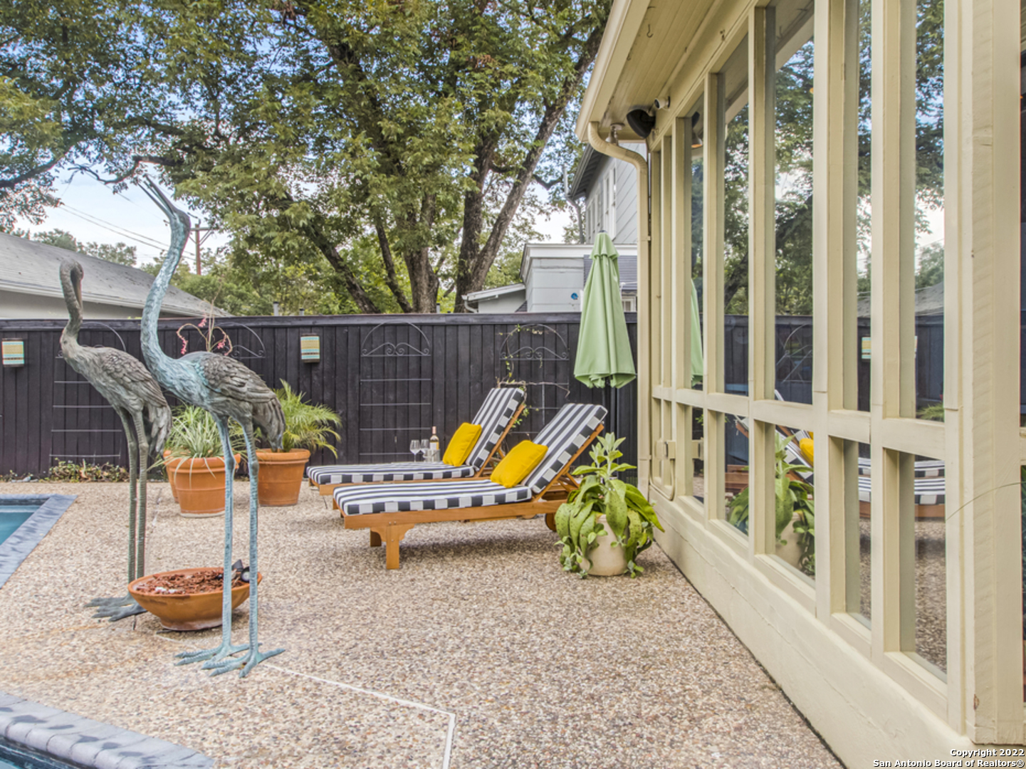 WITHDRAWN FOR FLOOR REFINISHING & touch-up. Recent Appraisal -Fabulous 2 bed 2.5 bath- seamlessly added darling half bath down, plus large Casita, offering combined living area of approximately 2500 sq.ft. This Danish Colonial Style gem awaits in one of the hippest historic neighborhoods in the country with proximity to the Pearl and happening, yet quaint Downtown San Antonio. In a city known for its architectural treasures, revisit this beautiful two-story freshly remodeled cottage on a serene sidewalk street with an incredible private and luring backyard, certainly conducive to many relaxing soirees and entertaining in the alfresco covered dining area with serene views of the night blue resurfaced pool. Rain water collection system in the front lawn serves as a green alternative to a sprinkler system. The detached Casita with a kitchenette, closet and high ceilings in an ample 430 sq. ft. cooled and heated by an efficient brand new mini-split wall unit, makes the ideal at home office/exercise, yoga/massage/meditation retreat, mother-in-law suite, man-cave, Airbnb or an over the top pool cabana, guest or staff quarters with an adjacent and conveniently located separate exterior laundry room by the pool area so wet towels will not have to be dragged into the house. The main cottage interiors breath a clean easy California lifestyle. The hardwood floors have been sanded and refinished in a lighter natural finish that adds light to the living spaces, a fabulous glass encased floor to ceiling windows is the ideal space to admire the backyard, watch the kids swim, just off the living room overlooking the pool can be an ideal light filled art studio or game room with a a convenient new half bath, this sunny space has the possibility to easily be opened up to the pool area. A freshly renovated kitchen with double ovens, lots of storage and a Carrara marble top coffee bar. Come live it! The staircase features a black domed scrolled banister design that is unique to the home with European inspired detail adding to the crisp entrance that welcomes you with a statement. Upstairs the 2/2 ensuite features a remodeled master bath with a clean line feel, three closets, including a cedar lined larger walk in closet and a mirror size second bedroom with it's own bathroom and three closets. Don't forget a very large third oversized bedroom and full bath is just steps away. If higher interest rates concern you, help offset the cost by leasing the back house to a near by Trinity or IWC student while interest rates drop again. This great, flexible and manageable lifestyle will condense or expand to your needs, ideal to downsize, yet welcome college kids when they come home with their friends and can access the backyard and casita amenities without having to to enter the main house, kid's guests and friends can come in through the cool tarp shaded driveway or the semi paved alley, a mini anchor home retreat! If you still have children at home, enjoy the convenience of having some of the best private schools in SA just a few blocks away, also in Monte Vista or very near by, in adjacent neighborhoods. Roof replaced in 2019, Please verify all measurements. Home also offered for lease at $4750 a month, some furnishings can remain.