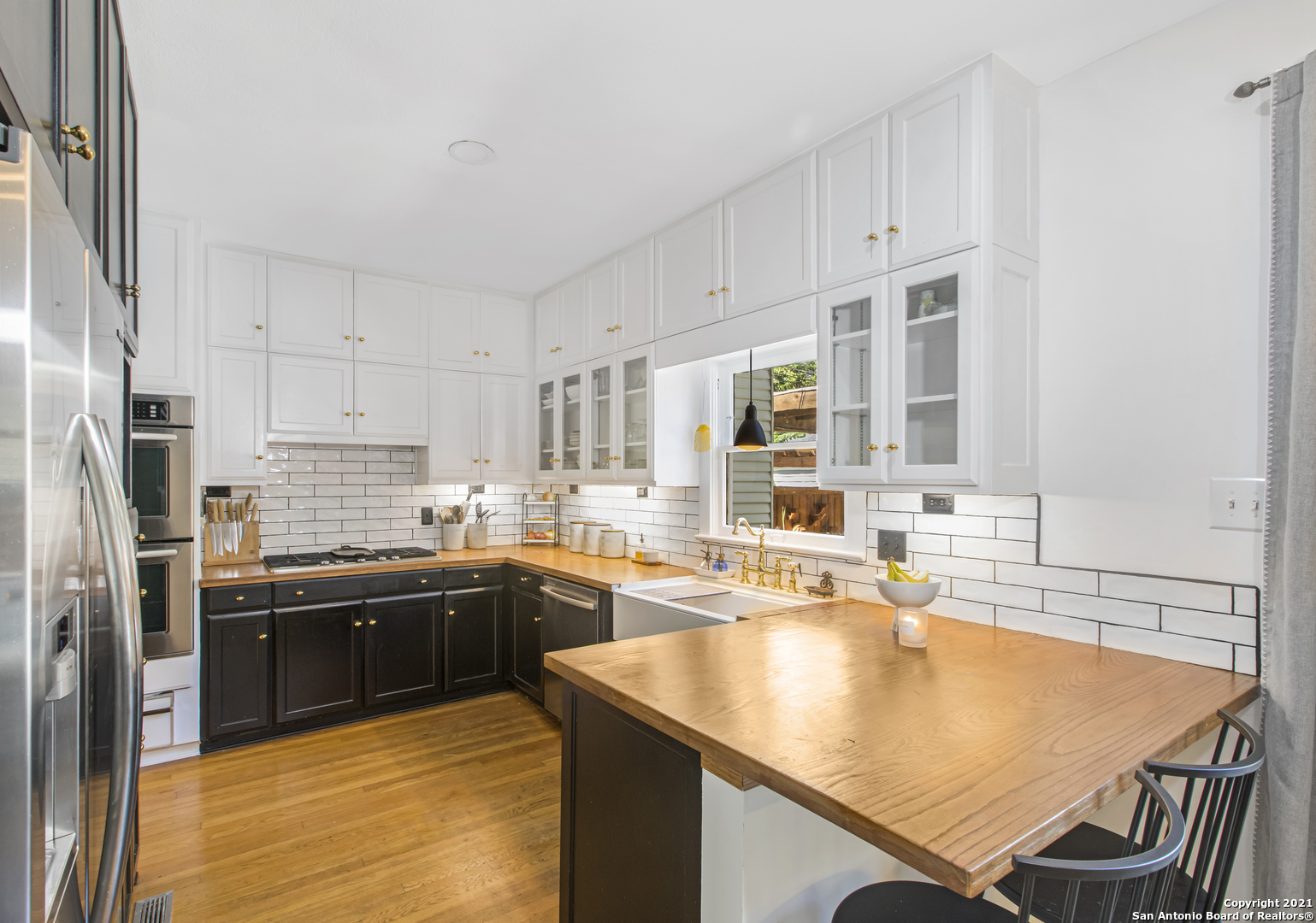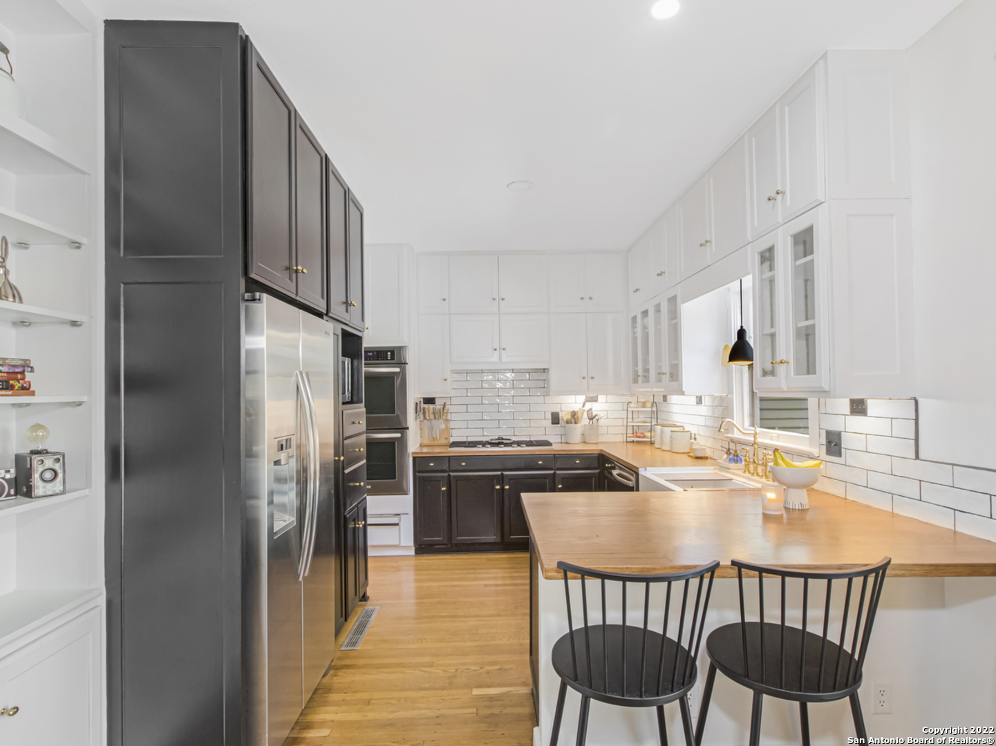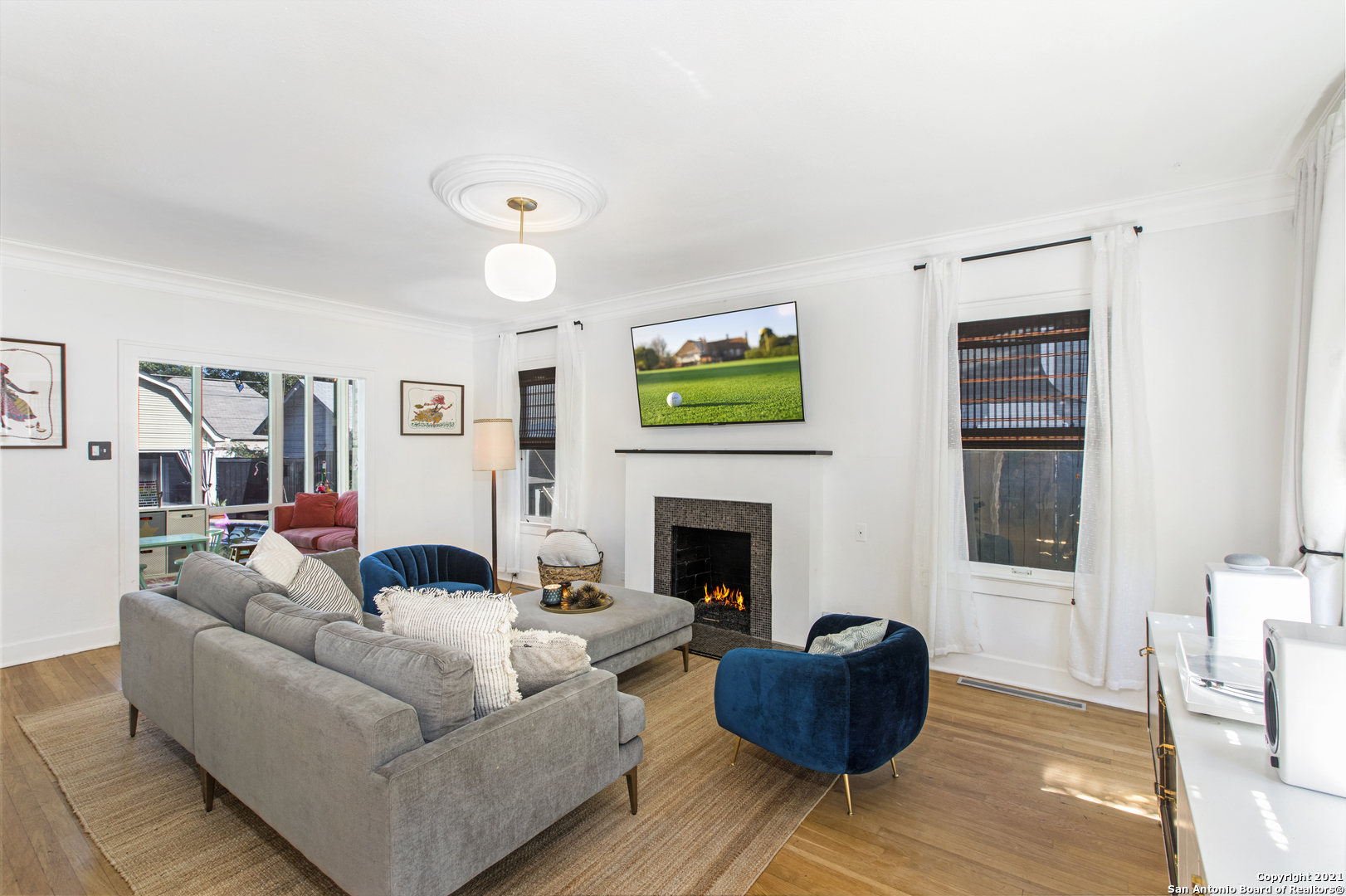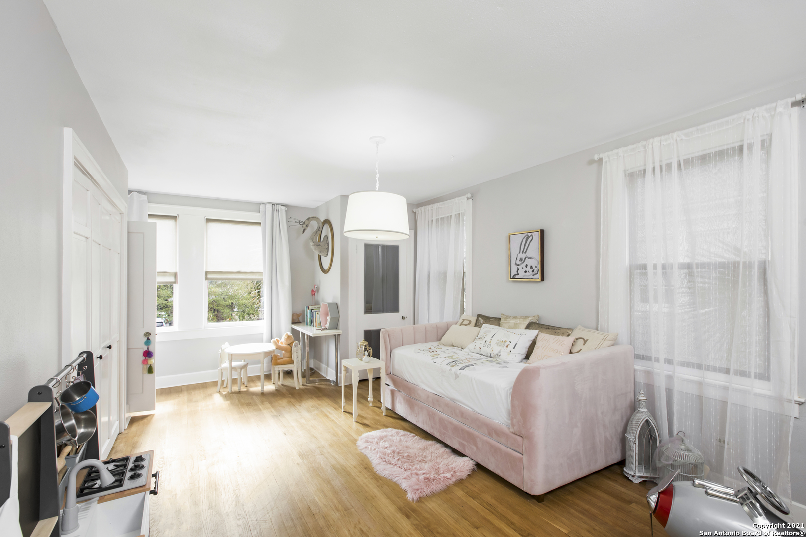 WITHDRAWN FOR FLOOR REFINISHING & touch-up. Recent Appraisal -Fabulous 2 bed 2.5 bath- seamlessly added darling half bath down, plus large Casita, offering combined living area of approximately 2500 sq.ft. This Danish Colonial Style gem awaits in one of the hippest historic neighborhoods in the country with proximity to the Pearl and happening, yet quaint Downtown San Antonio. In a city known for its architectural treasures, revisit this beautiful two-story freshly remodeled cottage on a serene sidewalk street with an incredible private and luring backyard, certainly conducive to many relaxing soirees and entertaining in the alfresco covered dining area with serene views of the night blue resurfaced pool. Rain water collection system in the front lawn serves as a green alternative to a sprinkler system. The detached Casita with a kitchenette, closet and high ceilings in an ample 430 sq. ft. cooled and heated by an efficient brand new mini-split wall unit, makes the ideal at home office/exercise, yoga/massage/meditation retreat, mother-in-law suite, man-cave, Airbnb or an over the top pool cabana, guest or staff quarters with an adjacent and conveniently located separate exterior laundry room by the pool area so wet towels will not have to be dragged into the house. The main cottage interiors breath a clean easy California lifestyle. The hardwood floors have been sanded and refinished in a lighter natural finish that adds light to the living spaces, a fabulous glass encased floor to ceiling windows is the ideal space to admire the backyard, watch the kids swim, just off the living room overlooking the pool can be an ideal light filled art studio or game room with a a convenient new half bath, this sunny space has the possibility to easily be opened up to the pool area. A freshly renovated kitchen with double ovens, lots of storage and a Carrara marble top coffee bar. Come live it! The staircase features a black domed scrolled banister design that is unique to the home with European inspired detail adding to the crisp entrance that welcomes you with a statement. Upstairs the 2/2 ensuite features a remodeled master bath with a clean line feel, three closets, including a cedar lined larger walk in closet and a mirror size second bedroom with it's own bathroom and three closets. Don't forget a very large third oversized bedroom and full bath is just steps away. If higher interest rates concern you, help offset the cost by leasing the back house to a near by Trinity or IWC student while interest rates drop again. This great, flexible and manageable lifestyle will condense or expand to your needs, ideal to downsize, yet welcome college kids when they come home with their friends and can access the backyard and casita amenities without having to to enter the main house, kid's guests and friends can come in through the cool tarp shaded driveway or the semi paved alley, a mini anchor home retreat! If you still have children at home, enjoy the convenience of having some of the best private schools in SA just a few blocks away, also in Monte Vista or very near by, in adjacent neighborhoods. Roof replaced in 2019, Please verify all measurements. Home also offered for lease at $4750 a month, some furnishings can remain.