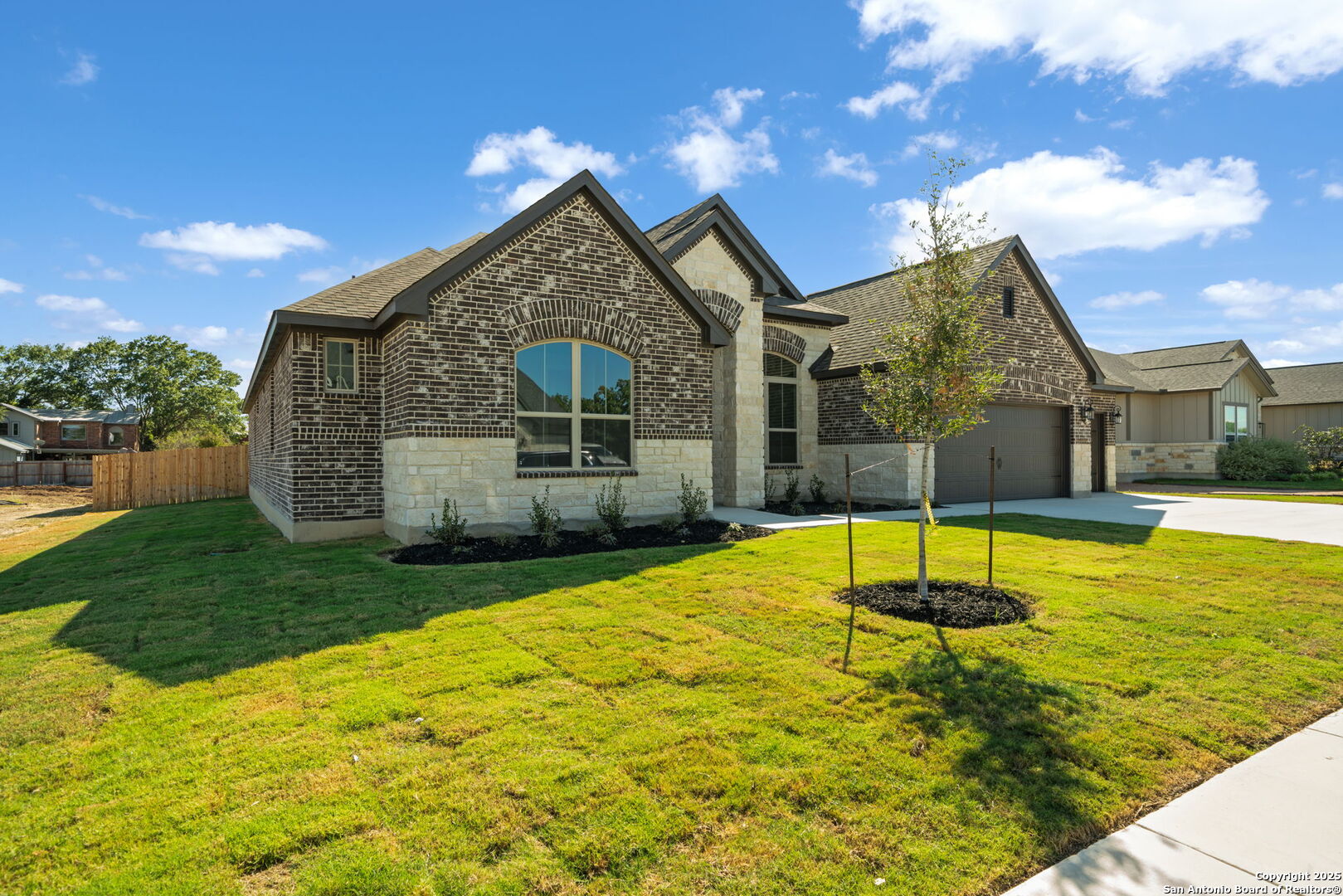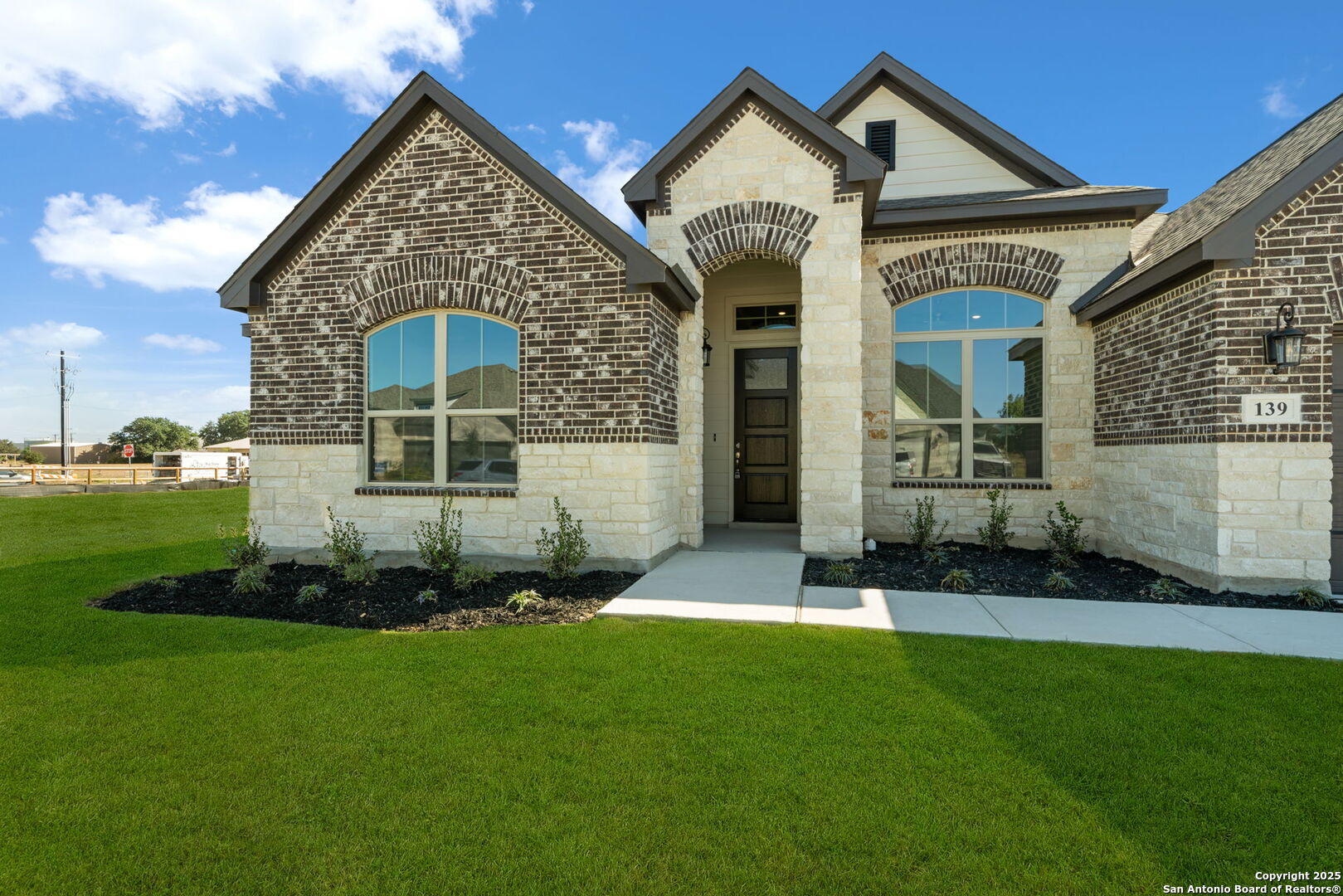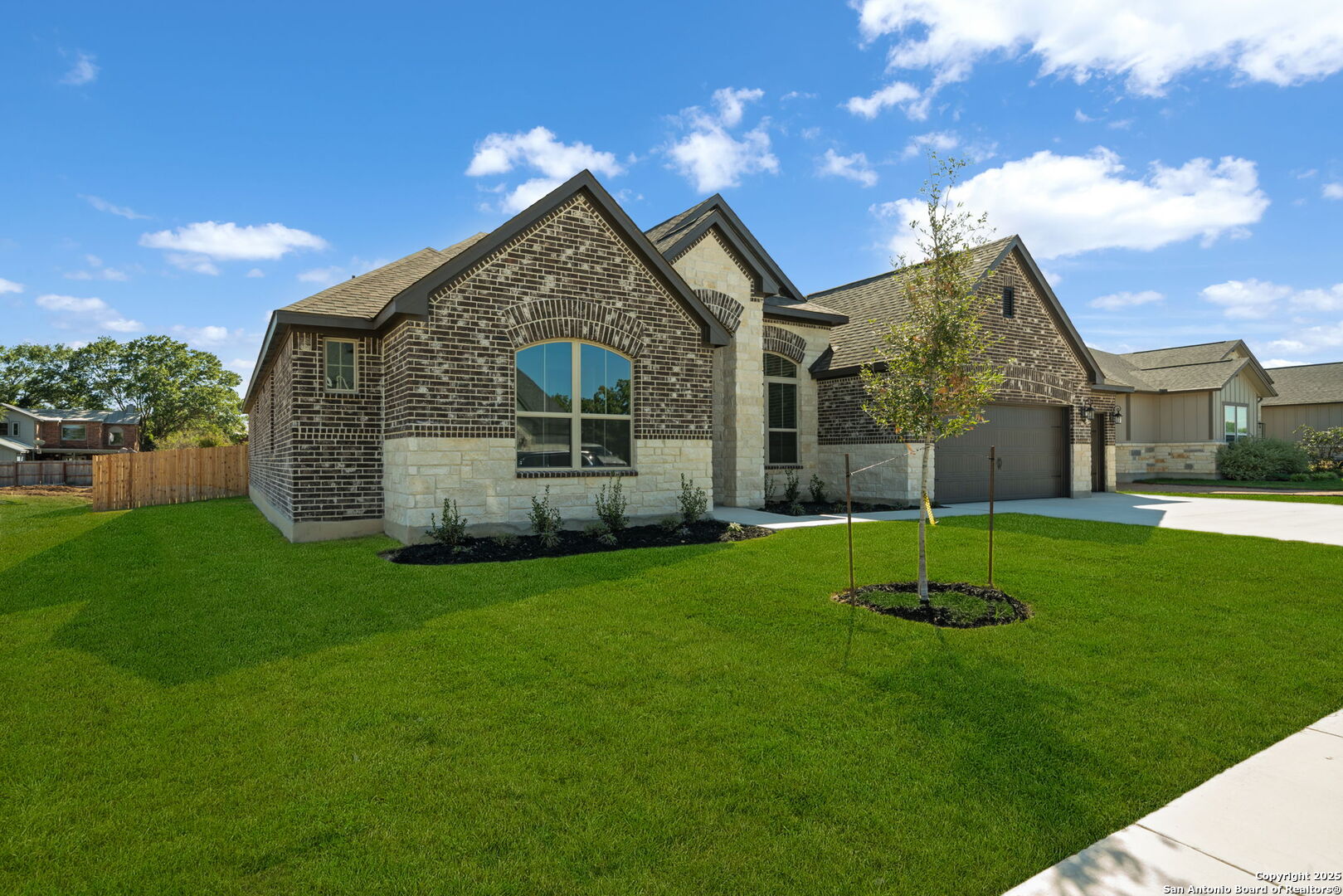 Experience the perfect fusion of sophisticated design and everyday comfort in the Houston Plan, a stunning single-story home that exudes modern elegance. This remarkable residence boasts 4 spacious bedrooms, including an impressive master suite retreat designed for ultimate relaxation and style, featuring a spa-inspired luxury shower and an oversized walk-in closet for exceptional storage and convenience. Bedrooms 3 and 4 share a thoughtfully appointed bathroom with private vanities, ensuring comfort and privacy for family or guests. The expansive open floor plan is perfect for both entertaining and daily living, accentuated by soaring 8' interior doors that lend a sense of grandeur throughout. The gourmet kitchen is a chef's dream, offering built-in appliances, a gas cooktop, and elegant finishes that elevate every meal preparation experience. Don't miss your chance to own this exceptional home that seamlessly blends luxury, practicality, and timeless design. Sizes and details are approximate; please confirm with the sales team