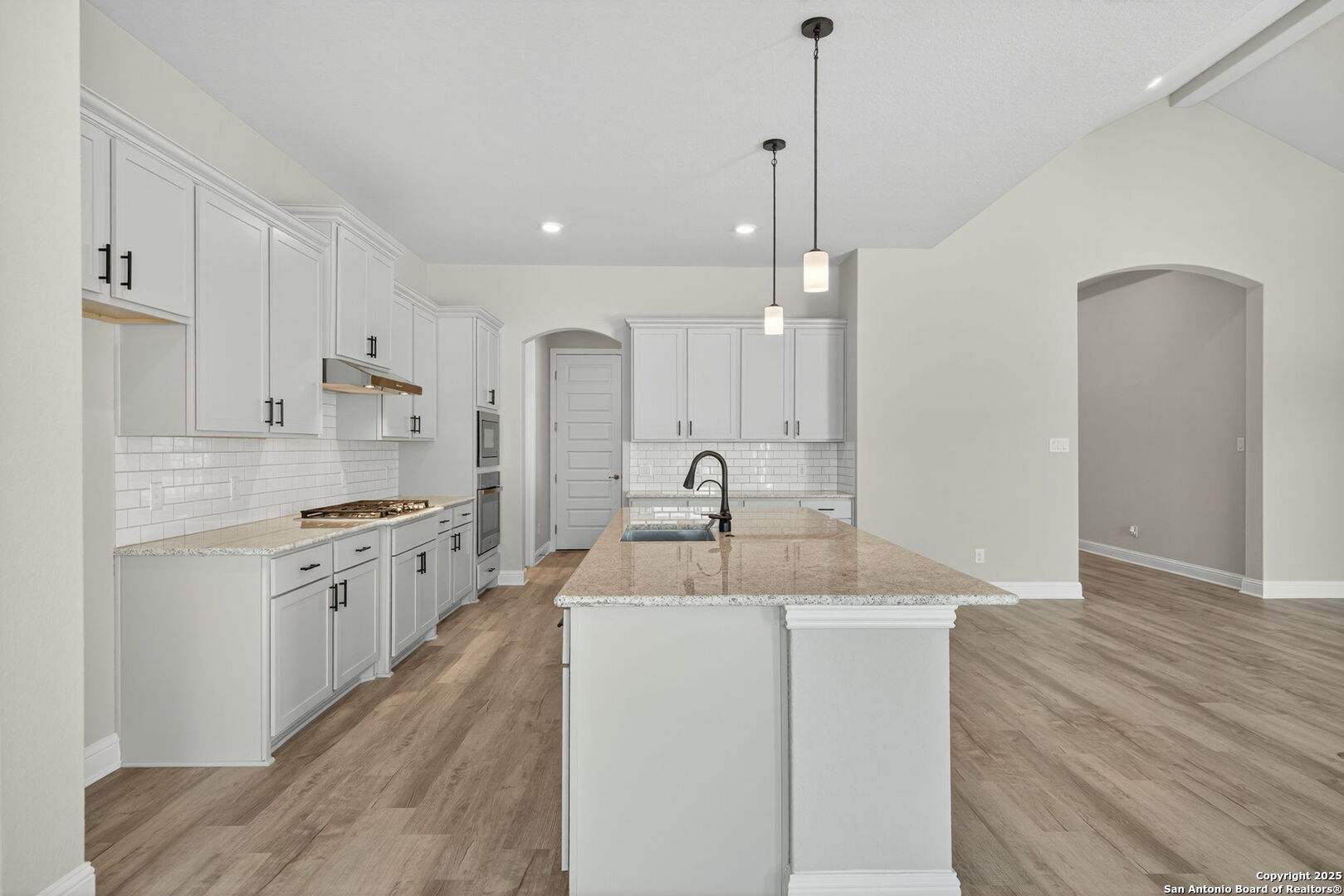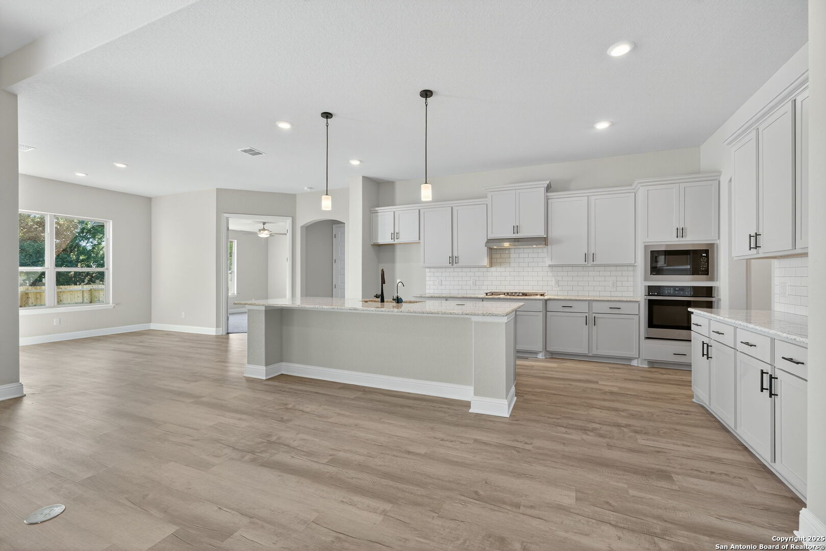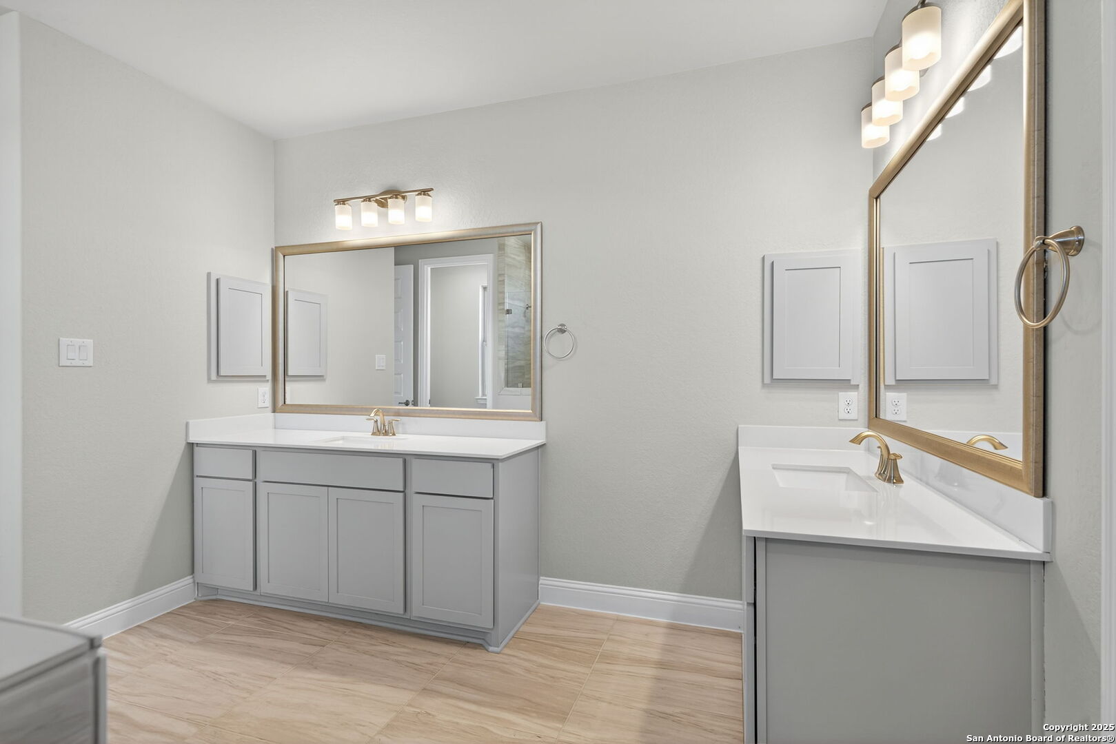 Experience the perfect fusion of sophisticated design and everyday comfort in the Houston Plan, a stunning single-story home that exudes modern elegance. This remarkable residence boasts 4 spacious bedrooms, including an impressive master suite retreat designed for ultimate relaxation and style, featuring a spa-inspired luxury shower and an oversized walk-in closet for exceptional storage and convenience. Bedrooms 3 and 4 share a thoughtfully appointed bathroom with private vanities, ensuring comfort and privacy for family or guests. The expansive open floor plan is perfect for both entertaining and daily living, accentuated by soaring 8' interior doors that lend a sense of grandeur throughout. The gourmet kitchen is a chef's dream, offering built-in appliances, a gas cooktop, and elegant finishes that elevate every meal preparation experience. Don't miss your chance to own this exceptional home that seamlessly blends luxury, practicality, and timeless design. Sizes and details are approximate; please confirm with the sales team